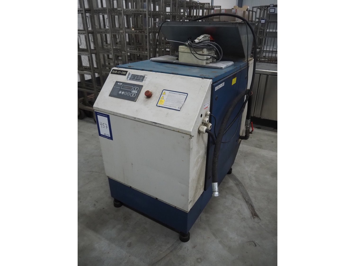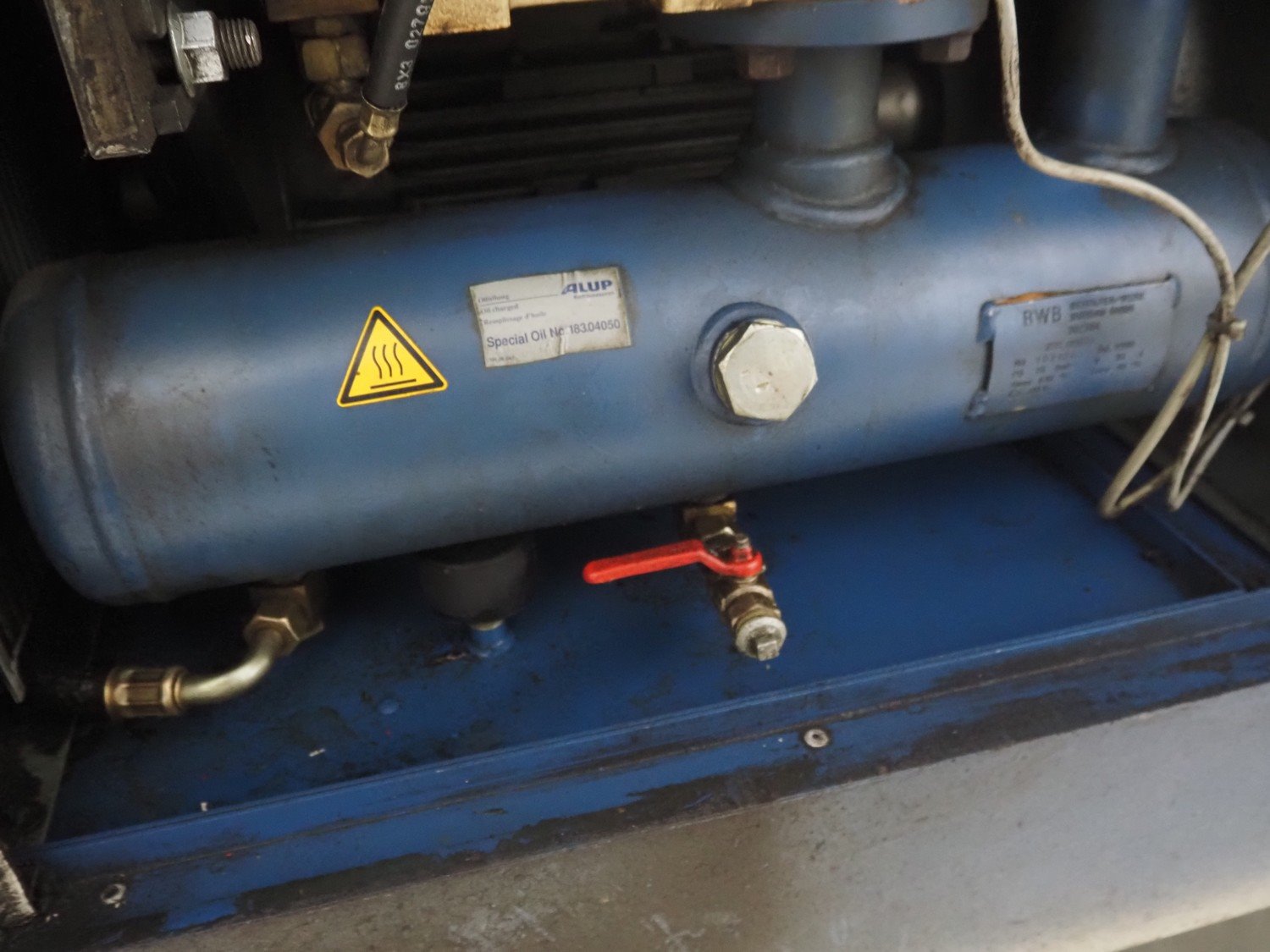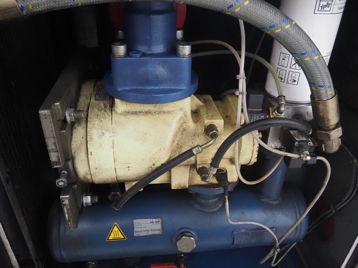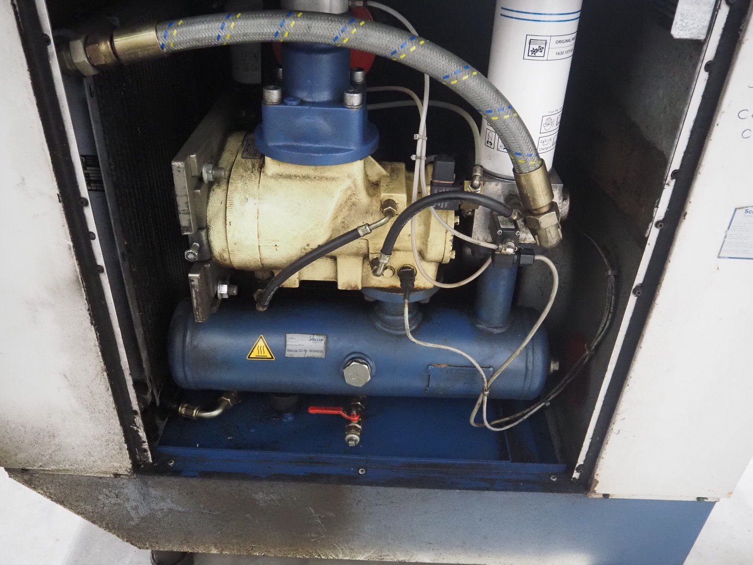 Alup Kompressoren screw compressor, model: SCK 26-8, 18.5 kW, volume flow rate: 3.01 m³/min, compressor discharge pressure: 8 pe bar, dimensions: 800 mm x 1300 mm x 1500 mm.