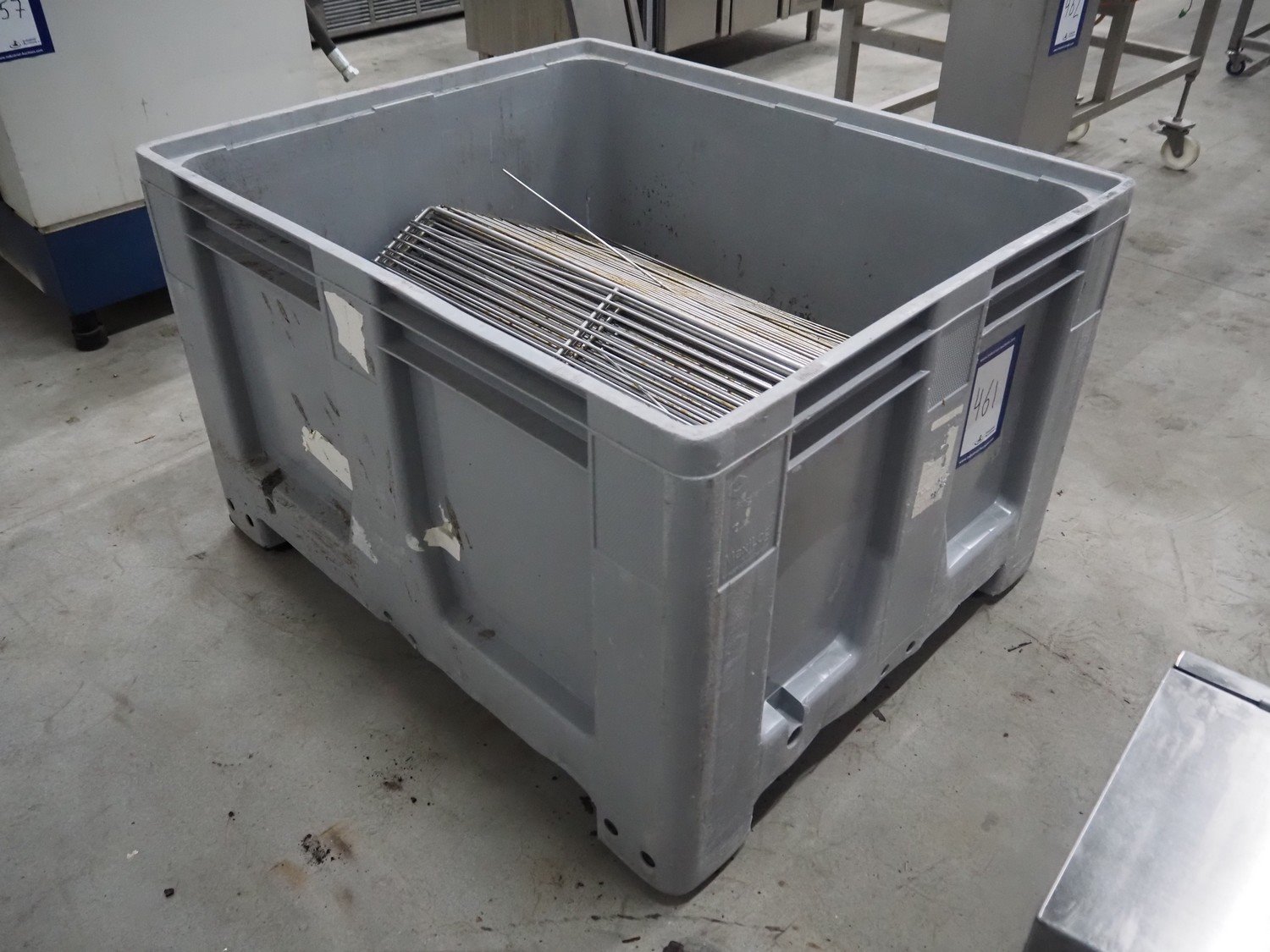 Plastic pallet box with s/s floors, dimensions each floor: 1000 mm x 500 mm.
