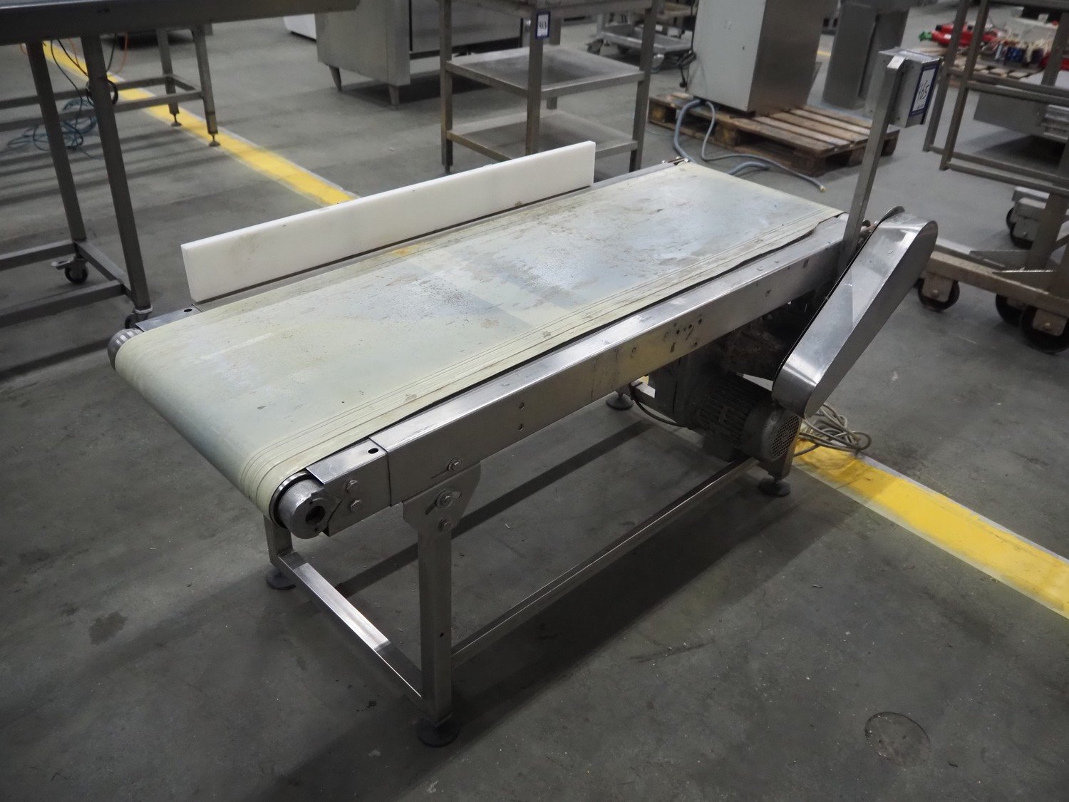Transport belt, s/s frame, plastic belt, belt width: 490 mm, total dimensions: 1700 mm x 650 mm x 1150 mm.