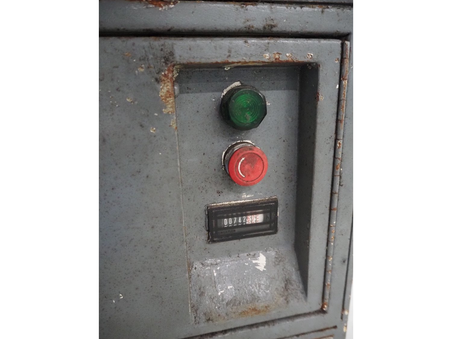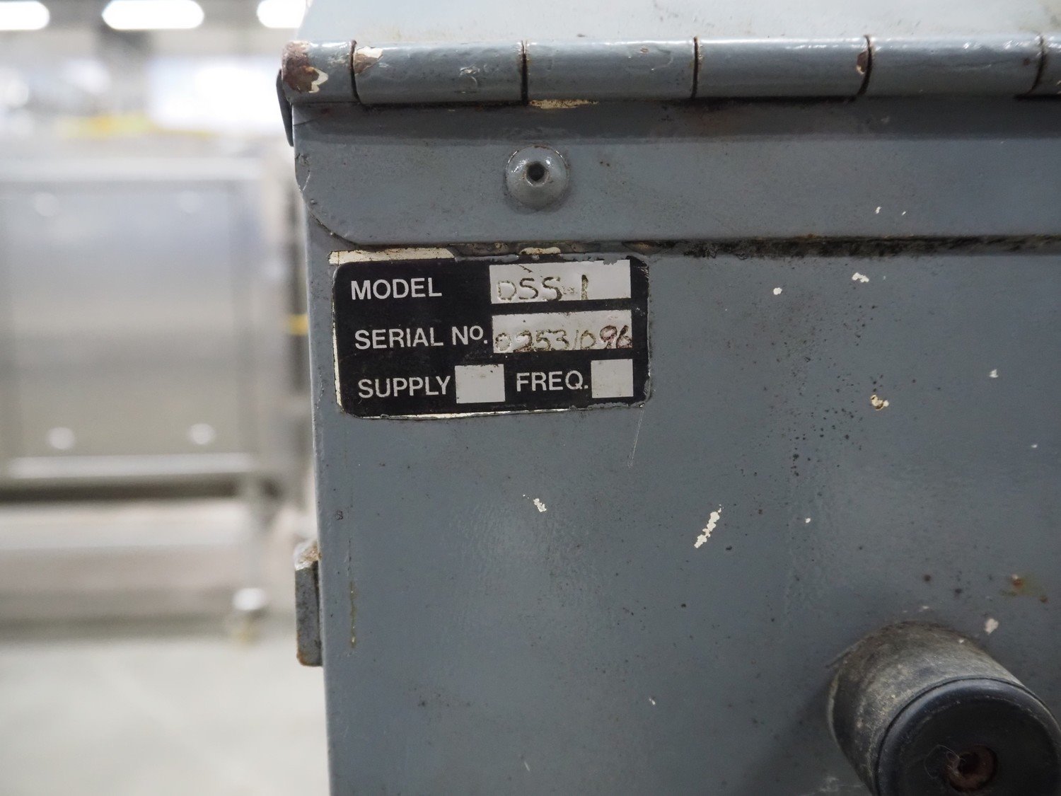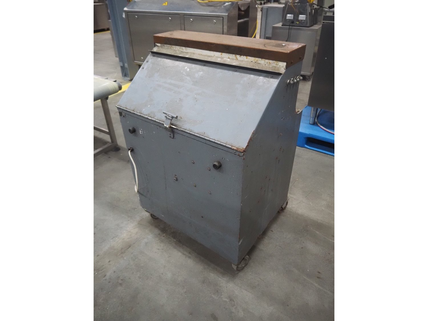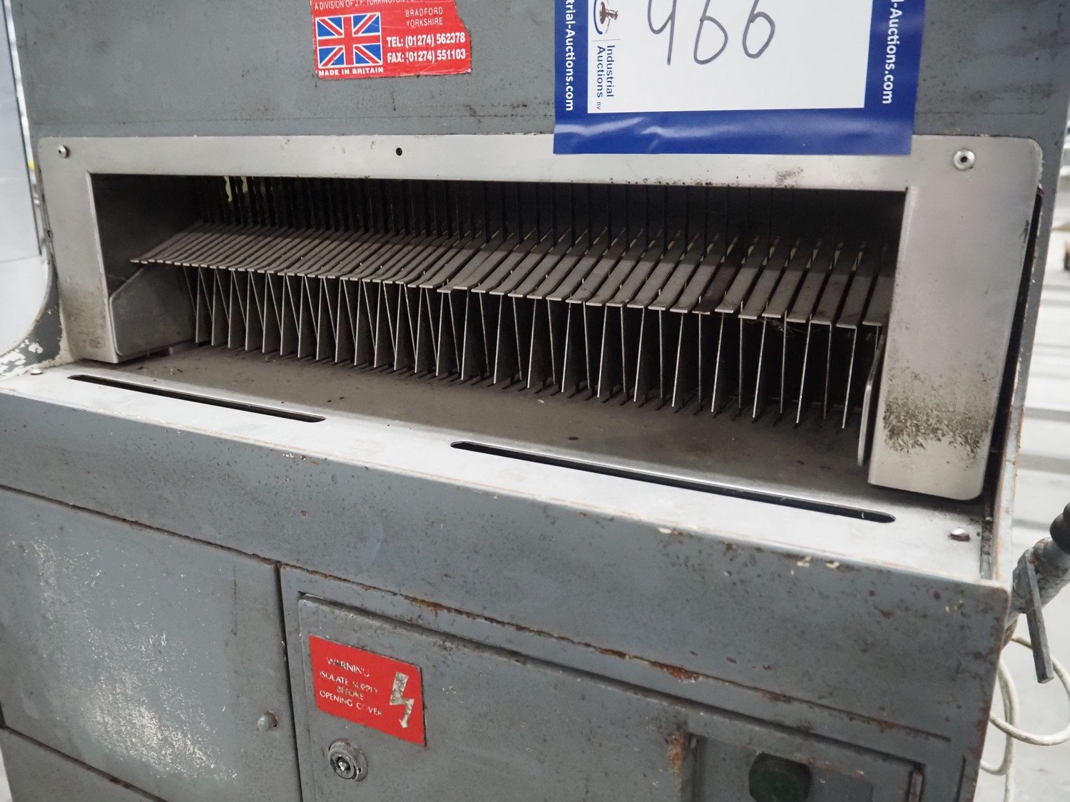 Dowson mobile bread slicer, model: D55-1, serial number: 02531096, 50 knives, distance between knives: 14 mm, total dimensions: 850 mm x 620 mm x 1120 mm.