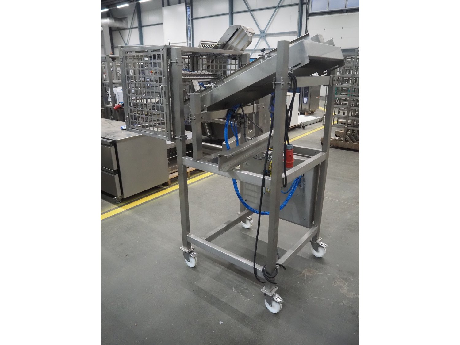 Dörr Kampen BV mobile tray denester, type: verpakkingsmachine, serial number: 51879-526, year of construction: 2019, 400 V, 3 Ph, 50 Hz, 200 W, dye: (2x) 230 mm x 170 mm, total dimensions: 1500 mm x 900 mm x 1800 mm.
