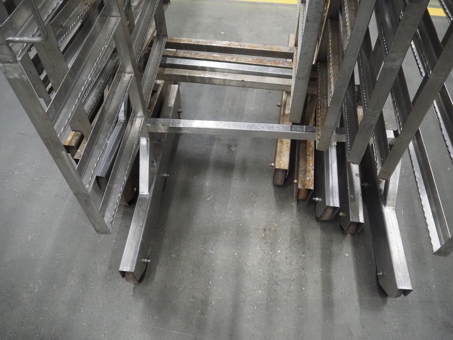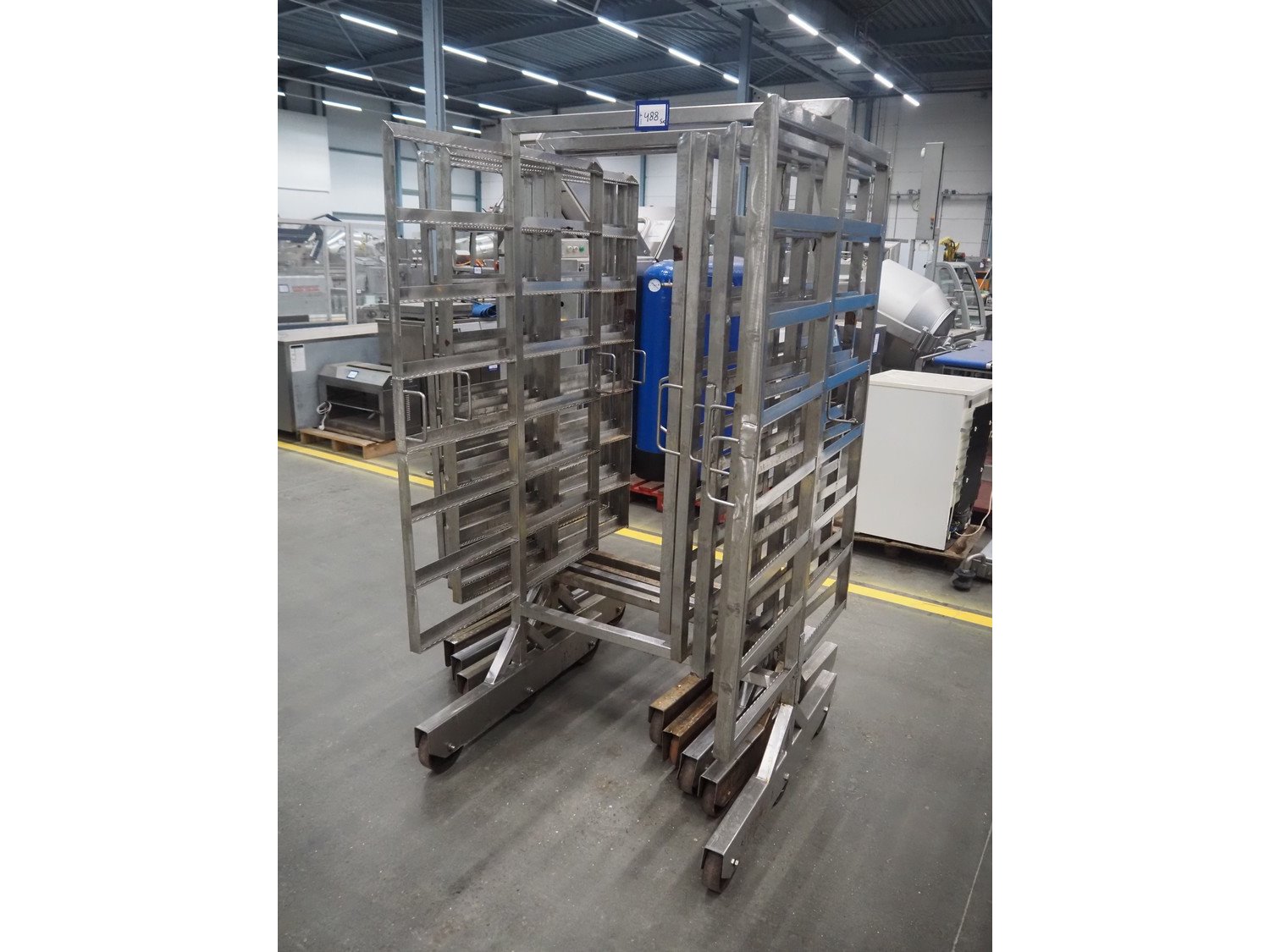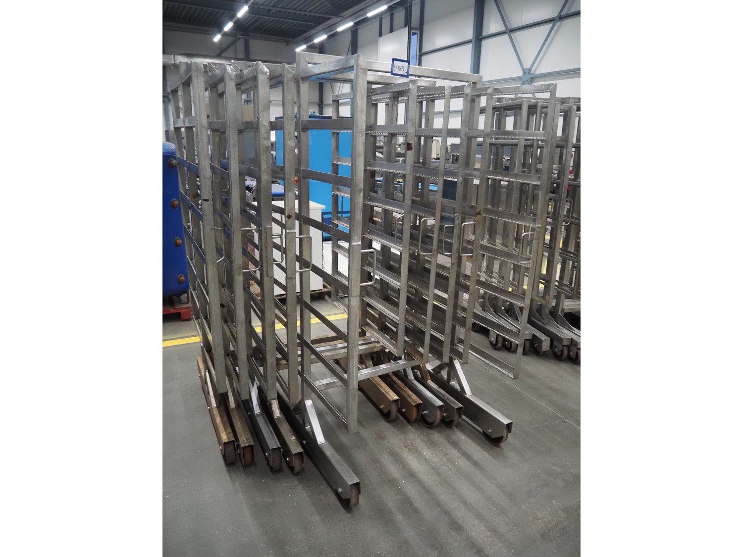 5 s/s smoke trolleys, 8 floors, dimensions each floor: 1010 mm x 1000 mm, total dimensions: (5x) 1020 mm x 1000 mm x 1960 mm.
