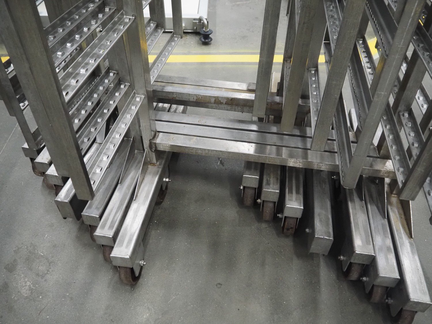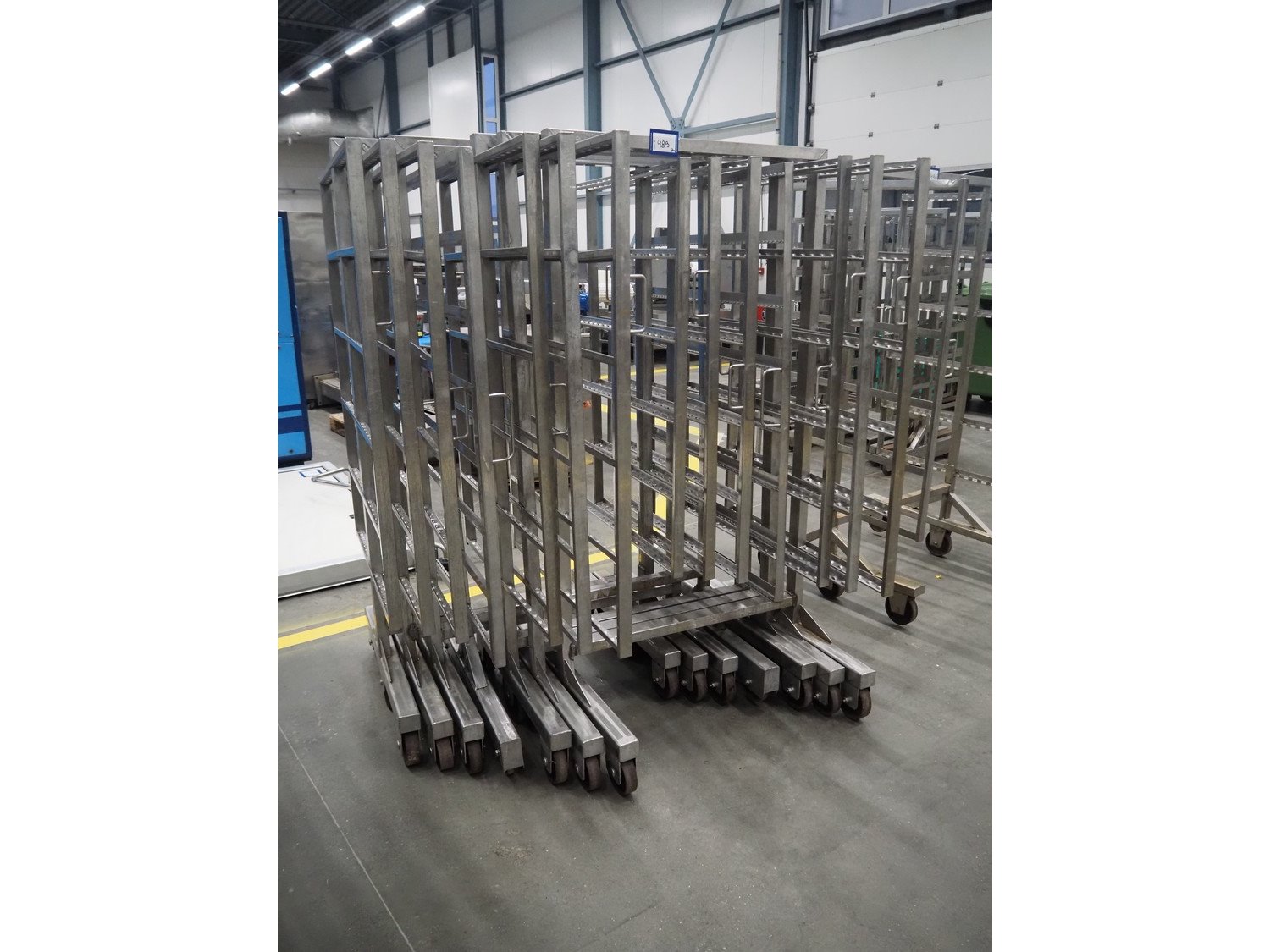 7 s/s smoke trolleys, 6 floors, dimensions each floor: 1010 mm x 1000 mm, total dimensions: (7x) 1020 mm x 1000 mm x 1980 mm.