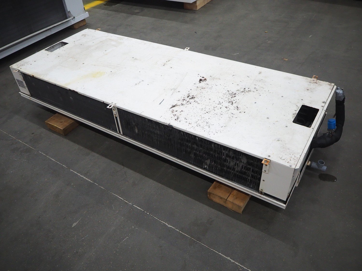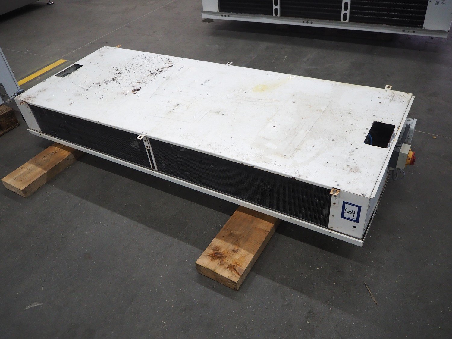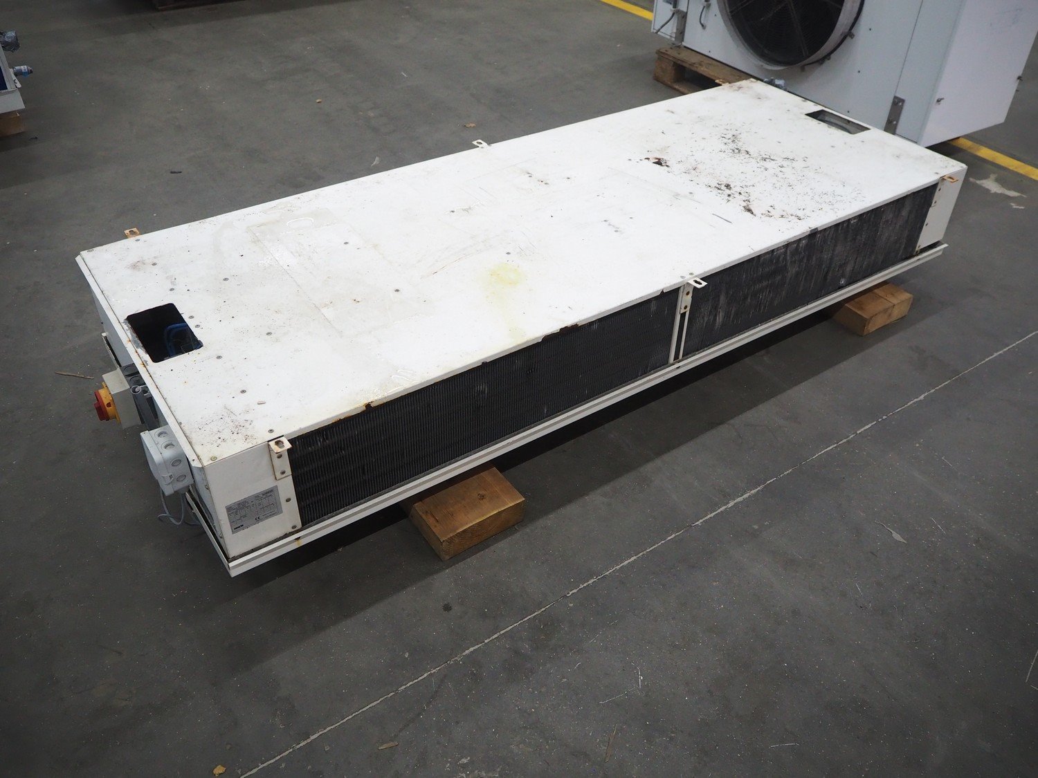Searle evaporator, 2 fans, model: DSR116-6 AL, serial number: 928888, maximum work pressure: 21 bar, 220/240 V, 1 Ph, 50 Hz, 70 W, dimensions: 2530 mm x 950 mm x 450 mm.