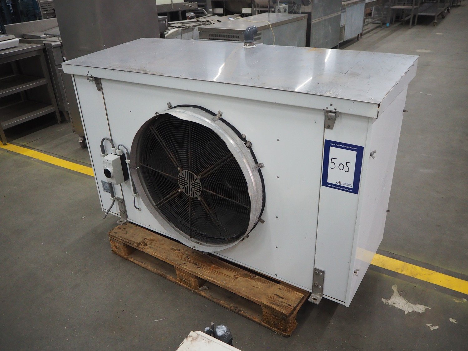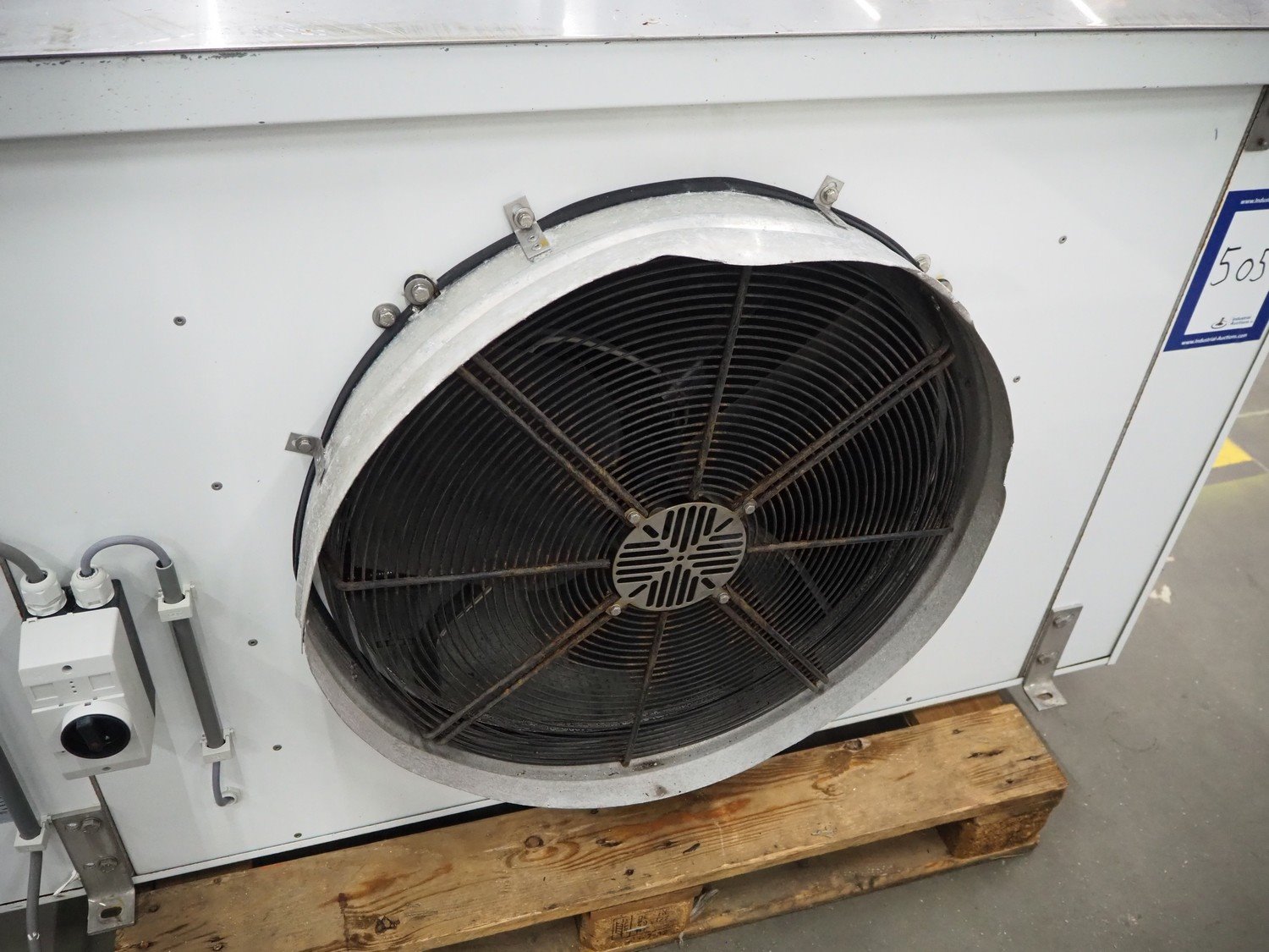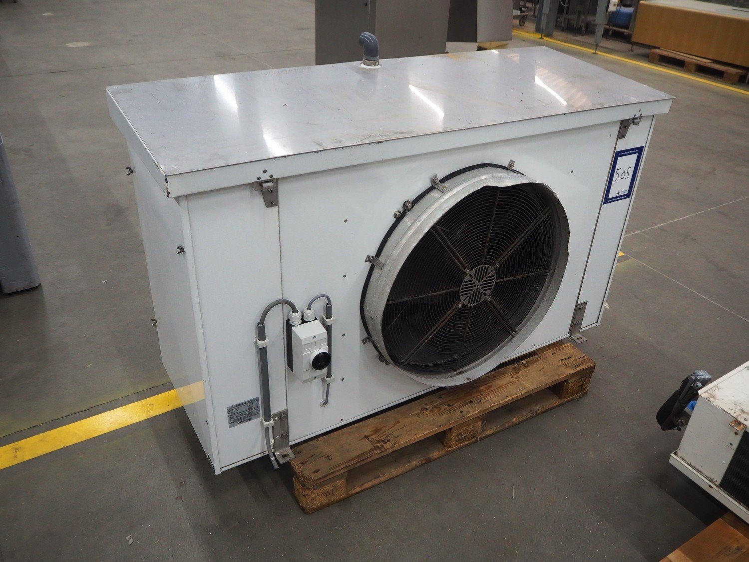 Goedhart evaporator, 1 fan, type: SKU38 41634, manufacturing number: PJV071615. VK0701376/270702180, year of construction: 2007, fluid: R404a, maximum work pressure: 28 bar, working temperature: +55/-1⁰C, volume: 15 dm³, dimensions: 1660 mm x 730 mm x 1080 mm.