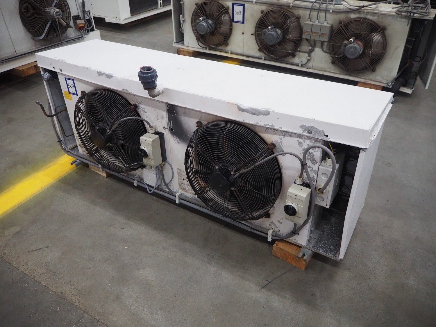 Helpman evaporator, 2 fans, type: LEX 22-7-E / 220-50-1, serial number: 903741, maximum work temperature: -40/55 ⁰C, volume: 20.4 dm³, weight: 111 kg, dimensions: 1880 mm x 670 mm x 850 mm.