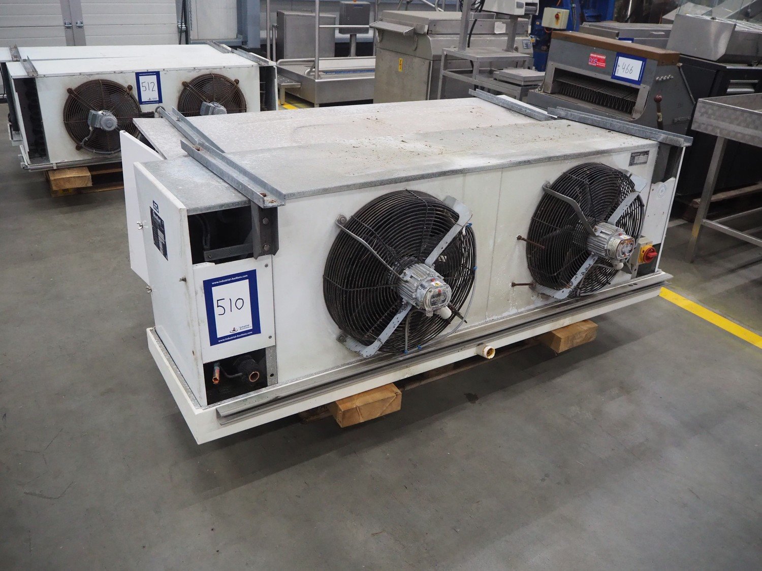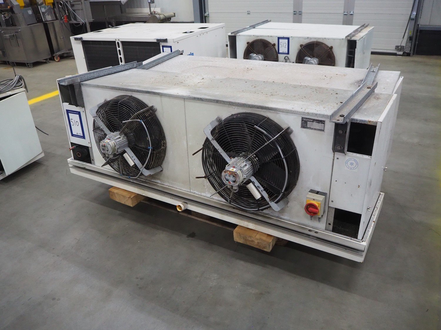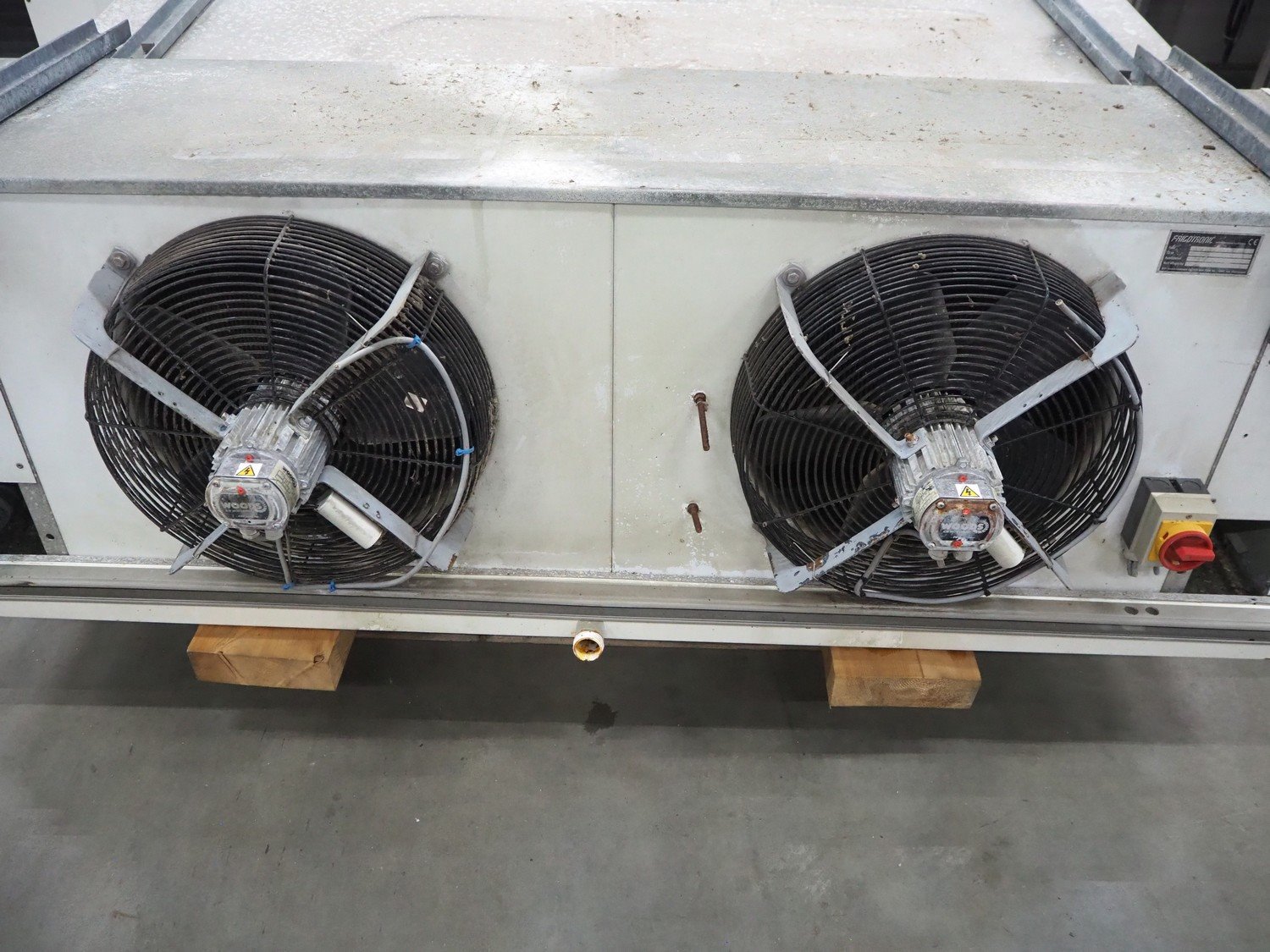 Goedhart evaporator, 2 fans, type: VCB 52457, manufacturing number: 99-0835-010, year of construction: 1999, maximum working temperature: -10/42 ⁰C, maximum working pressure: 19.5 bar, volume: 21 dm³, weight: 130 kg, dimensions: 2050 mm x 850 mm x 750 mm.