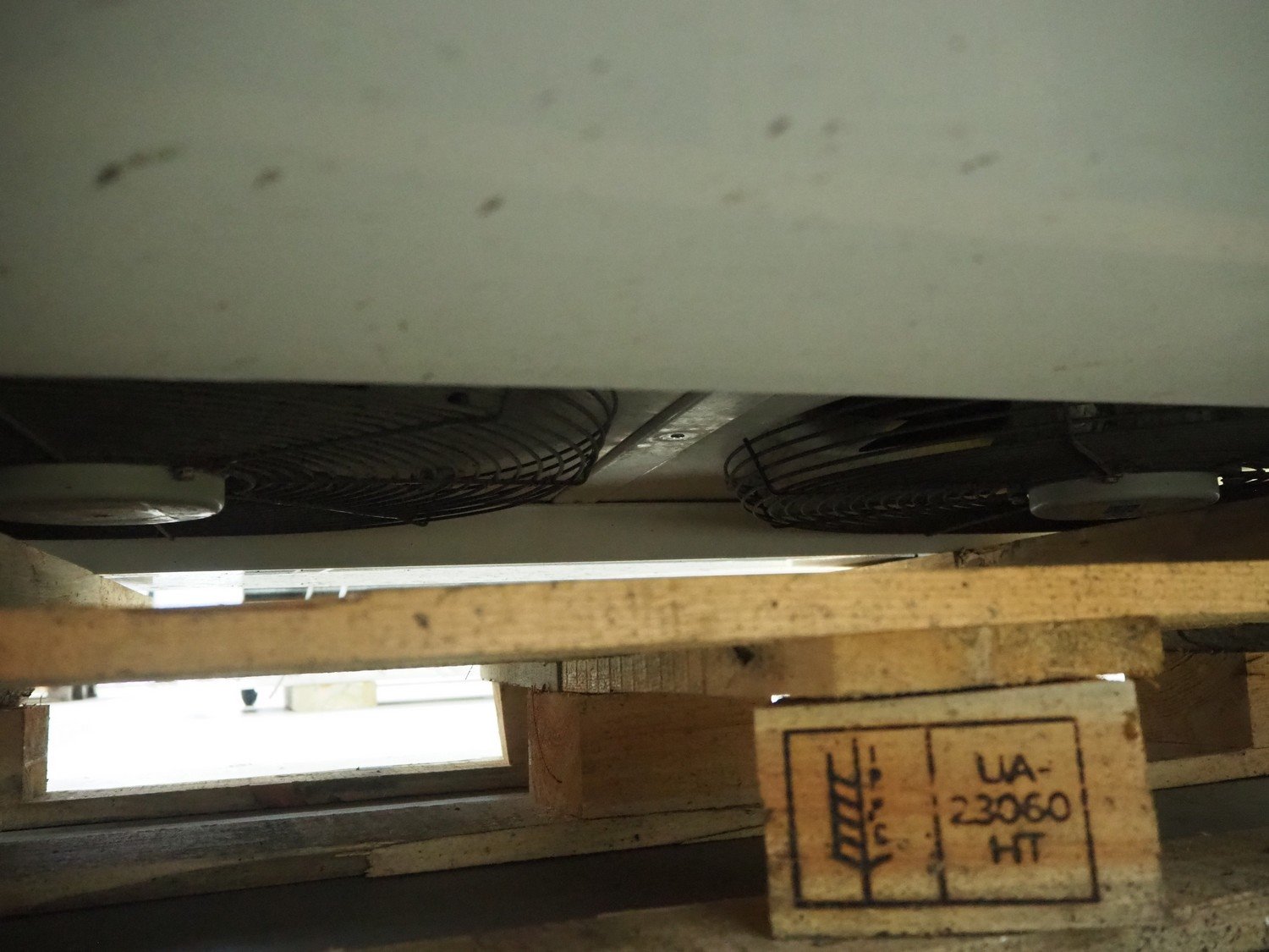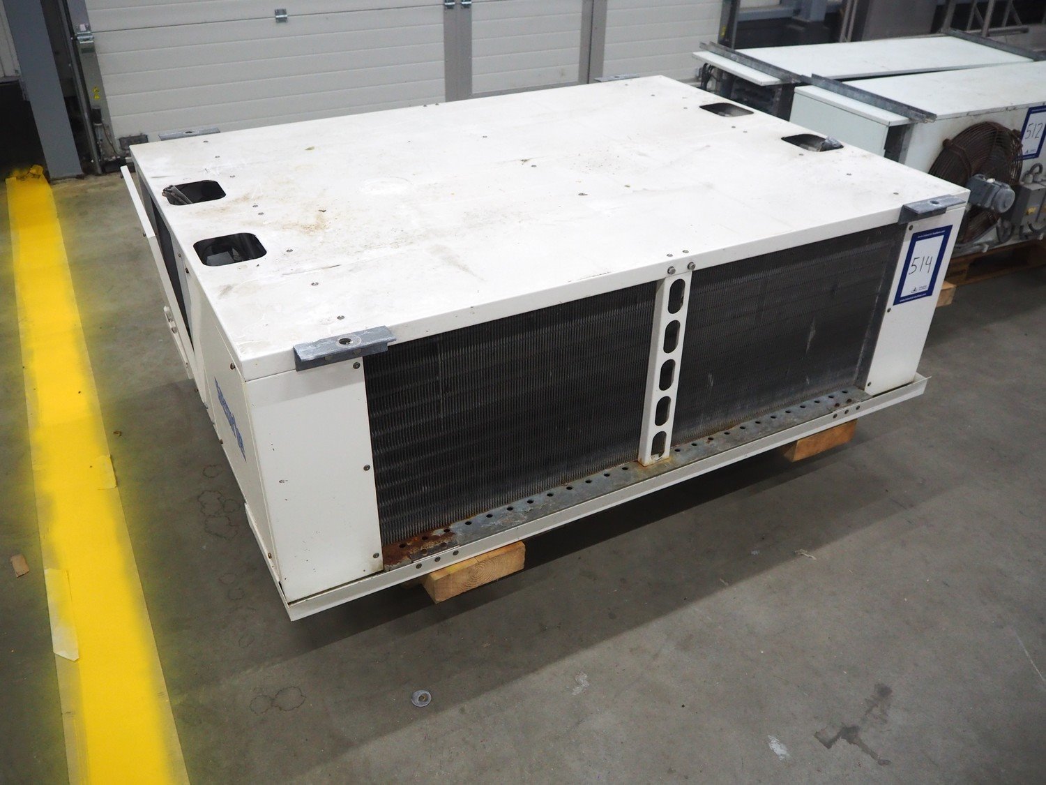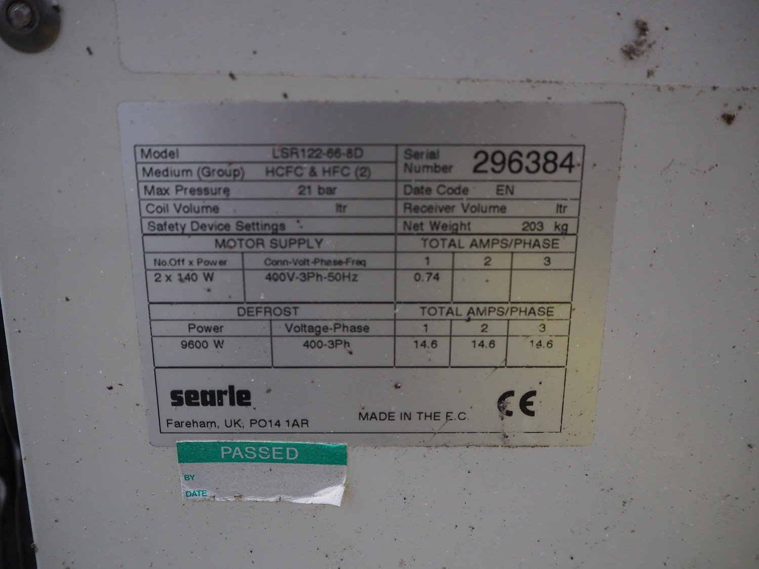 Searle evaporator, 2 fans, model: LSR122-66-8D, serial number: 296384, 400 V, 3 Ph, 50 Hz, maximum pressure: 21 bar, weight: 203 kg, dimensions: 1900 mm x 1400 mm x 800 mm.