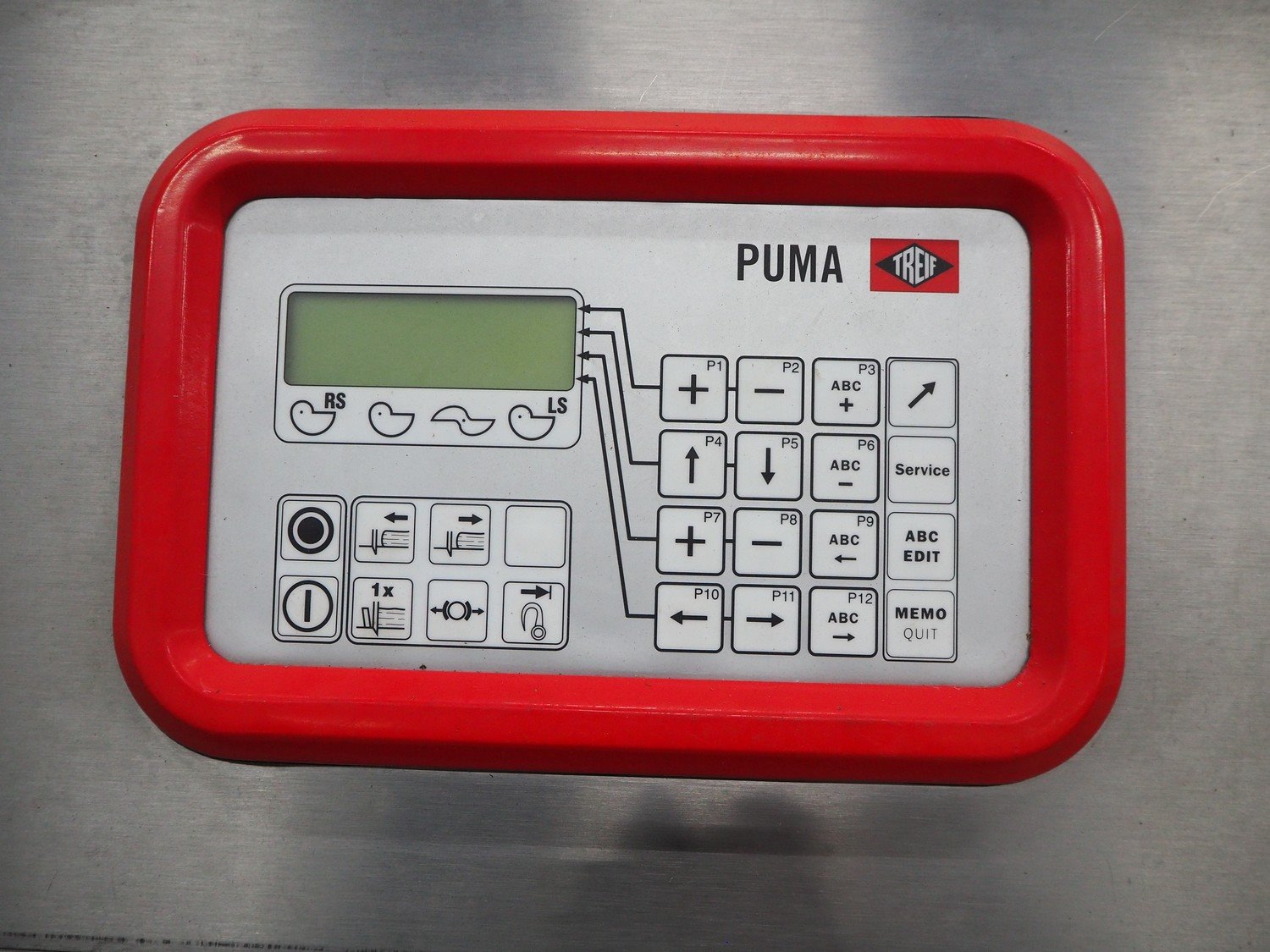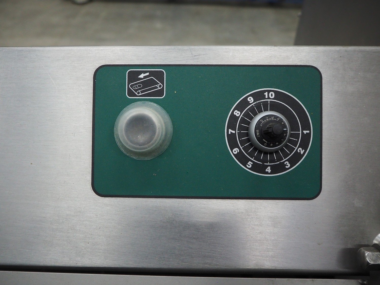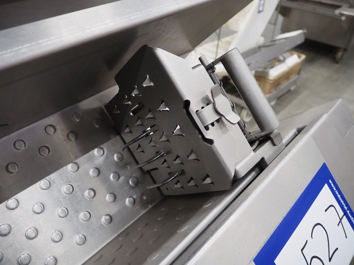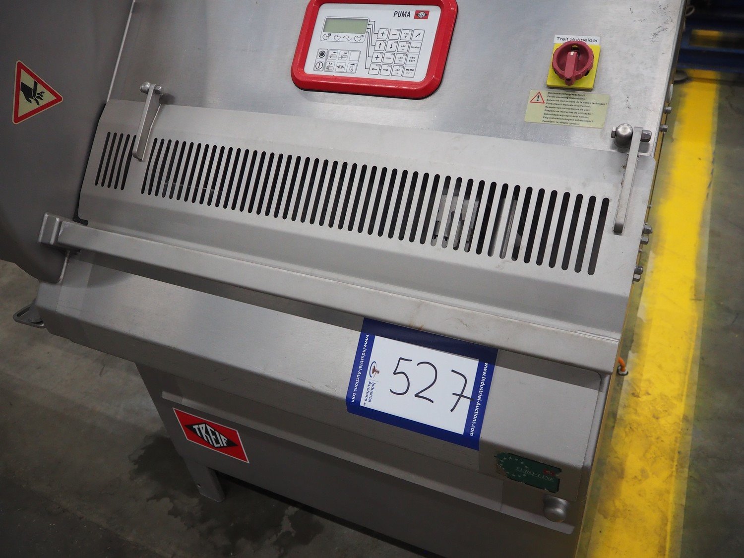 Treif slicer, type: 1943, machine number: 194306.61622.0350, year of construction: 2000, 230/400 V, 50 Hz, 8,2/16 A, 3,40 kW, plastic belt, belt width: 240 mm, machine weight: 305 kg, dimensions chamber: 230 mm x 215 mm, dimensions knife: 530 mm, total dimensions: 1950 mm x 930 mm x 1430 mm.