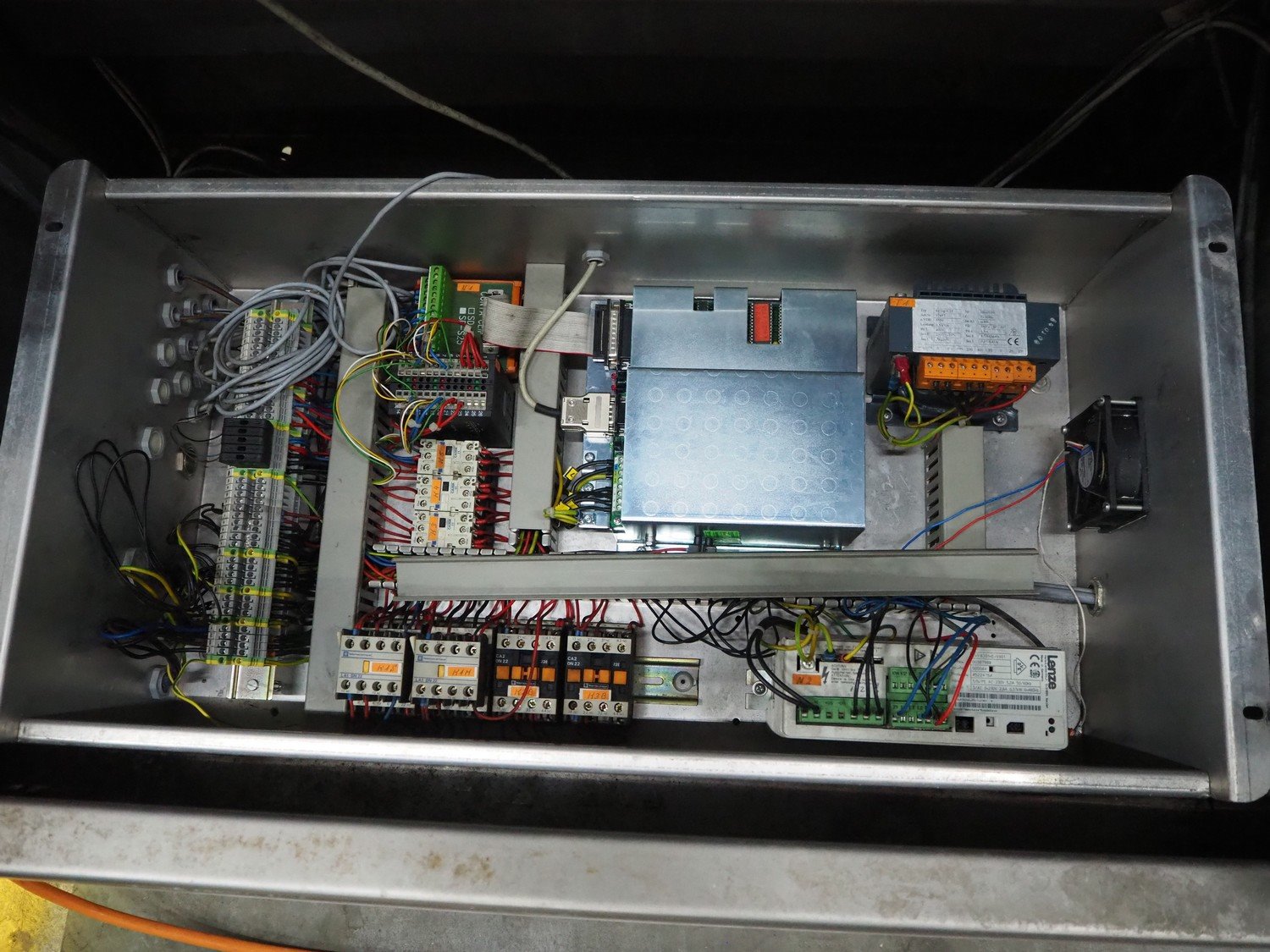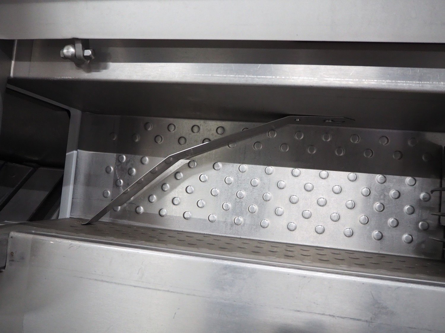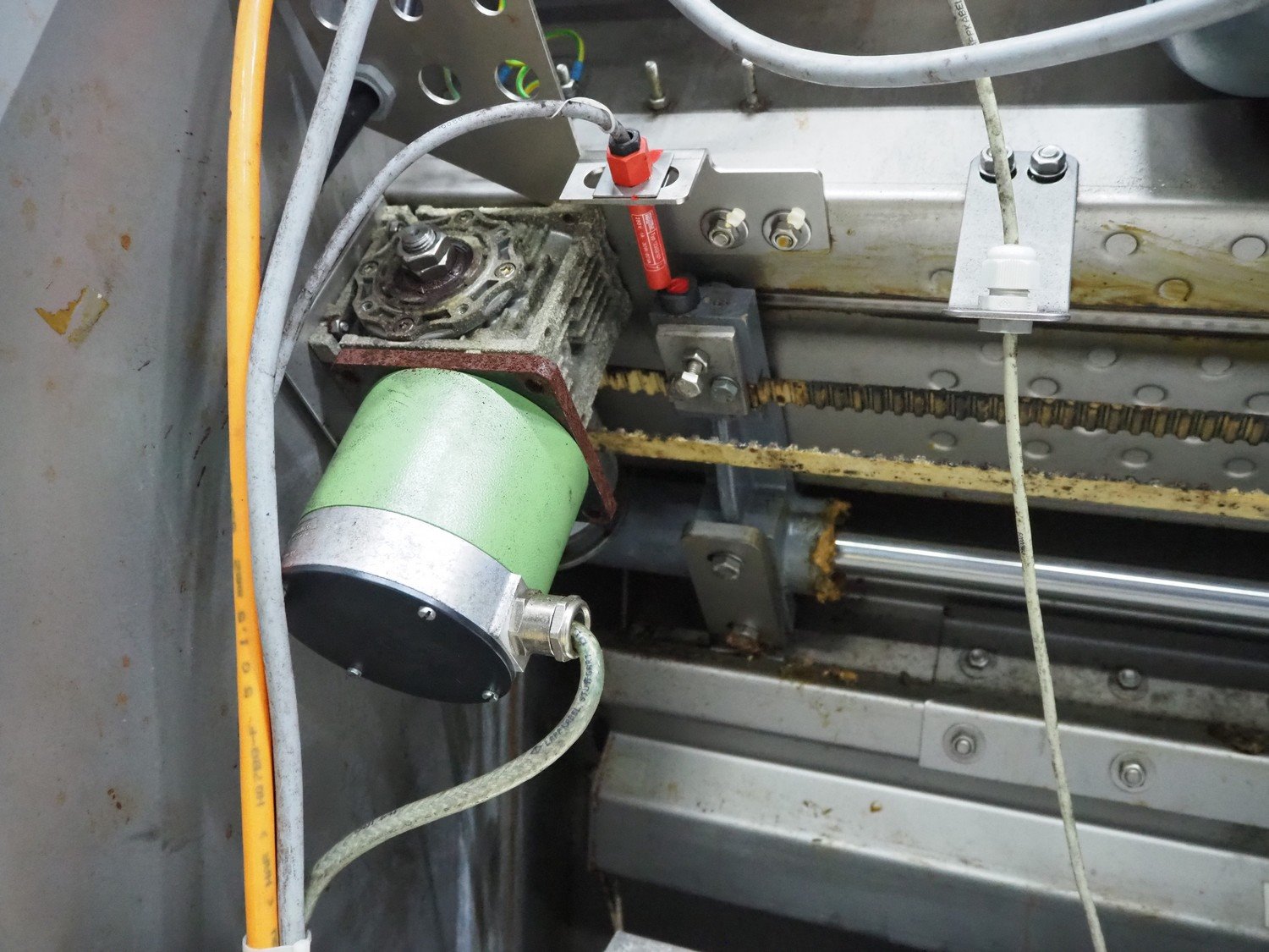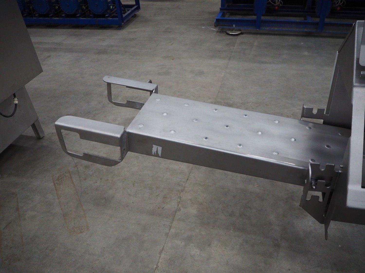 Treif slicer, type: 1943, machine number: 194306.61622.0350, year of construction: 2000, 230/400 V, 50 Hz, 8,2/16 A, 3,40 kW, plastic belt, belt width: 240 mm, machine weight: 305 kg, dimensions chamber: 230 mm x 215 mm, dimensions knife: 530 mm, total dimensions: 1950 mm x 930 mm x 1430 mm.