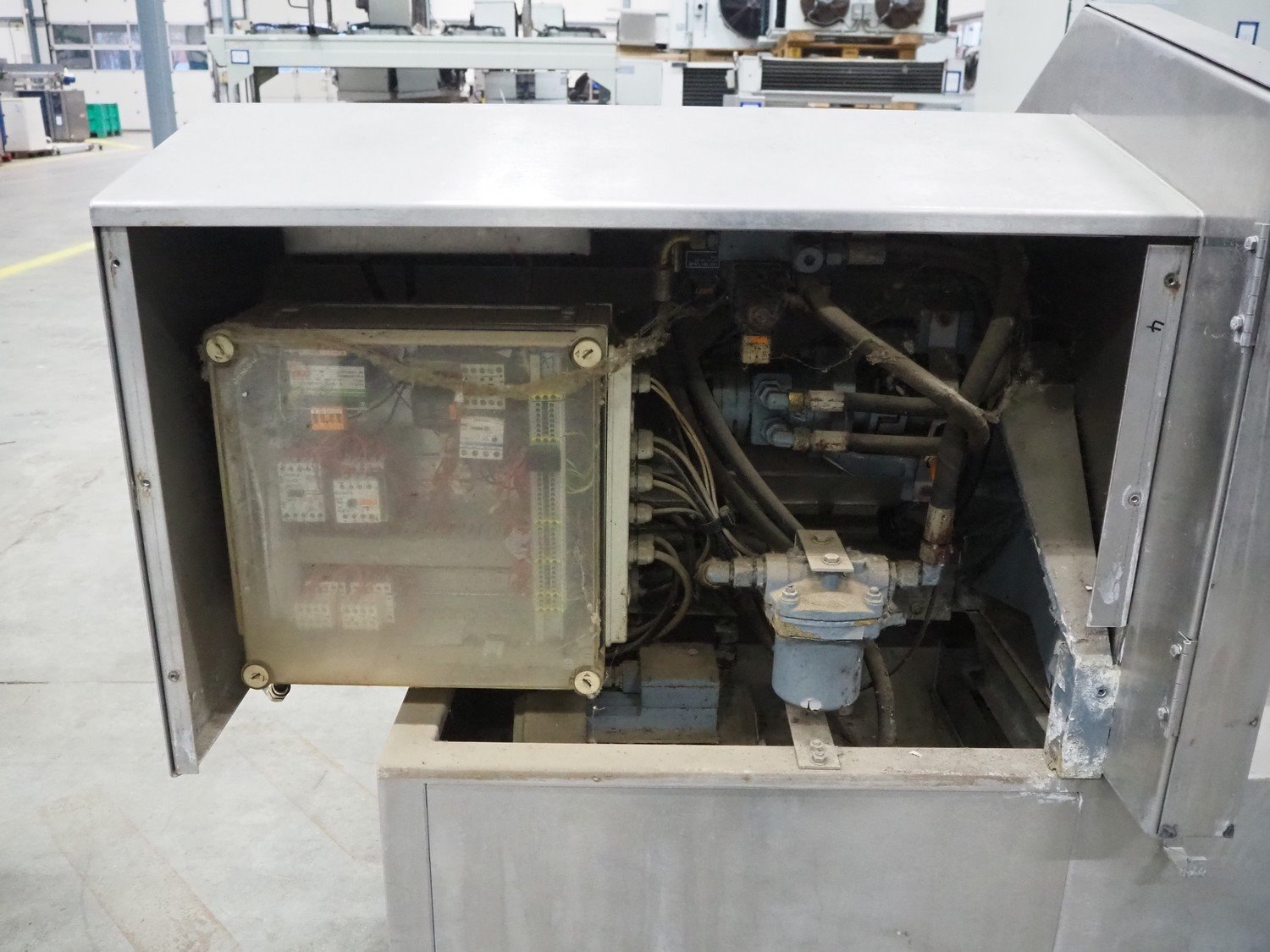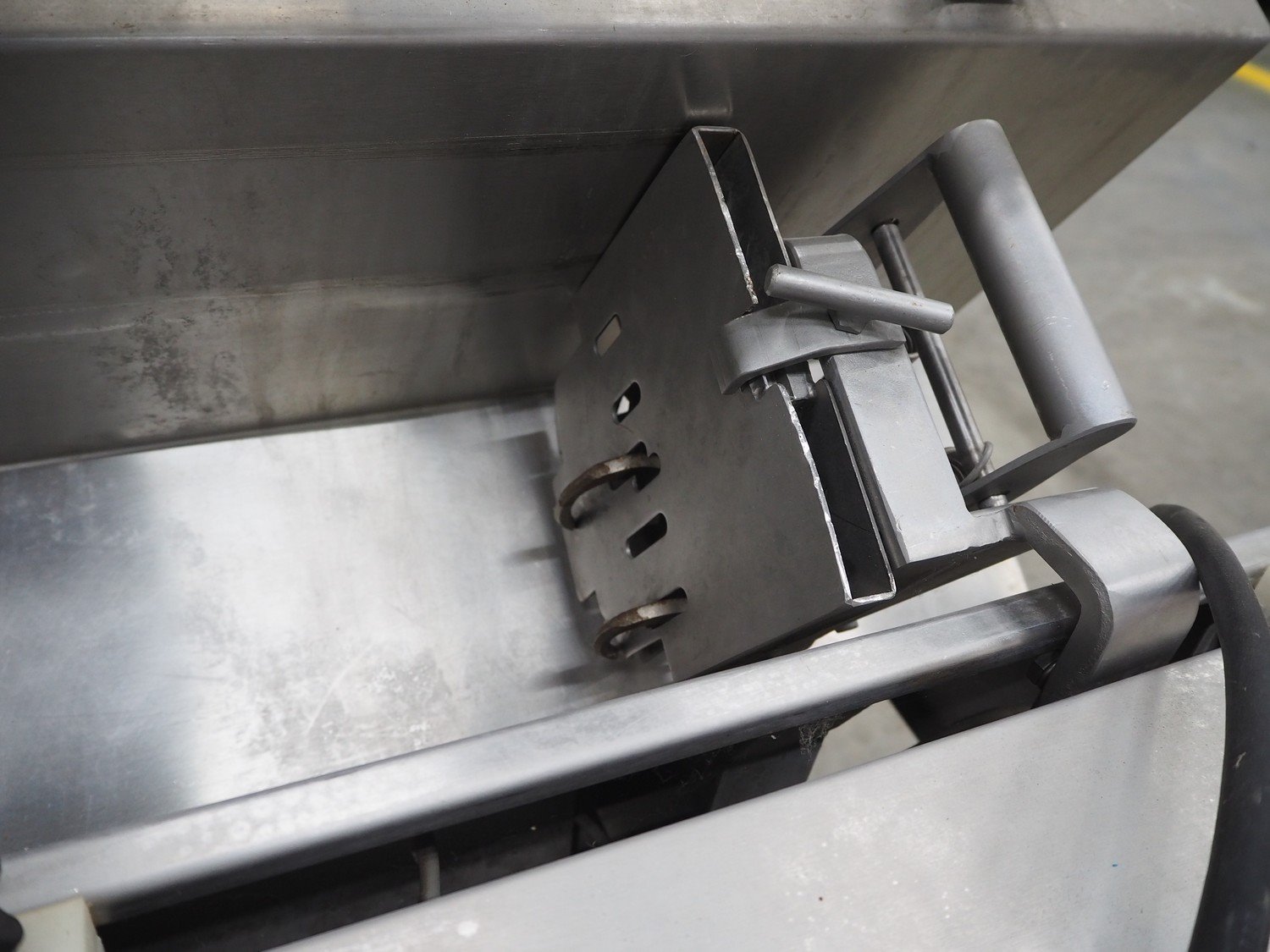 Treif slicer, dimensions chamber: 220 mm x 180 mm, dimensions: 1850 mm x 860 mm x 1350 mm.
