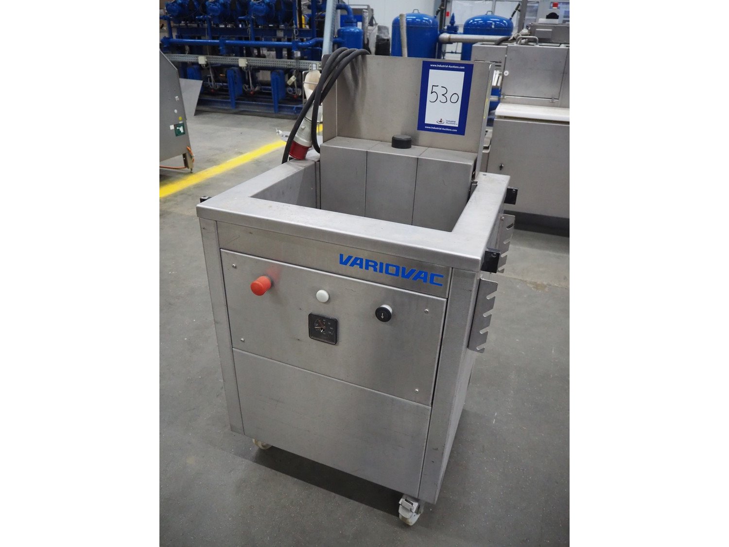 Variovac mobile dip tank, type: TB 70, machine number: 2109, year of construction: 2000, 230/400 V, 50 Hz, 9 kW, dimensions inside: 500 mm x 355 mm, total dimensions: 730 mm x 650 mm x 1180 mm.