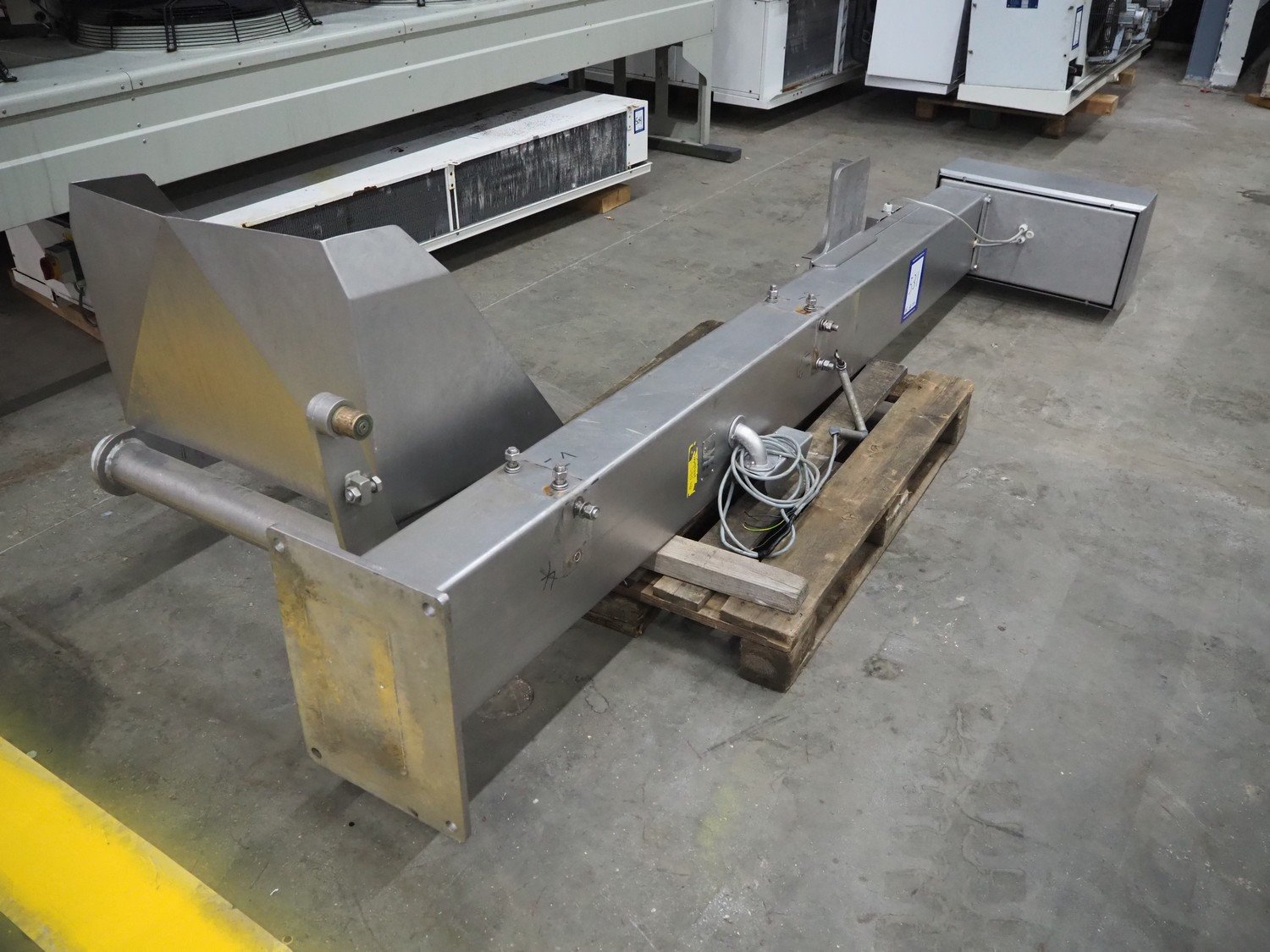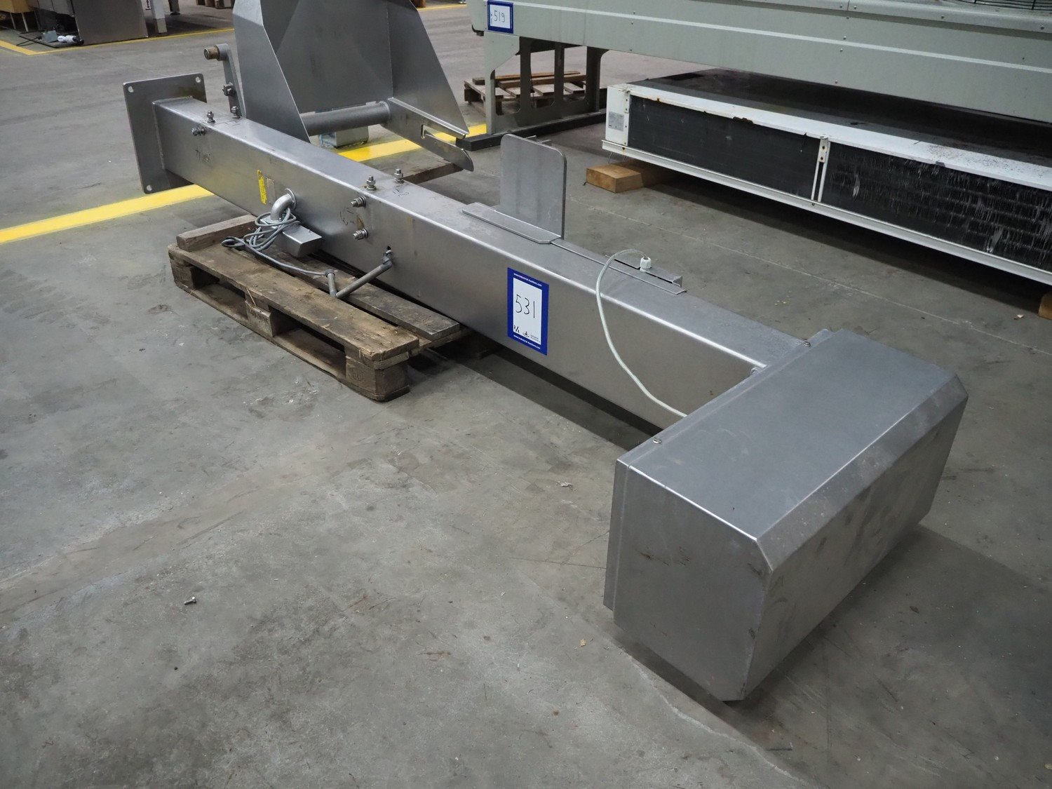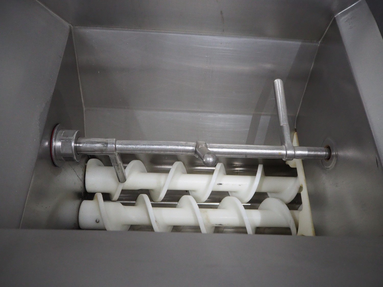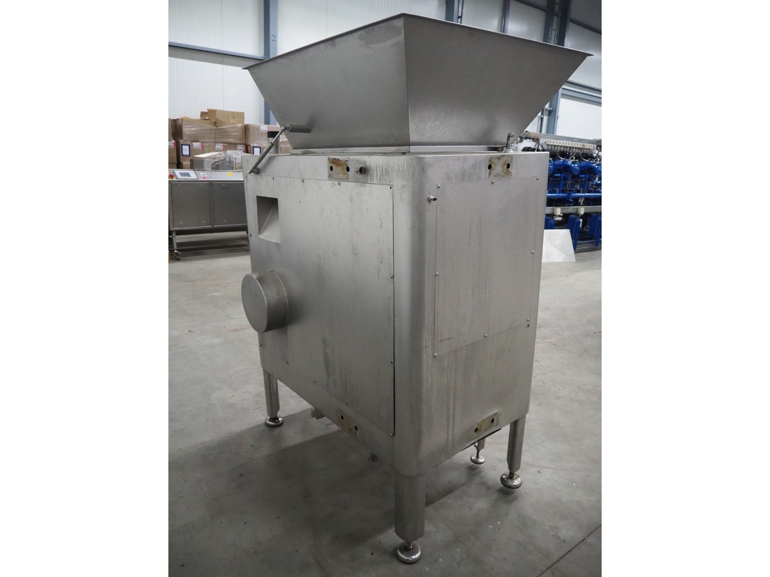 MaDo mixer-grinder with Carsø lifter for 200 liter meat bins, diameter plate: 160 mm, dimensions mixer-ginder: 1320 mm x 1100 mm x 1850 mm, lifter type: HKV200, serial number: 94606, year of construction: 2001, 400 V, 3 Ph, 0.75 kW, lifting height: 2000 mm, dimensions lifter: 3300 mm x 1400 mm x 700 mm.