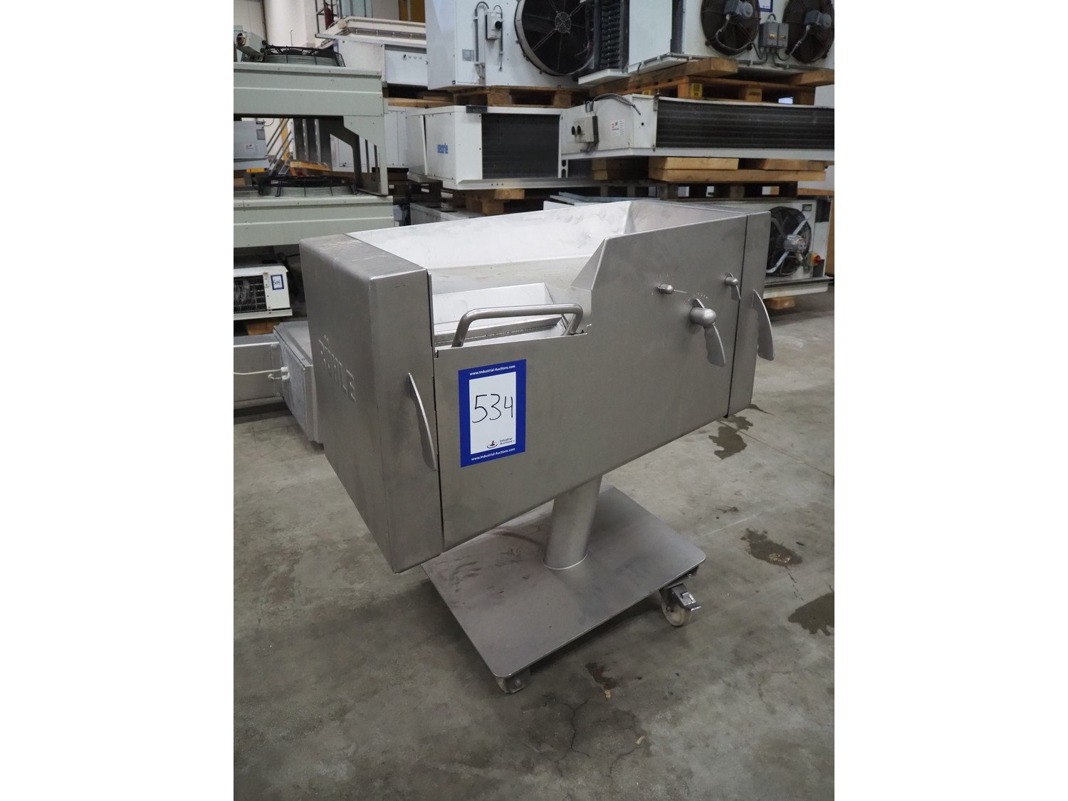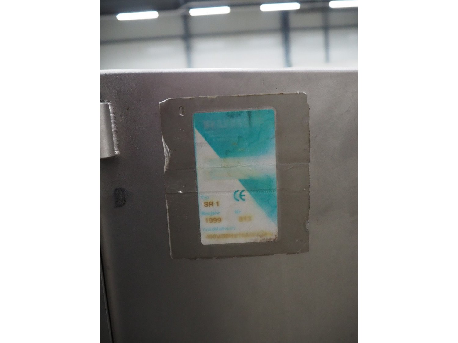 Rühle mobile dicer, type: SR 1, number: 813, year of construction 1999, 400 V, 50 Hz, dimensions chamber: 100 mm x 100 mm x 340 mm, grid with 15 knifes, distance between knifes: 5 mm, total dimensions: 1000 mm x 700 mm x 1100 mm.