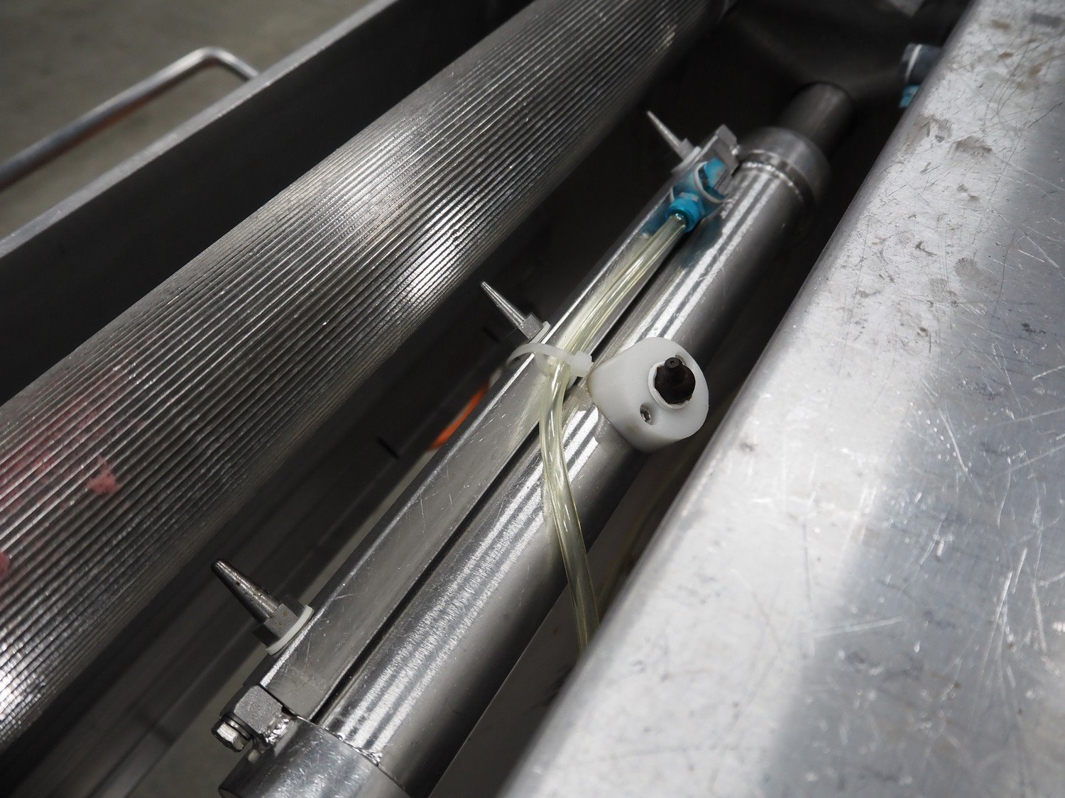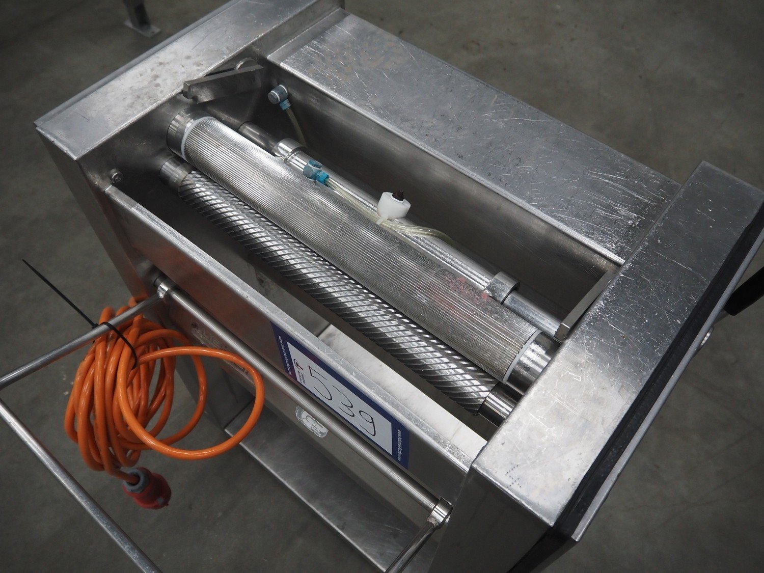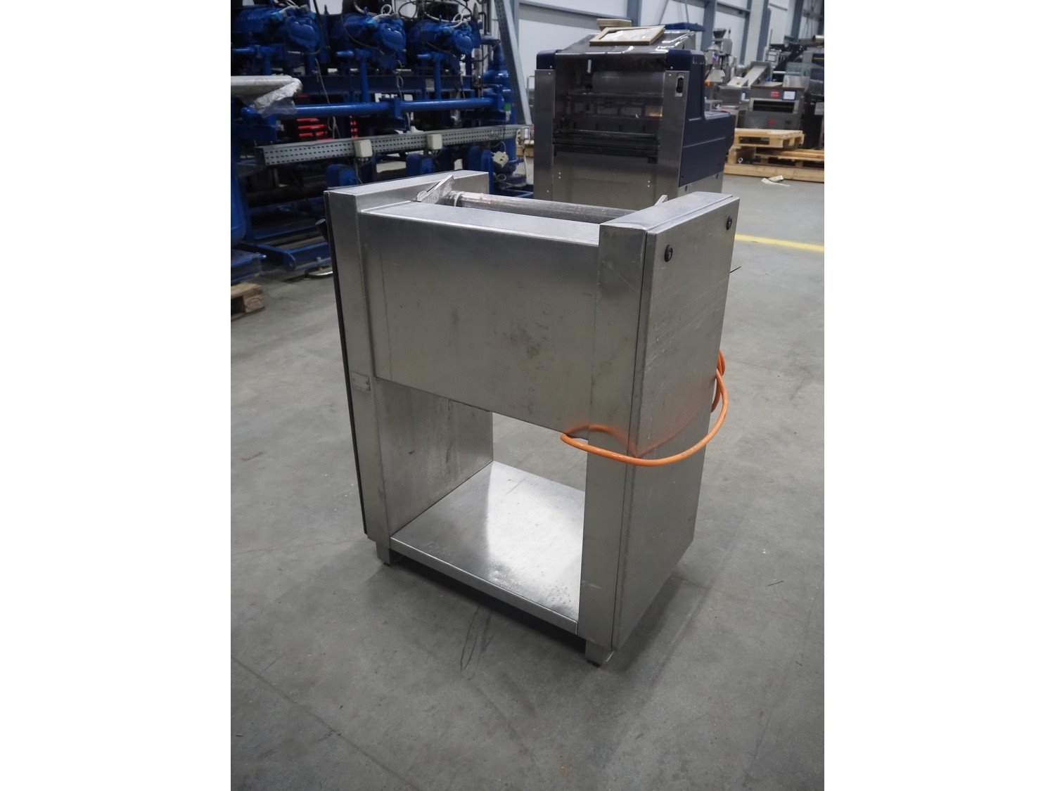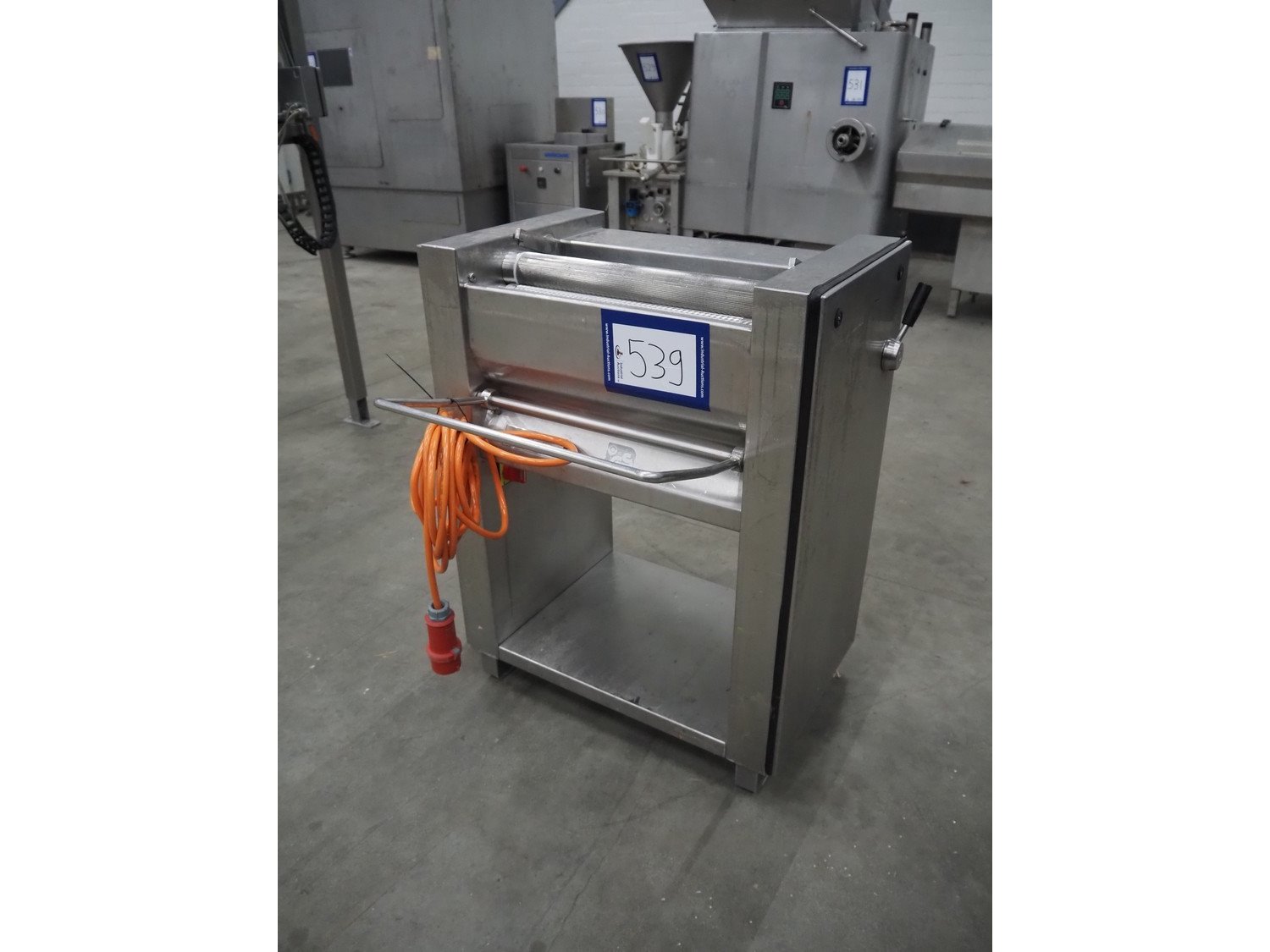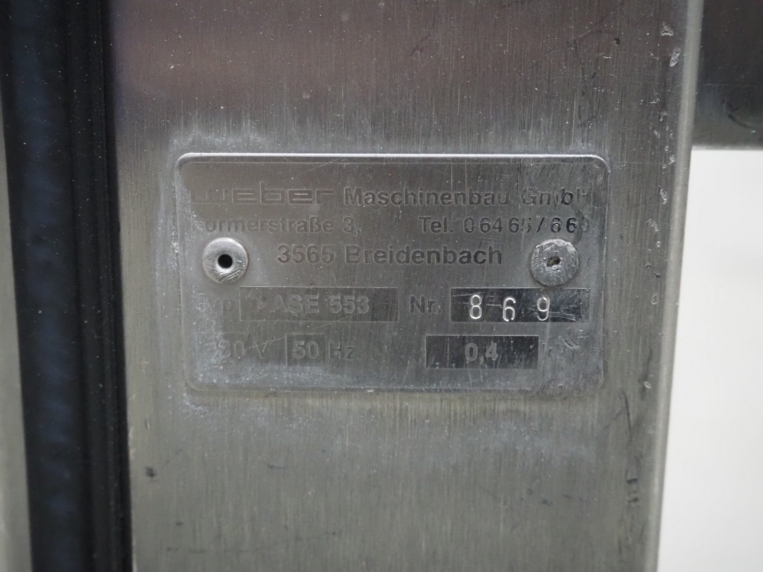 Weber mobile skinning machine, type: ASE 553, number: 869, 230 V, 50 Hz, 0.4 A, working width: 500 mm, total dimensions: 800 mm x 550 mm x 1000 mm. Incomplete.