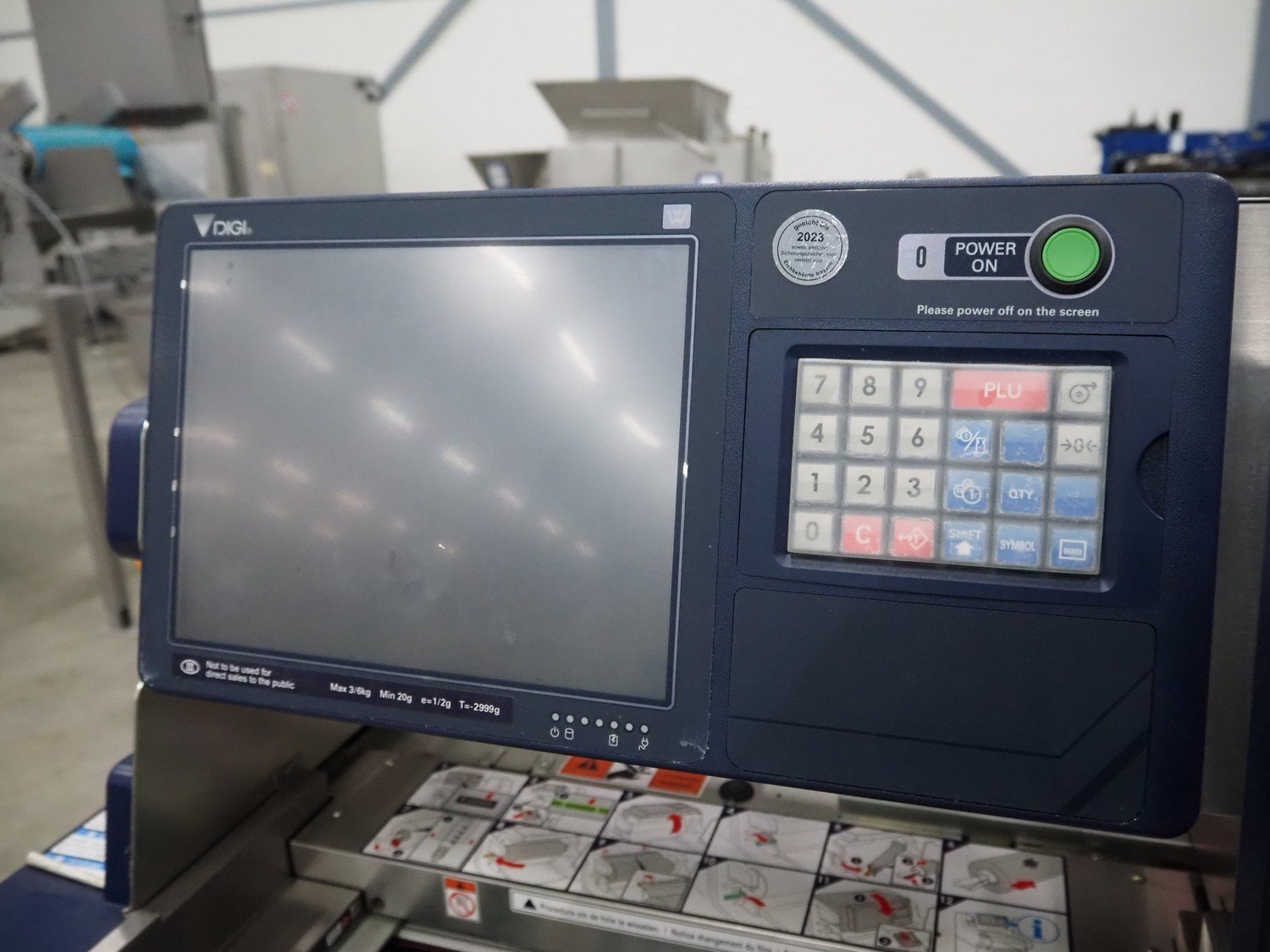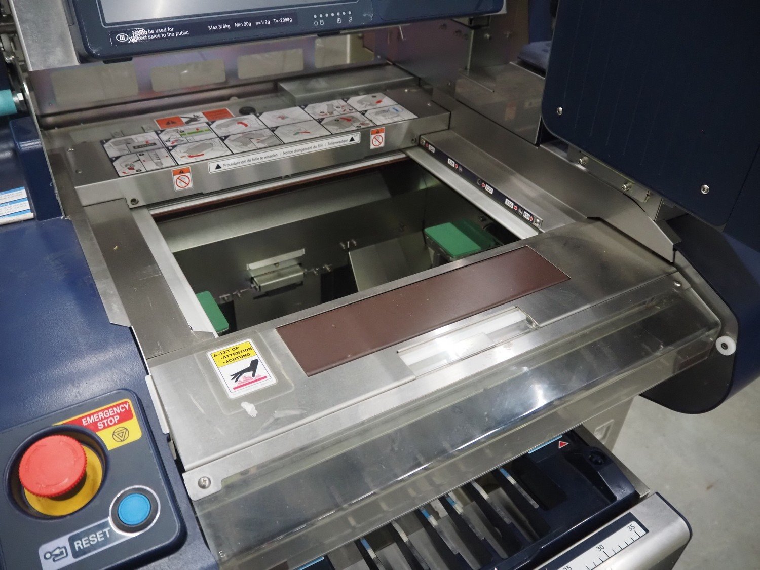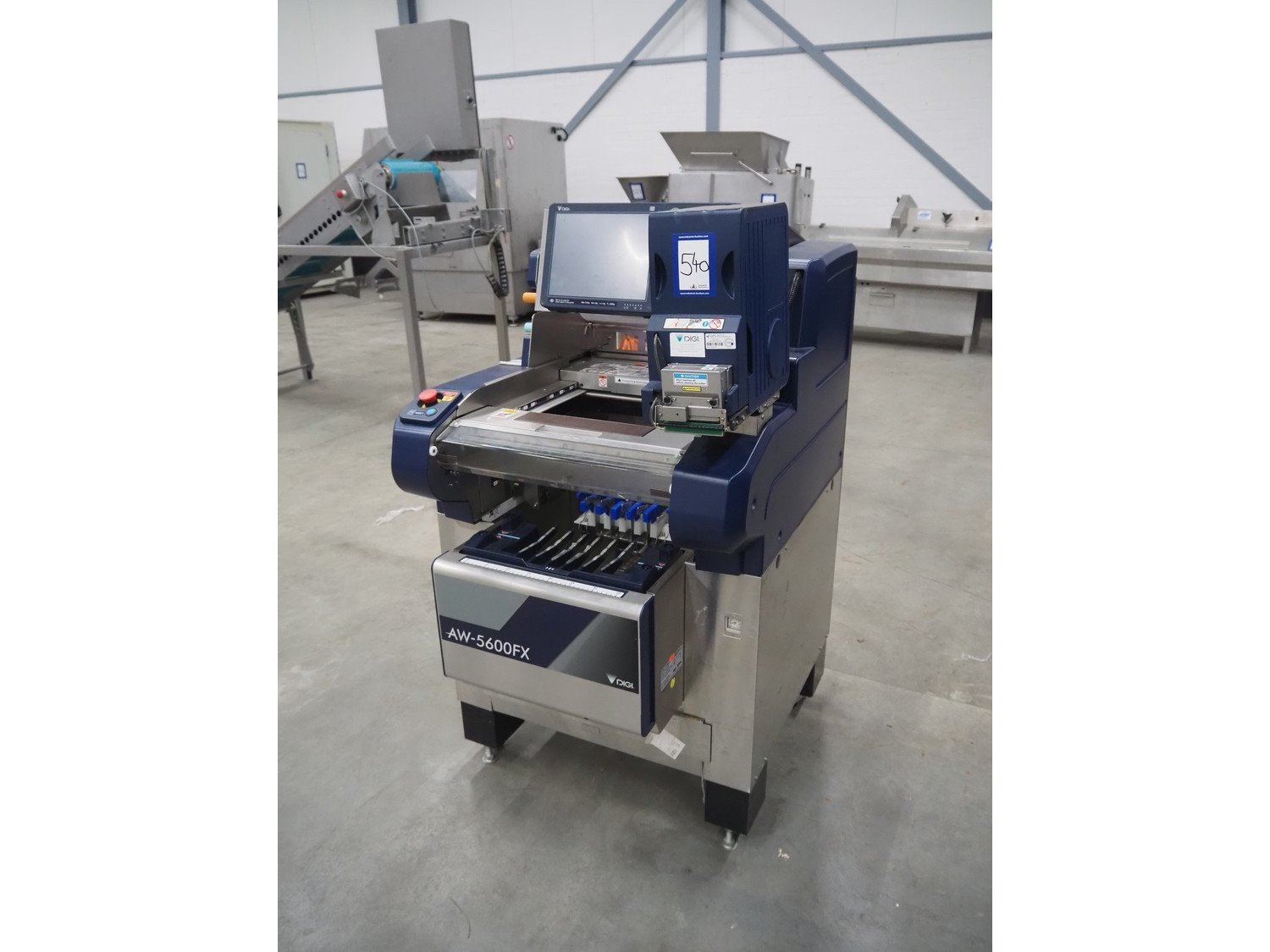 Teraoka Seiko co., LTD. mobile weigh-, wrap-, and label machine, model: AW-5600FX, serial number: 18110306, year of construction: 2018, 220/240 V, 1 Ph, 50/60 Hz, 1.8 kW, maximum: 3/6 kg, minimum: 20g, e=1/2 kg, T=-2999 g, m=250 kg, clearance: 380 mm x 280 mm, film width: 380 mm, total dimensions: 970 mm x 800 mm x 1440 mm.