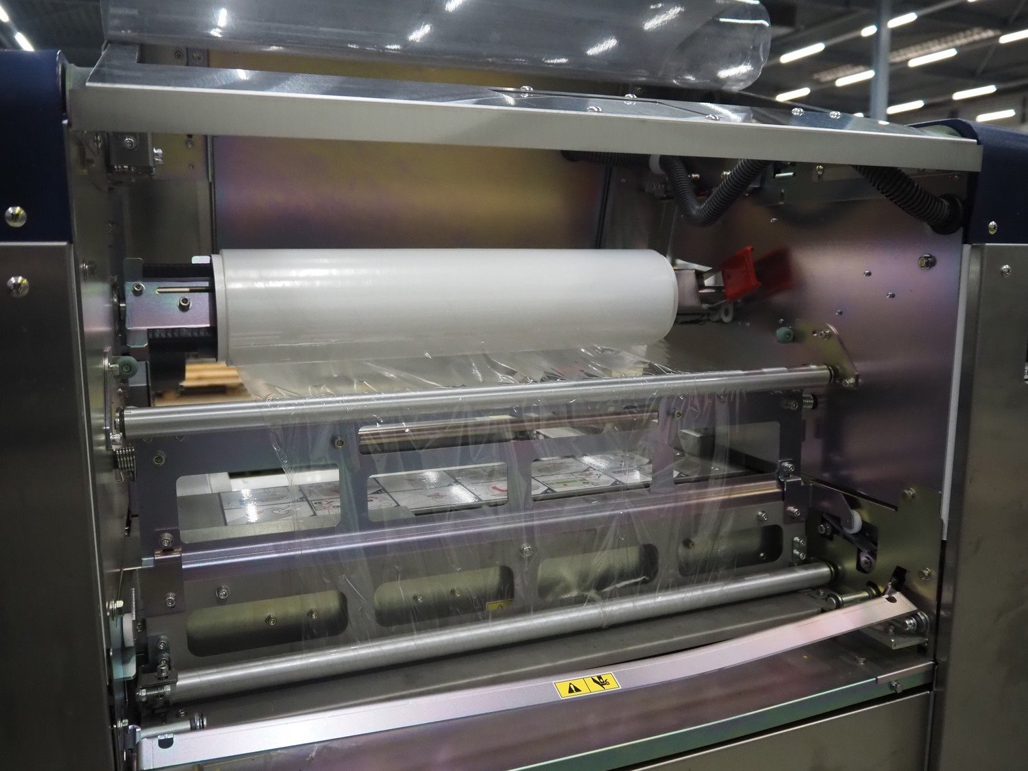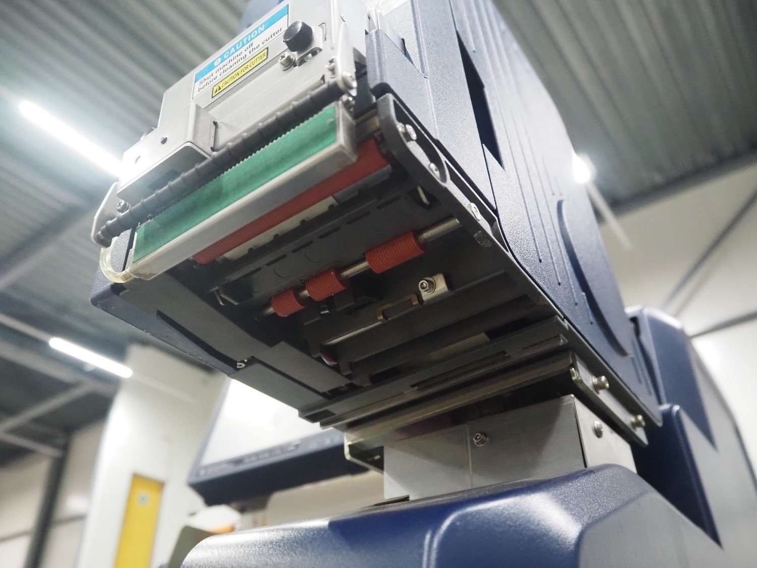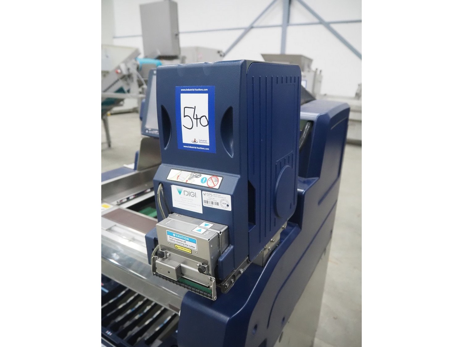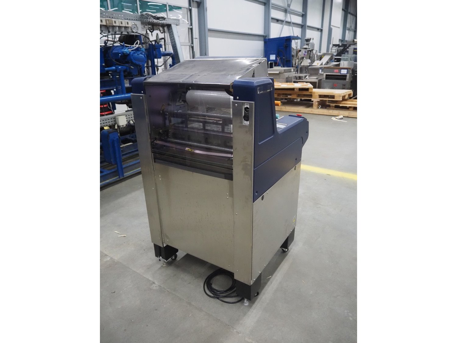 Teraoka Seiko co., LTD. mobile weigh-, wrap-, and label machine, model: AW-5600FX, serial number: 18110306, year of construction: 2018, 220/240 V, 1 Ph, 50/60 Hz, 1.8 kW, maximum: 3/6 kg, minimum: 20g, e=1/2 kg, T=-2999 g, m=250 kg, clearance: 380 mm x 280 mm, film width: 380 mm, total dimensions: 970 mm x 800 mm x 1440 mm.
