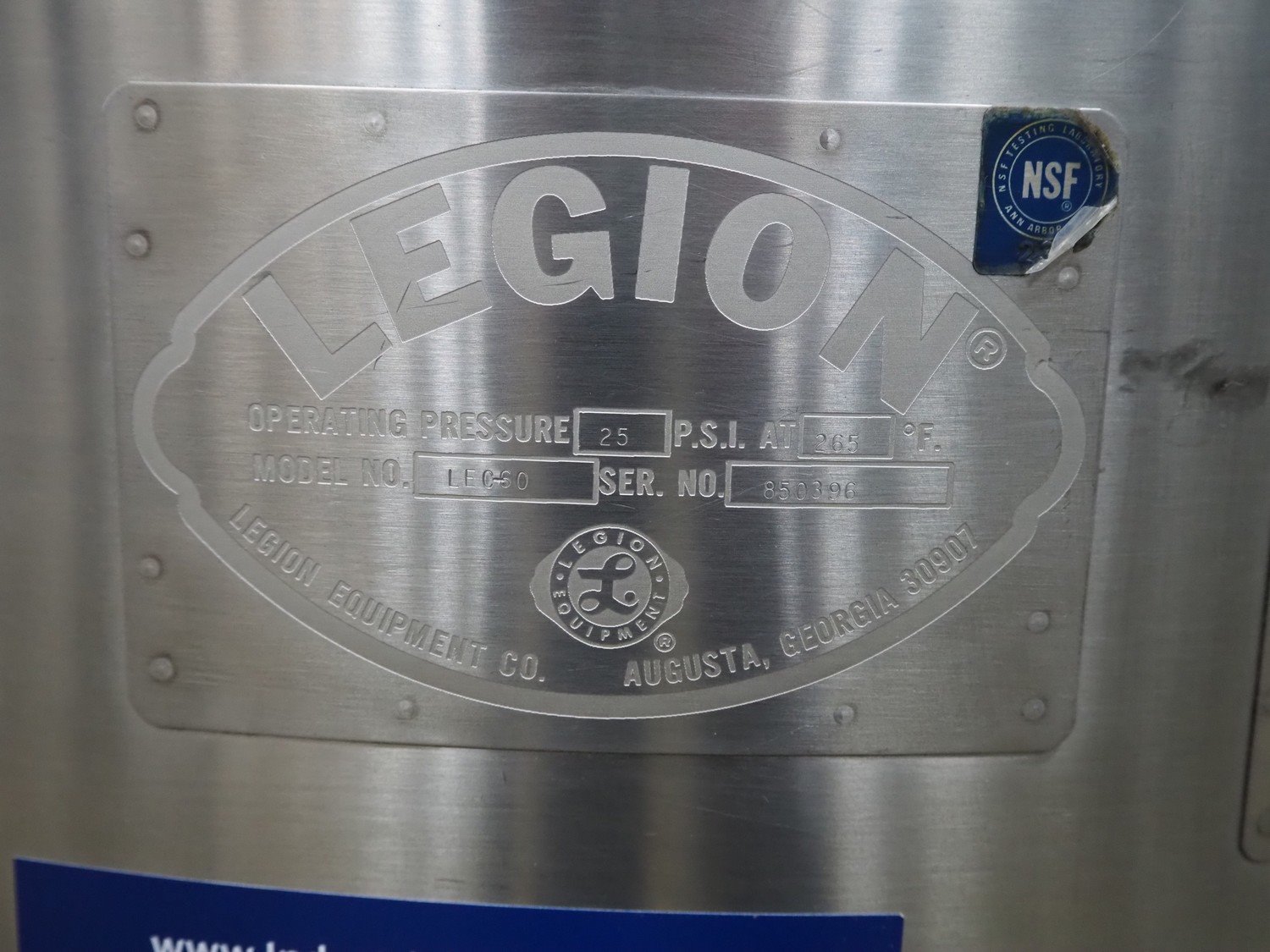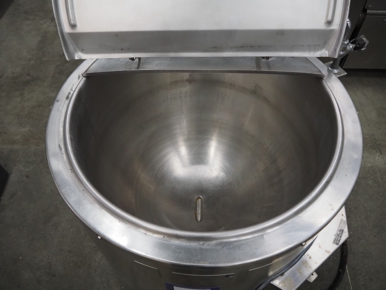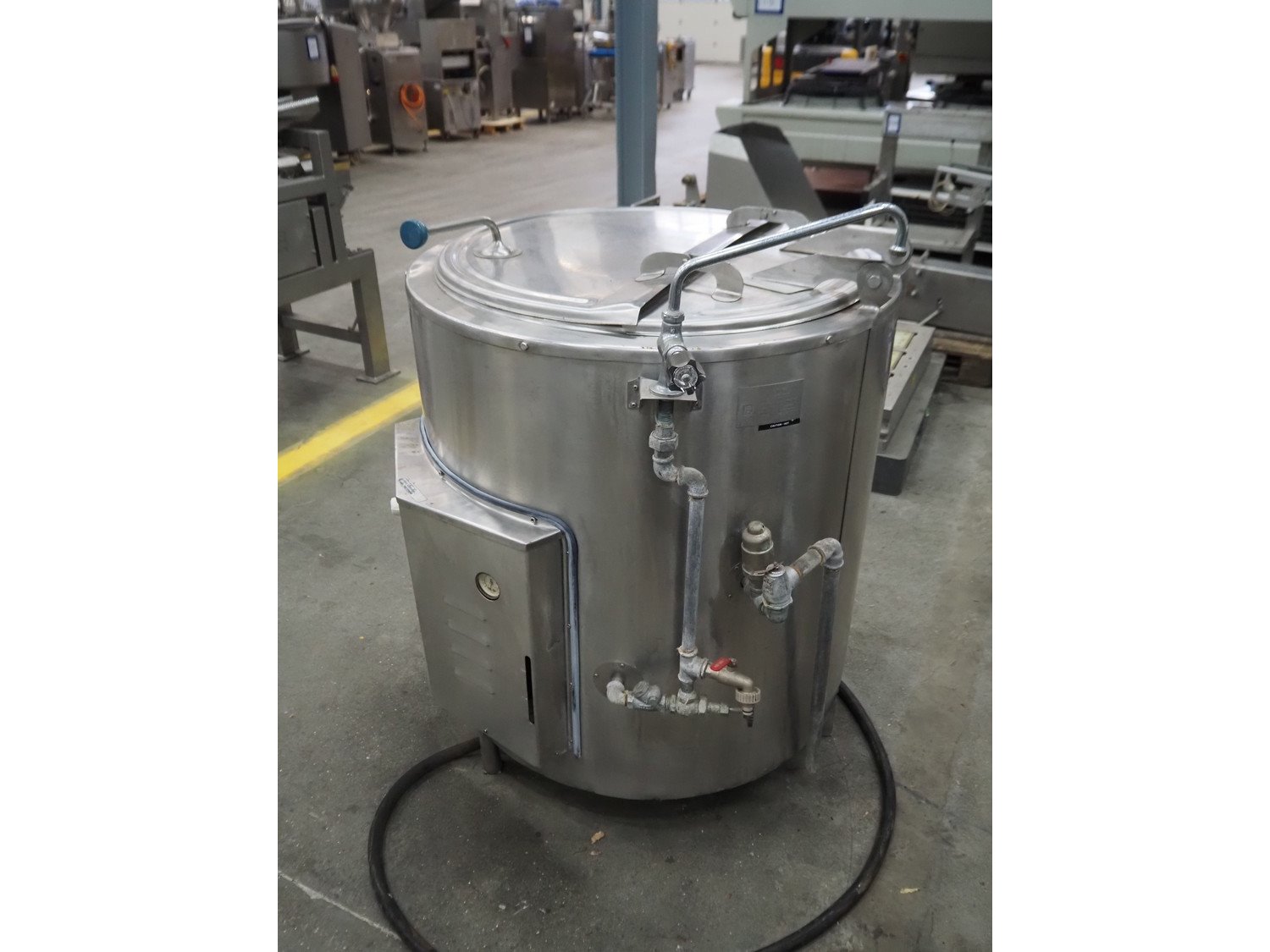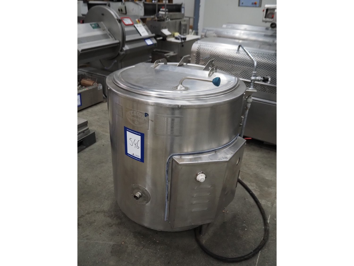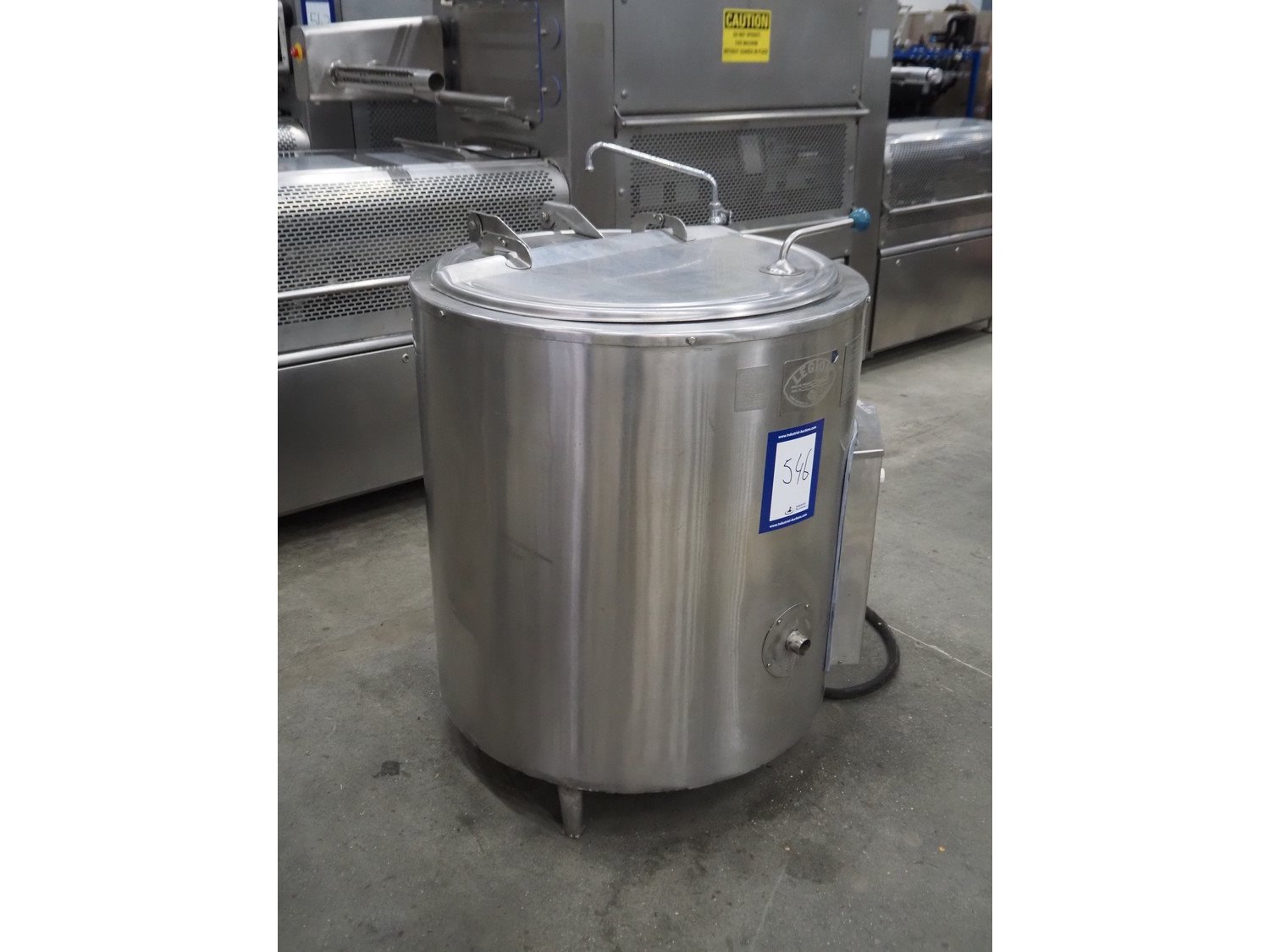 Legion cooking vessel, model: LEC-60, serial number: 850396, double jacketed, electric heated, volume: 60 liter, dimensions: Ø 1000 mm x 1200 mm.