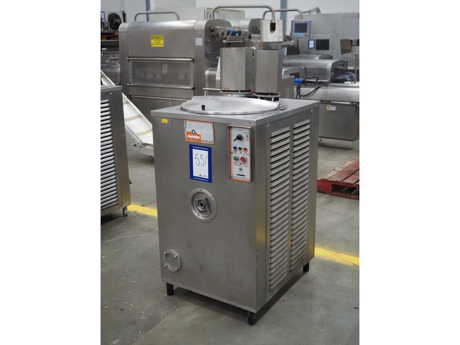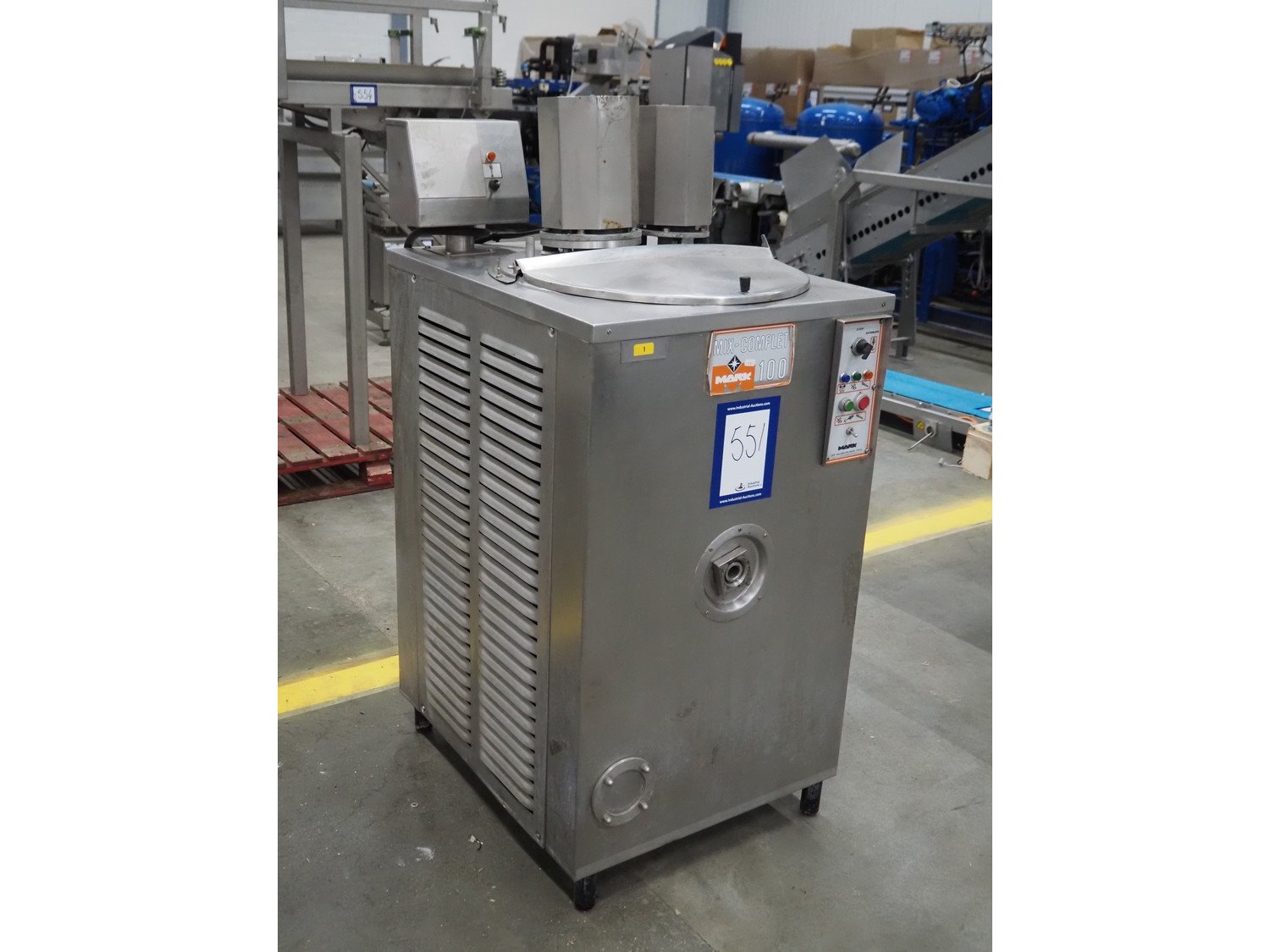 Mark S.p.A. cooled mixer, type: VC 100, serial number: 780, 380 V, 50 Hz, 13 kW, refrigerant: R 12, dimensions: 820 mm x 670 mm x 1500 mm.