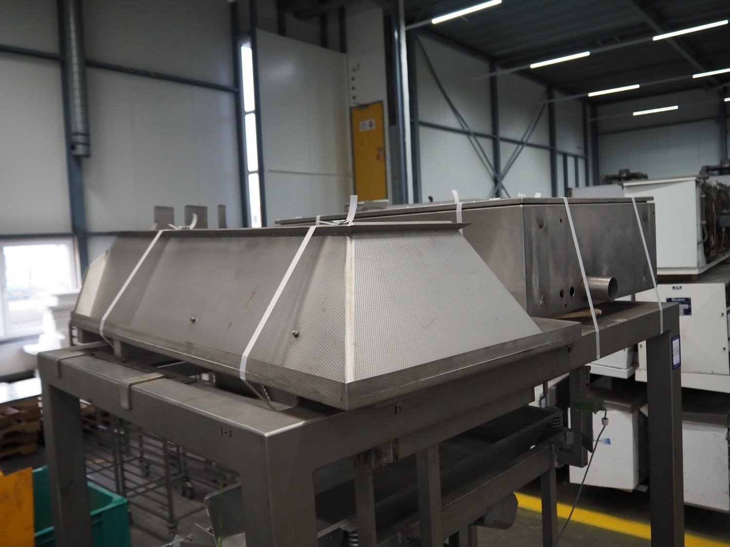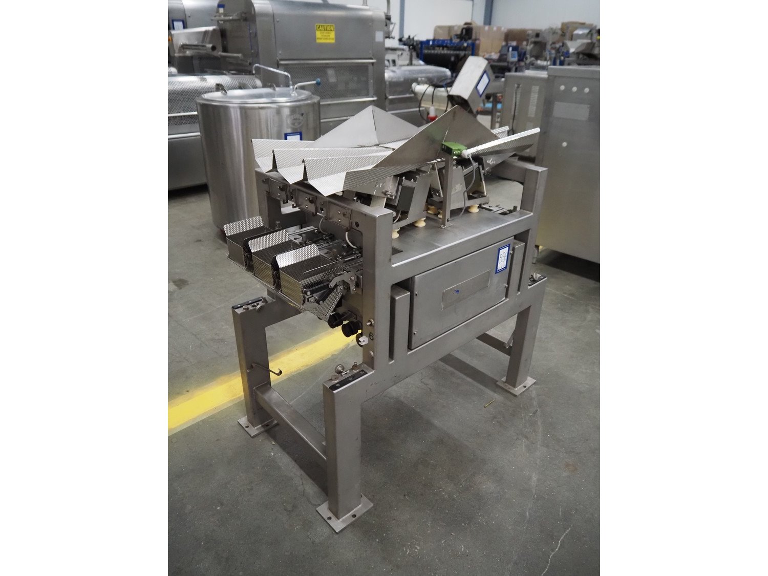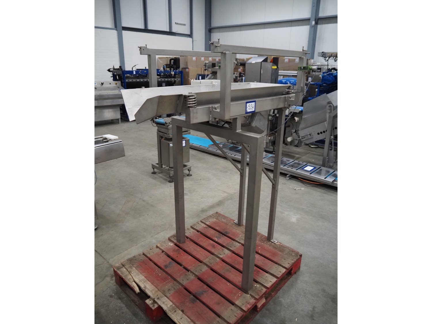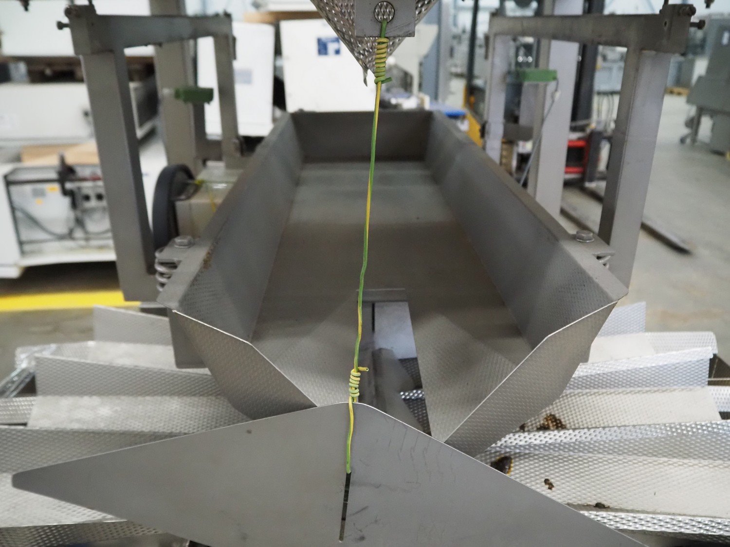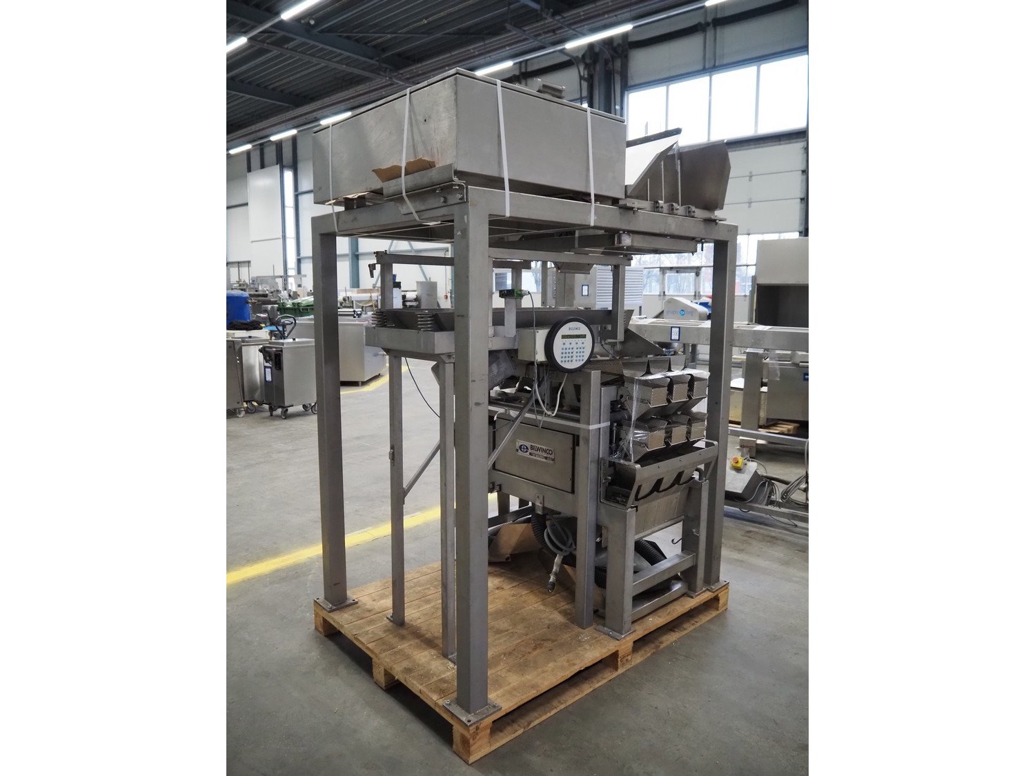 Bilwinco linear weigher consisting of: 2 6-lanes linear weighers, lane width: 120 mm, total dimensions: (2x) 1200 mm x 700 mm x 1300 mm, 2 vibrating gutters, gutter width: 350 mm, total dimensions: (2x) 1300 mm x 700 mm x 1600 mm, s/s frame with infeed hopper and switch cabinet, dimensions: 1600 mm x 1100 mm x 1750 mm. 1 weigher is incomplete.
