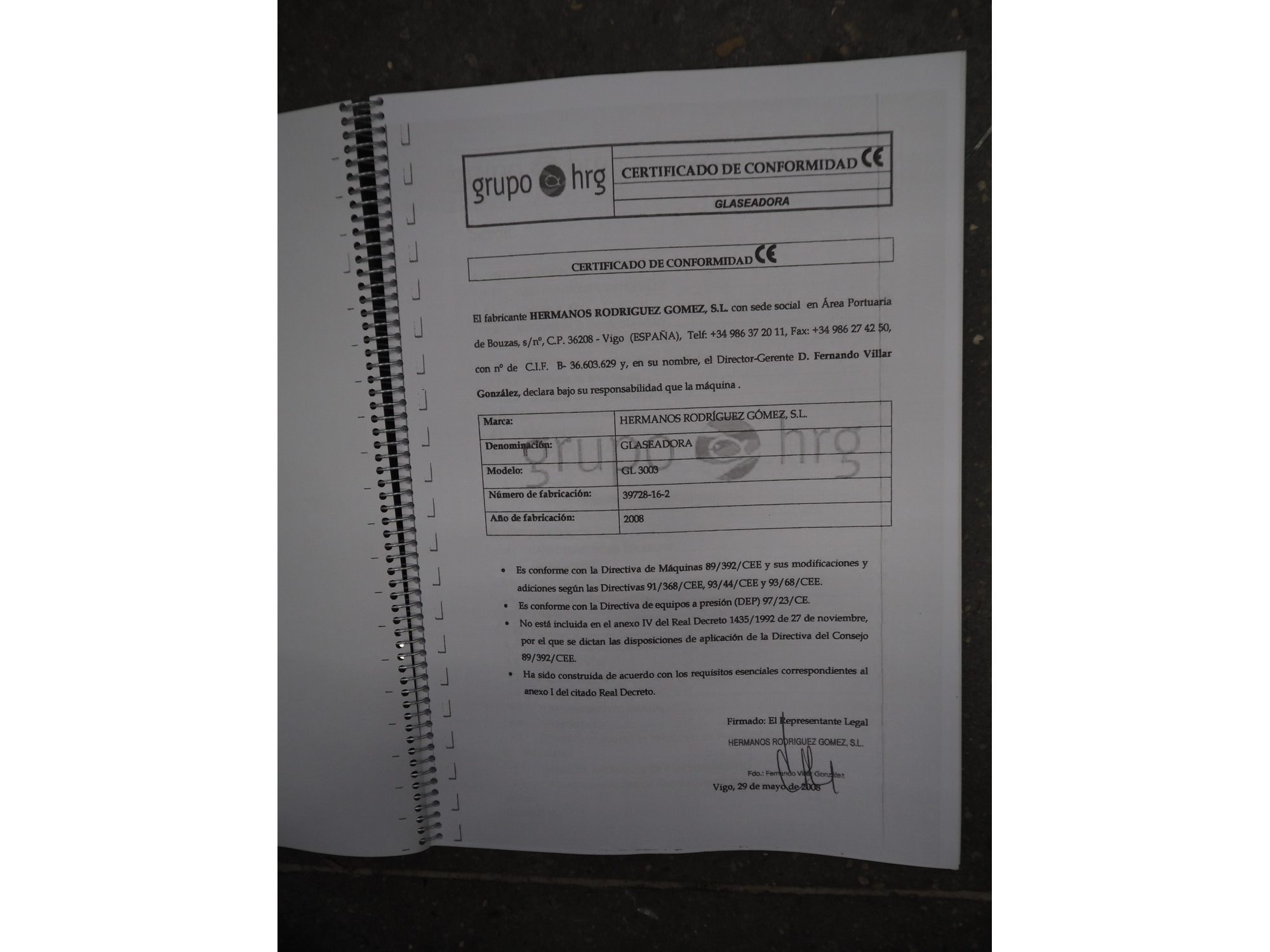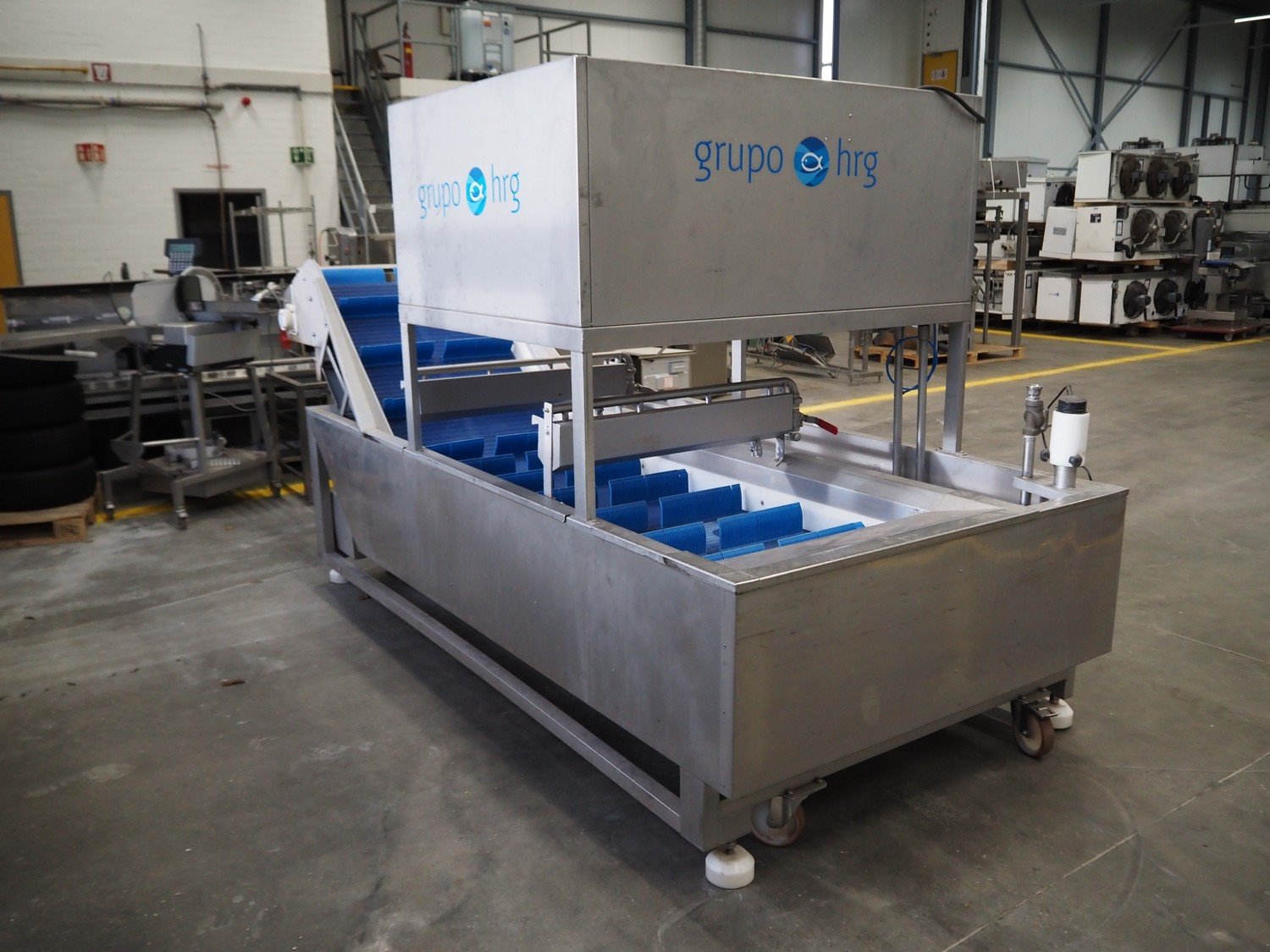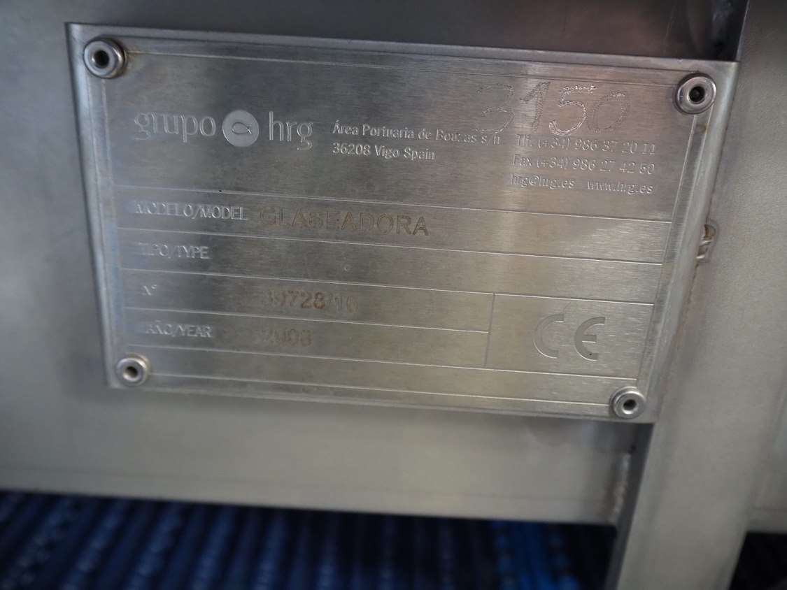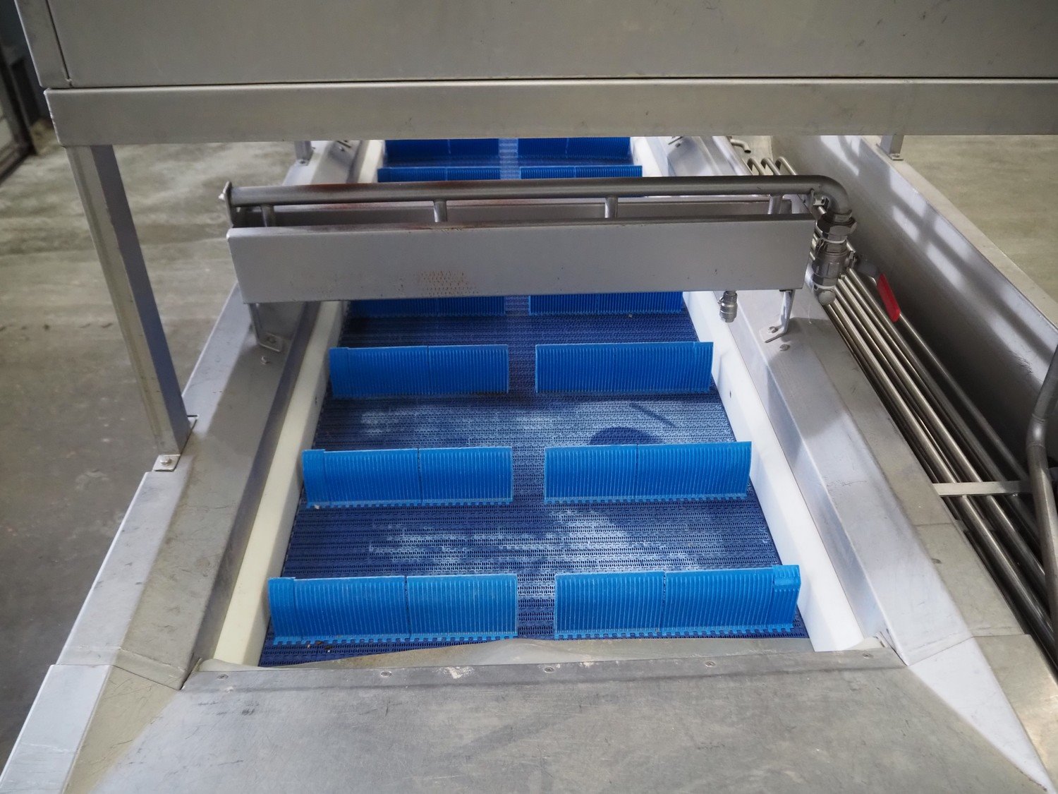 Hermanos Rodríguez Gómez S.L. glaze container, model: GL 3003, fabrication number: 39728-16-2, year of construction: 2008, plastic belt with dividers, belt width: 800 mm, divider height: 100 mm, distance between dividers: 300 mm, total dimensions: 3500 mm x 1600 mm x 2000 mm.