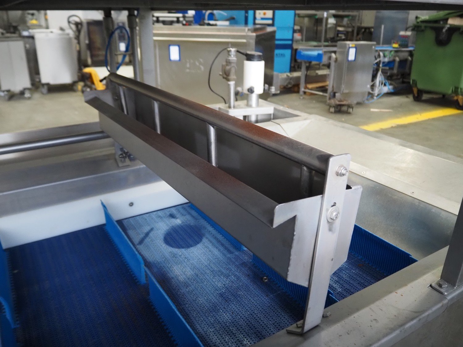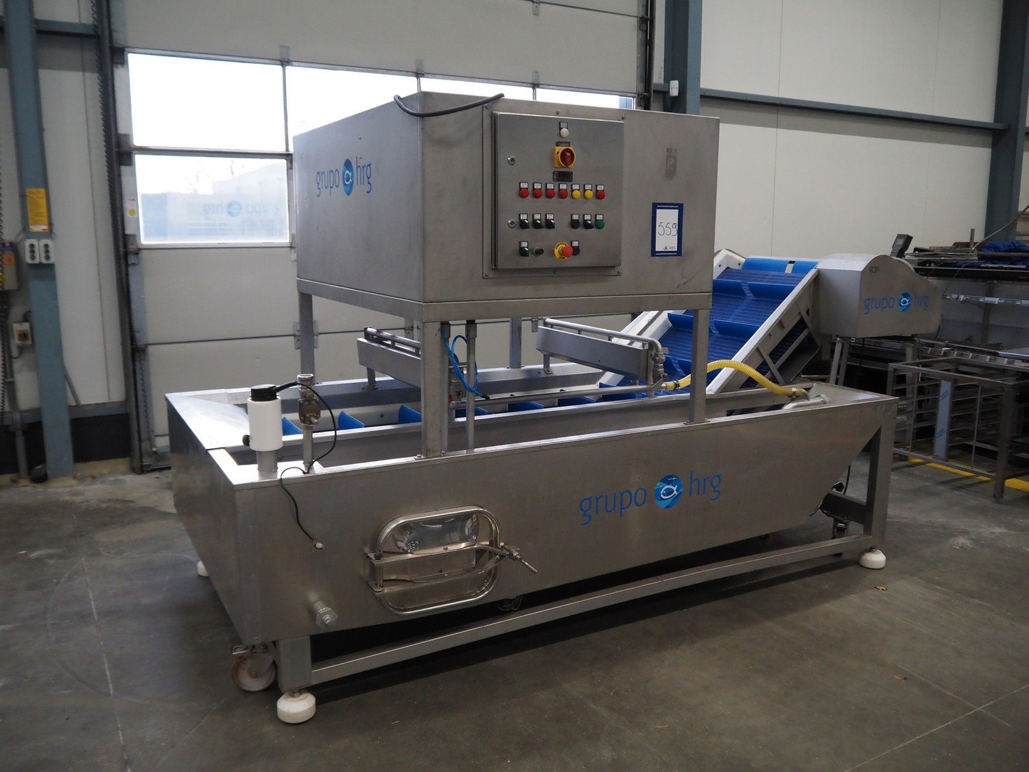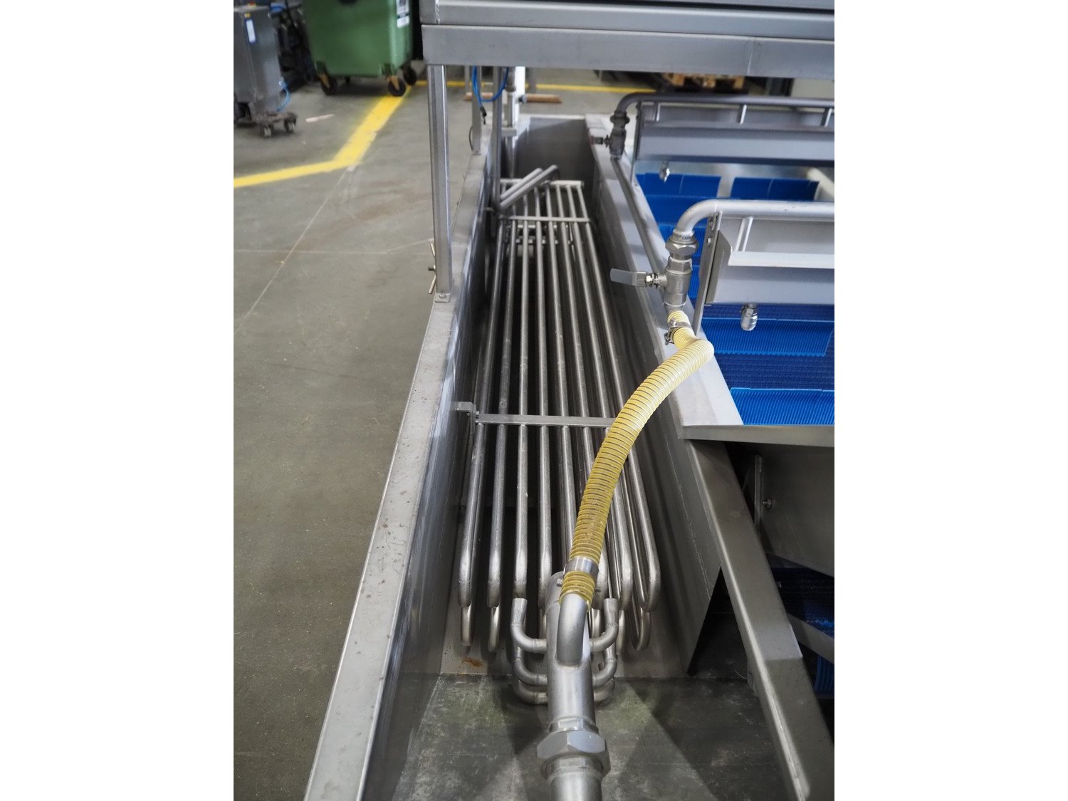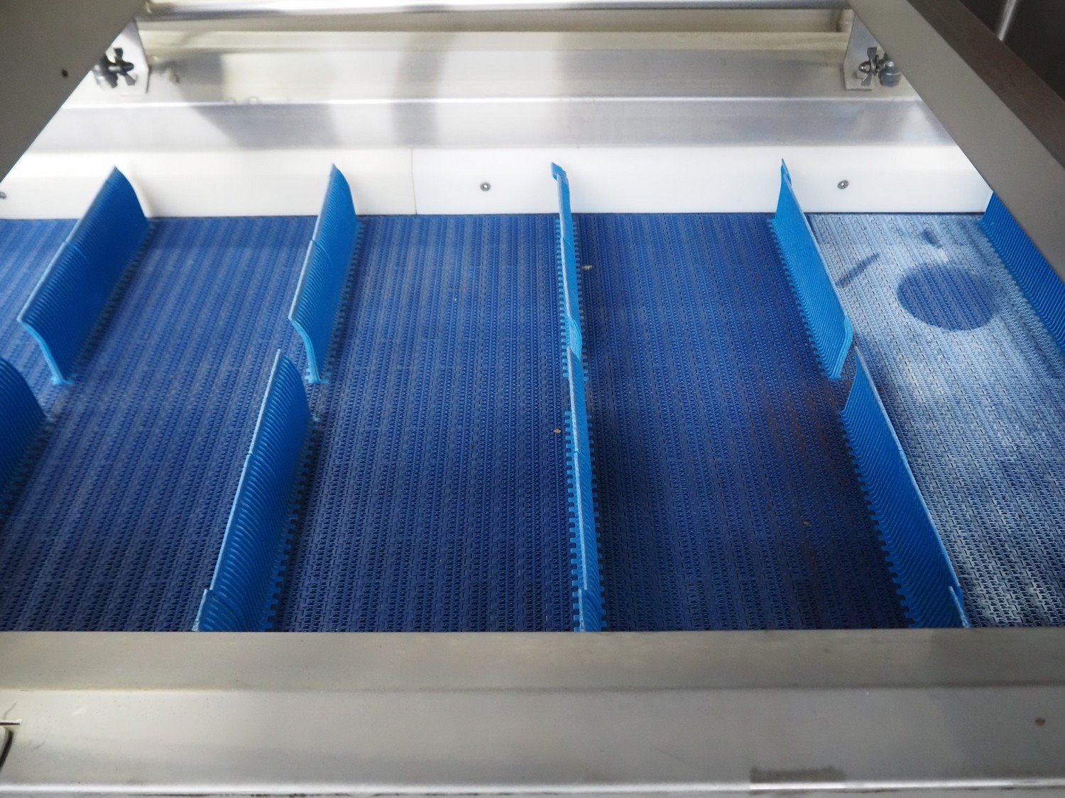Hermanos Rodríguez Gómez S.L. glaze container, model: GL 3003, fabrication number: 39728-16-2, year of construction: 2008, plastic belt with dividers, belt width: 800 mm, divider height: 100 mm, distance between dividers: 300 mm, total dimensions: 3500 mm x 1600 mm x 2000 mm.