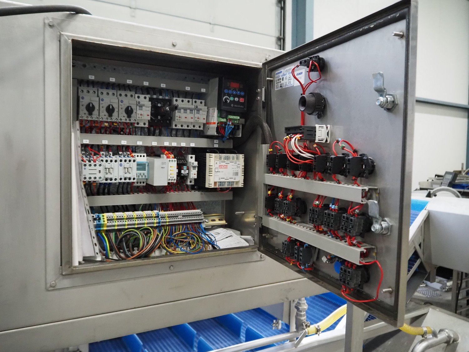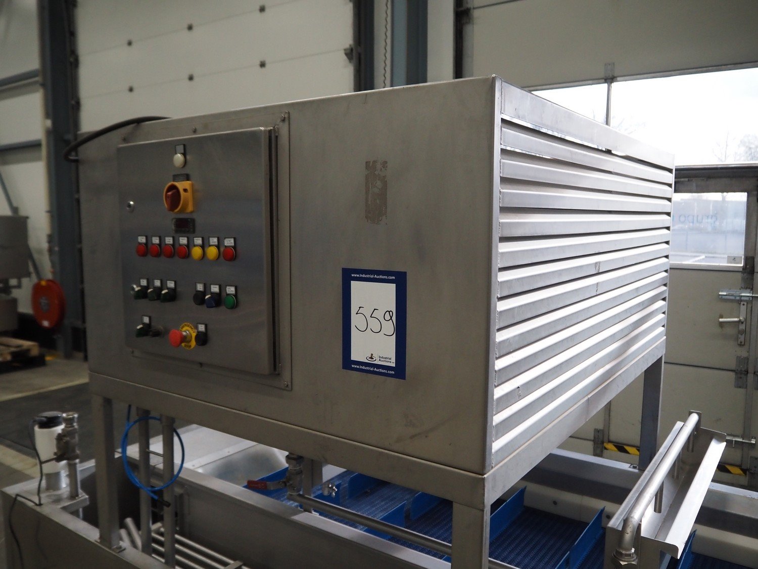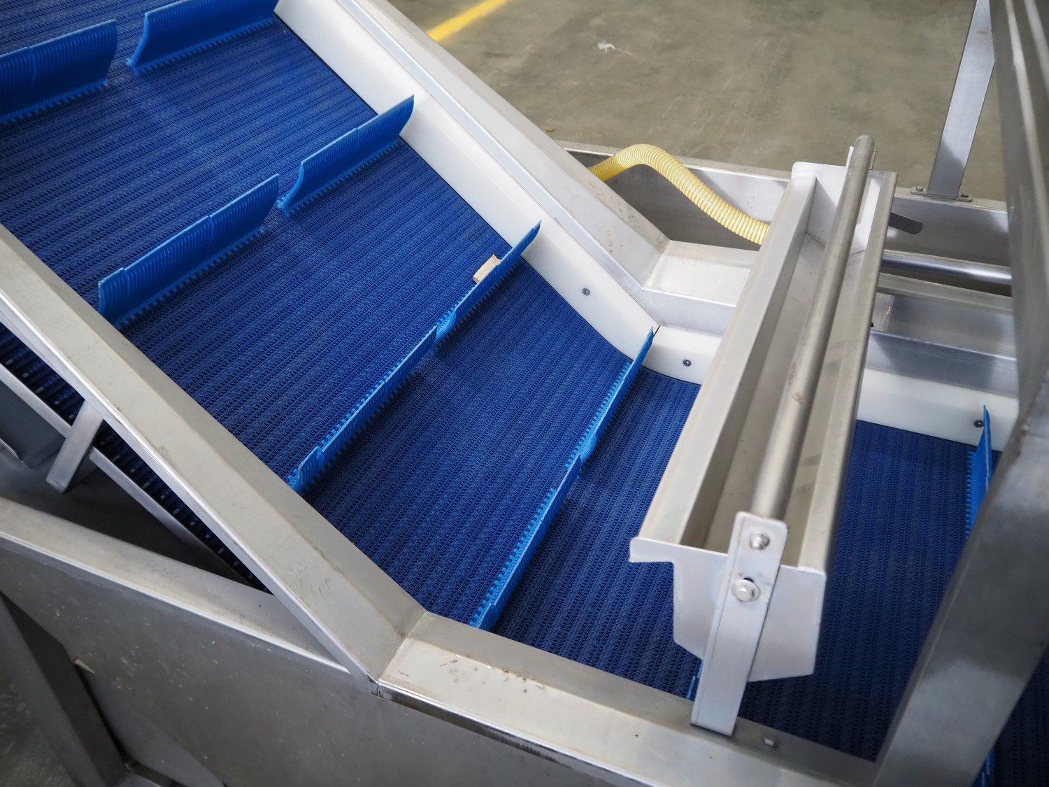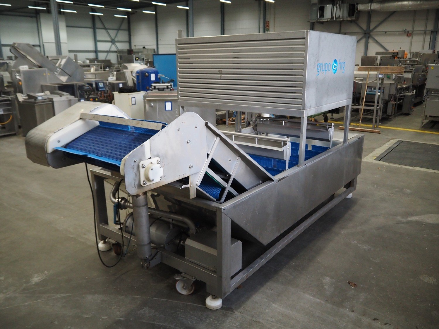 Hermanos Rodríguez Gómez S.L. glaze container, model: GL 3003, fabrication number: 39728-16-2, year of construction: 2008, plastic belt with dividers, belt width: 800 mm, divider height: 100 mm, distance between dividers: 300 mm, total dimensions: 3500 mm x 1600 mm x 2000 mm.