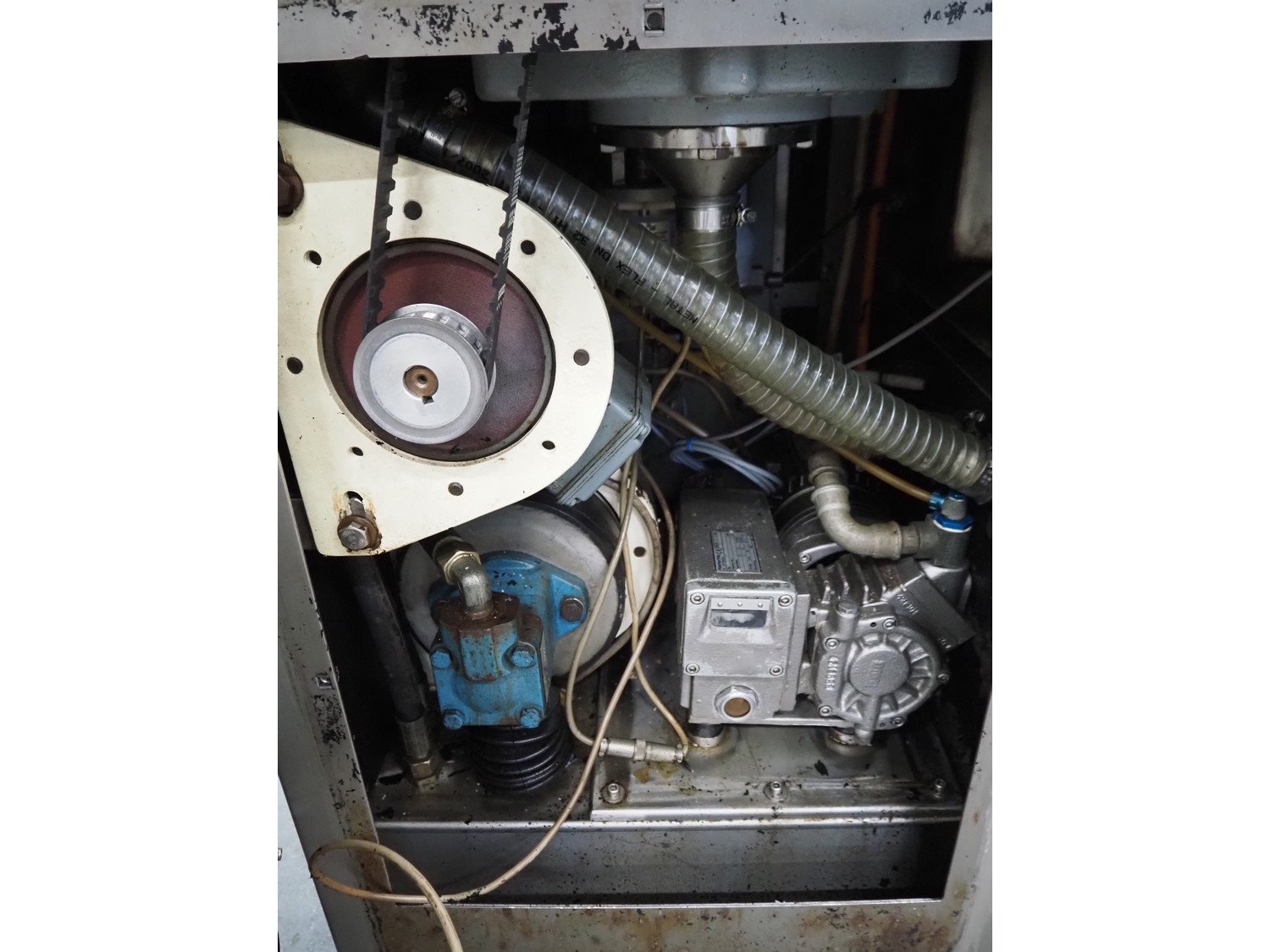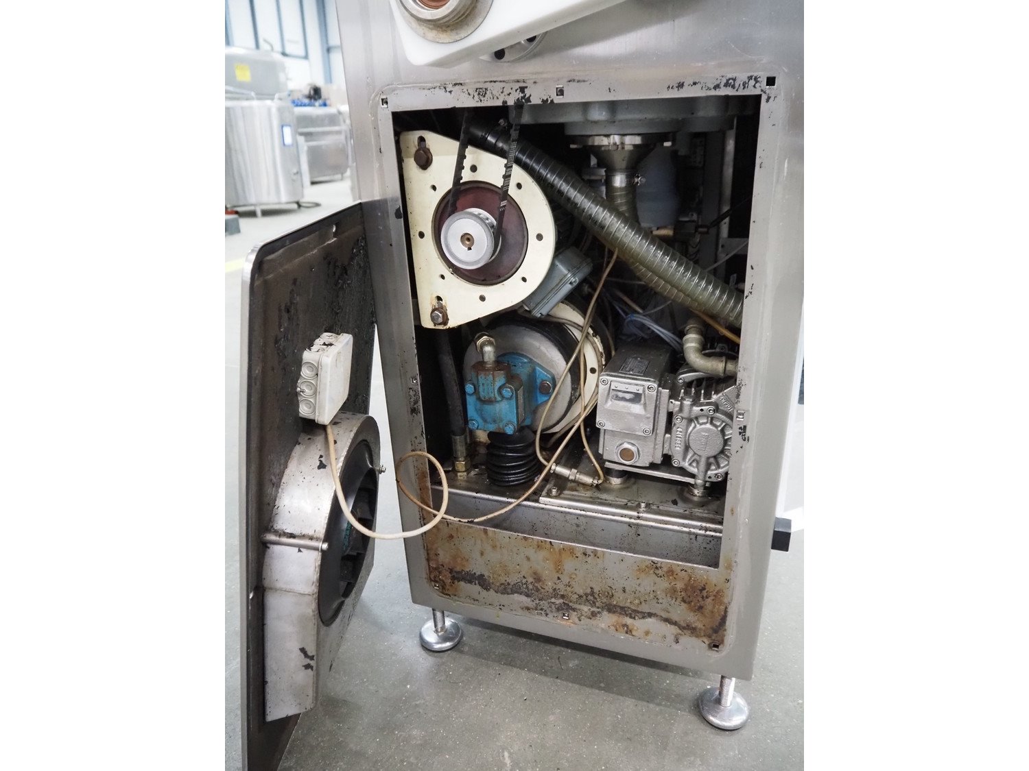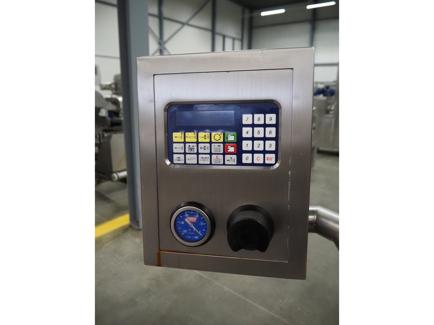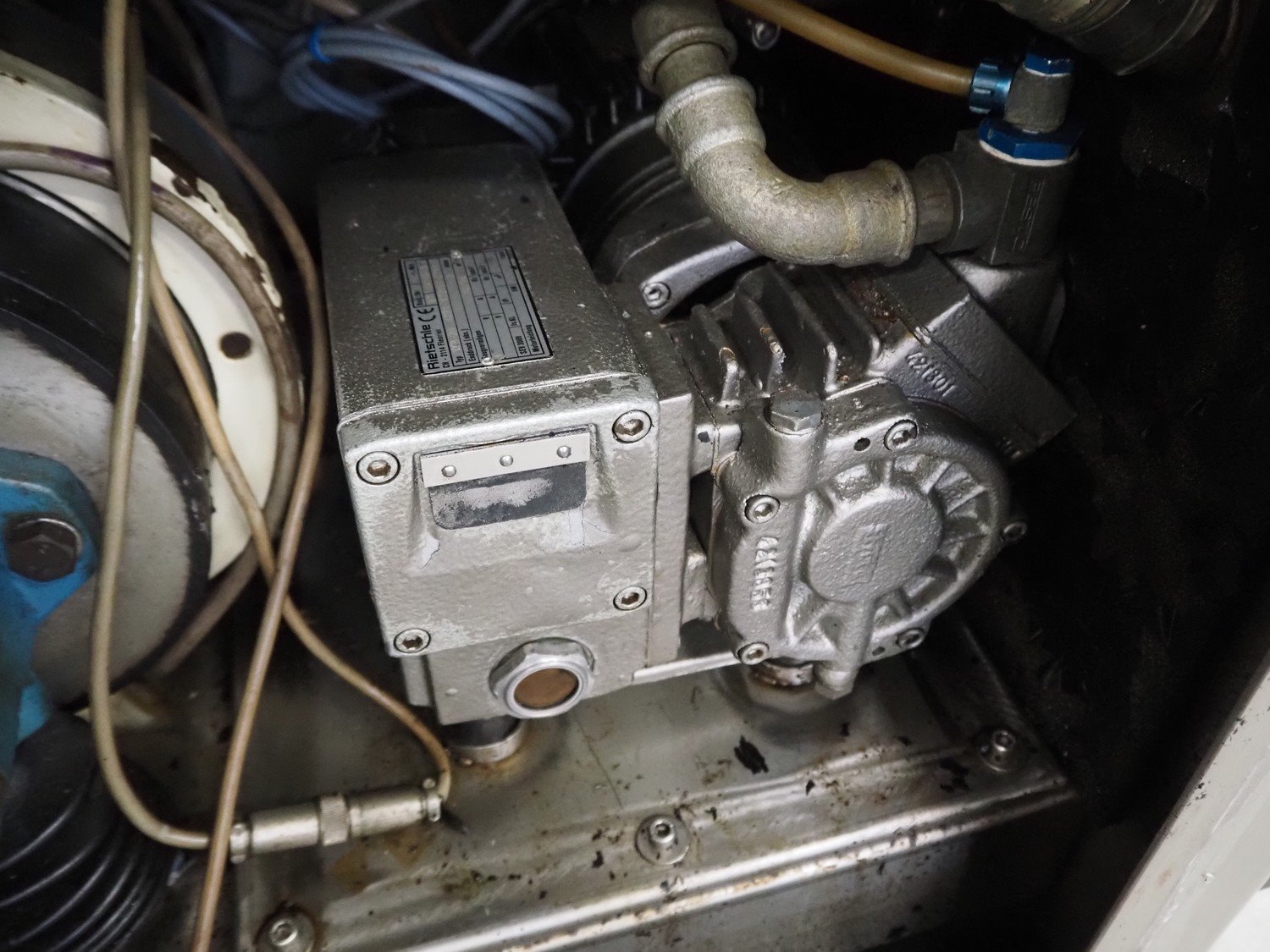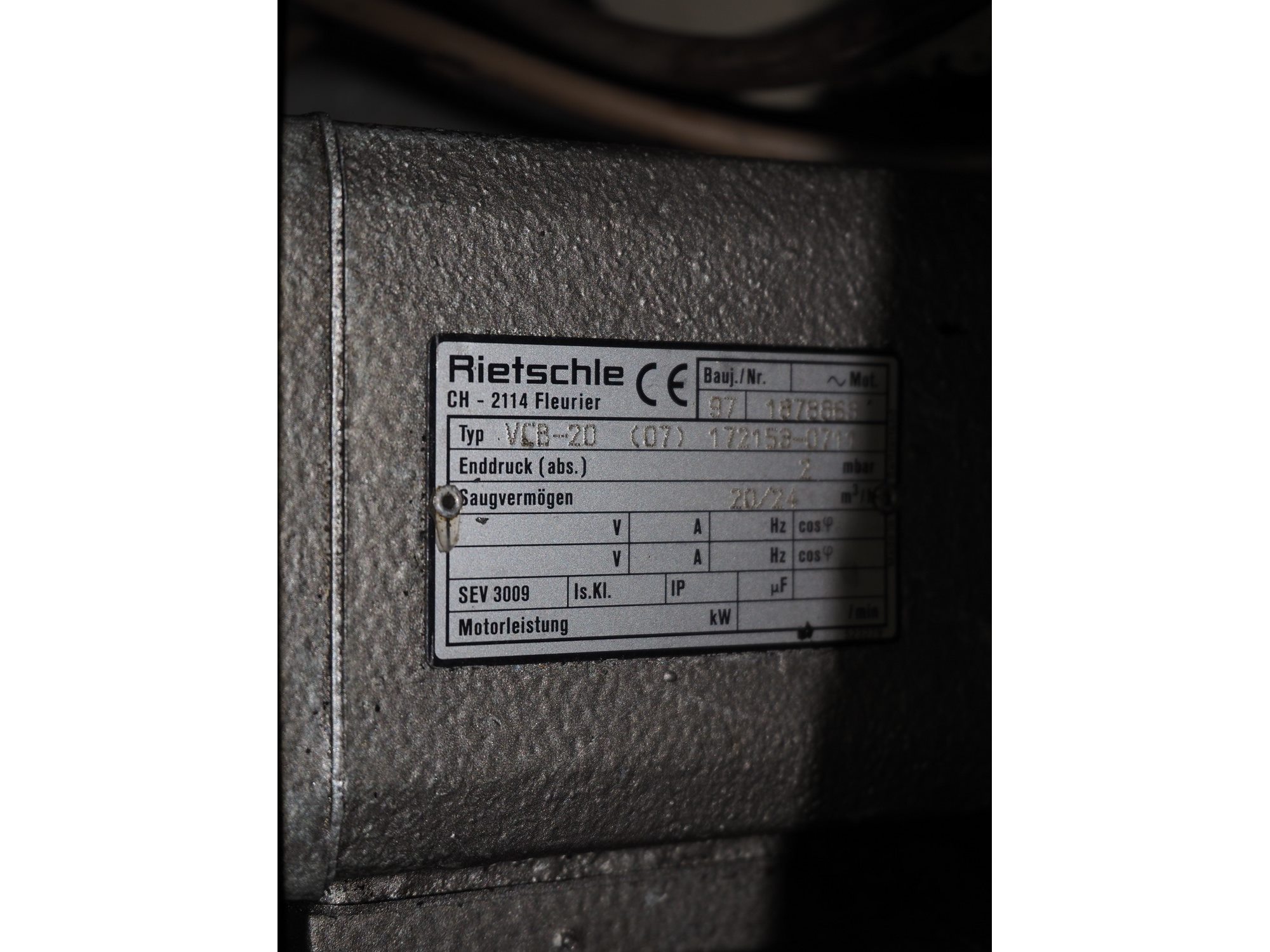 Alexanderwerk vacuum filling machine with linking attachment, type: NFV 50, machine number: 04708664, 230/400 V, 50 Hz, 6.9 A, 3 kW, Rietschle vacuum pump, type: VCB-20, capacity: 20/24 m³ per hour, dimensions: 750 mm x 600 mm x 1600 mm.