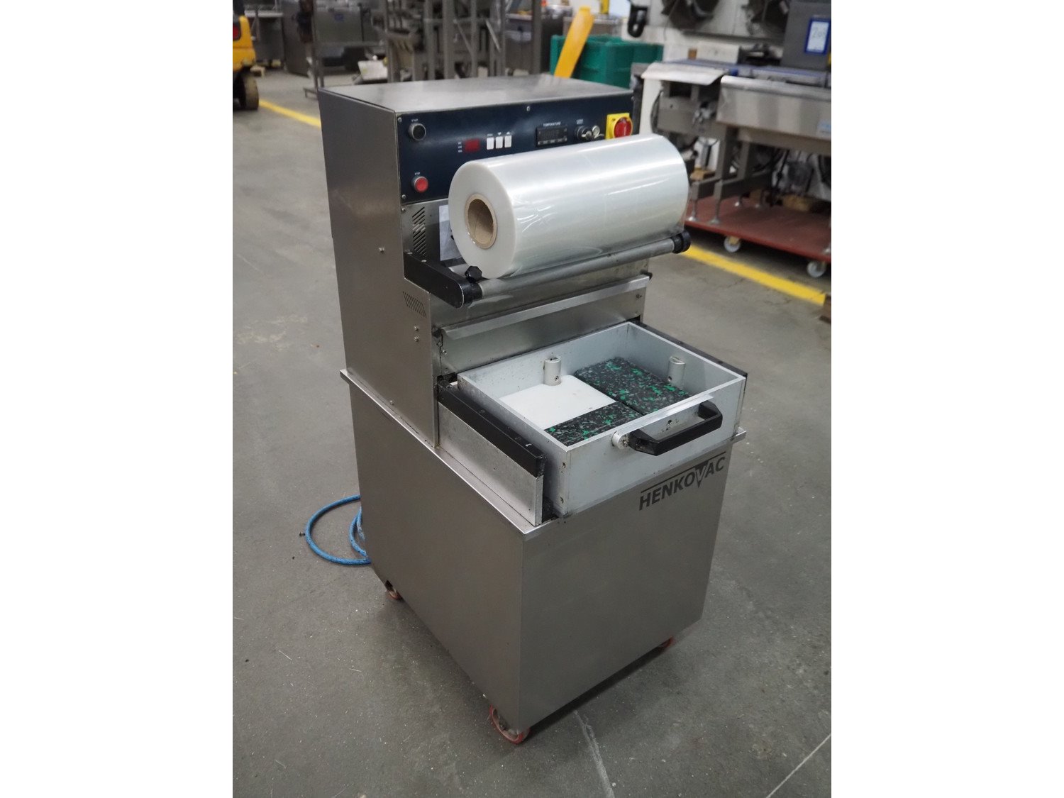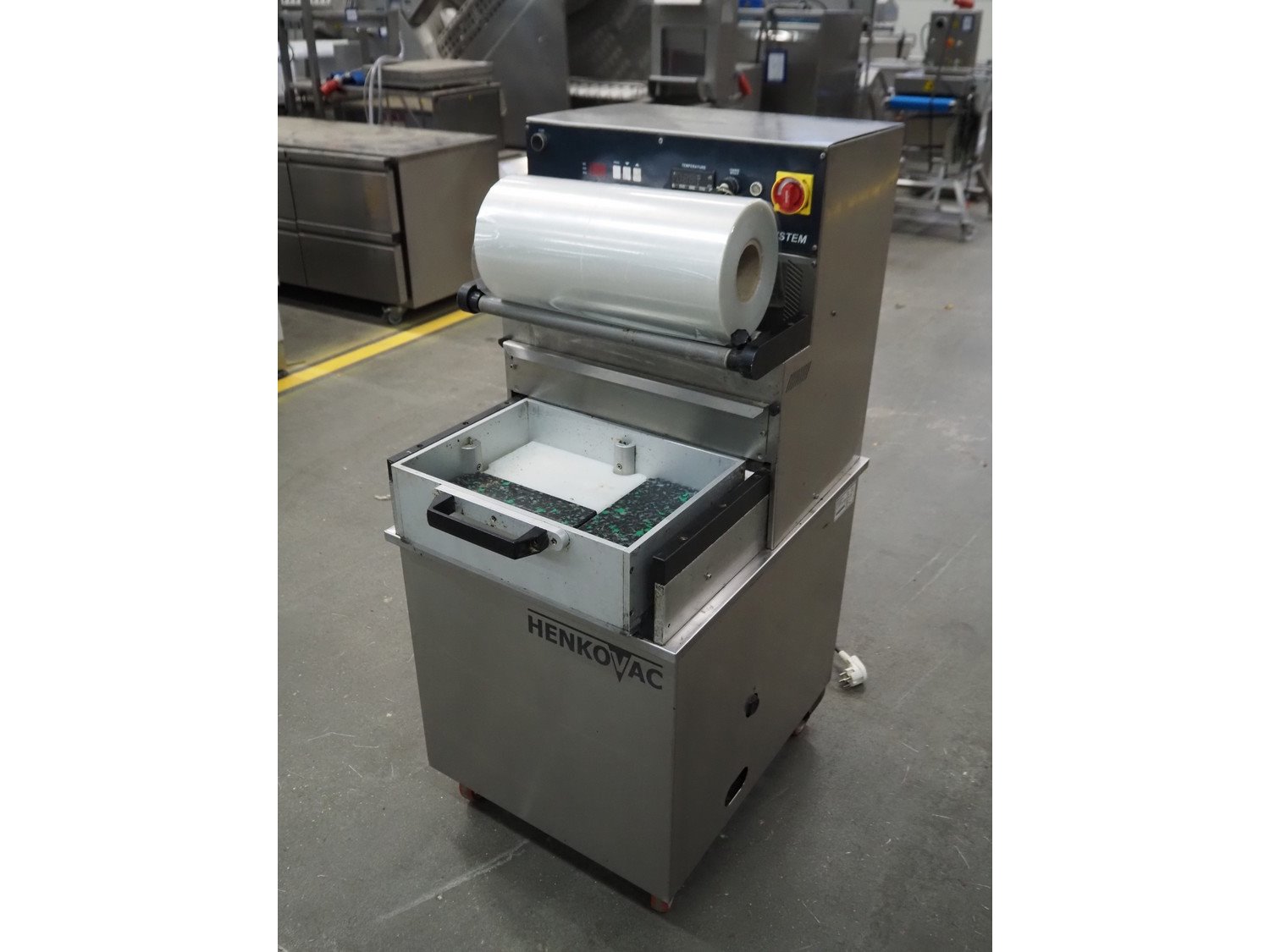 HFE vacuum systems bv mobile traysealer, type: TPS COMPACT XL, serial number: 10111, year of construction: 2010, 400 V, 3 Ph, 50 Hz, 5 A, weight: 150 kg, film width: 420 mm, dye: 440 mm x 330 mm, total dimensions: 800 mm x 600 mm x 1300 mm.