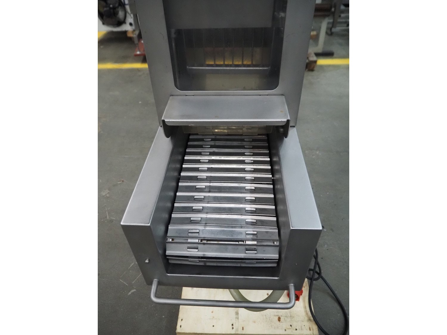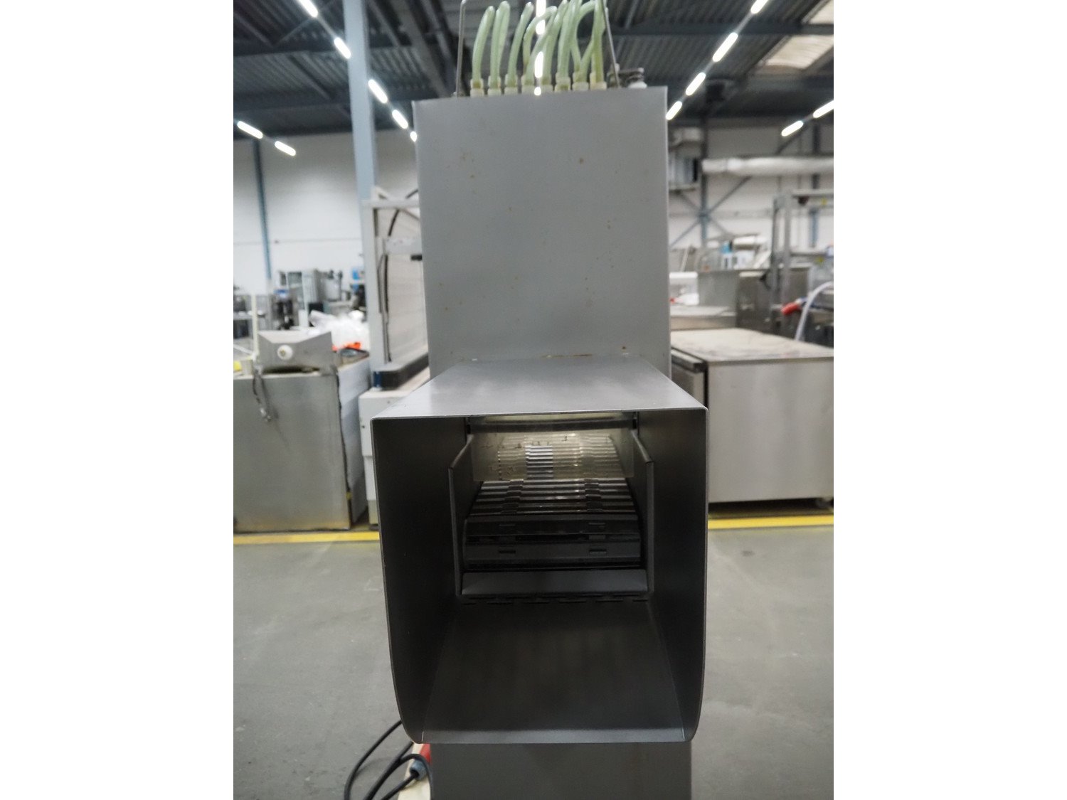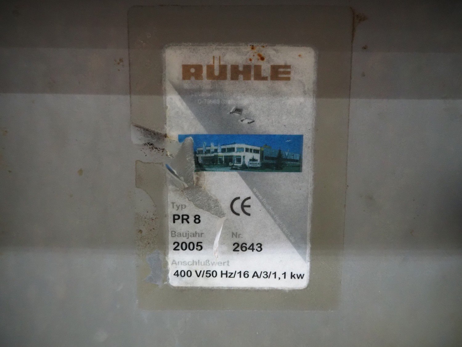 Rühle injector, type: PR 8, number: 2643, year of construction: 2005, 400 V, 3 Ph, 50 Hz, 16 A. 1.1 kW, s/s belt, belt width: 270 mm, working width: 250 mm, total dimensions: 1200 mm x 400 mm x 1600 mm.