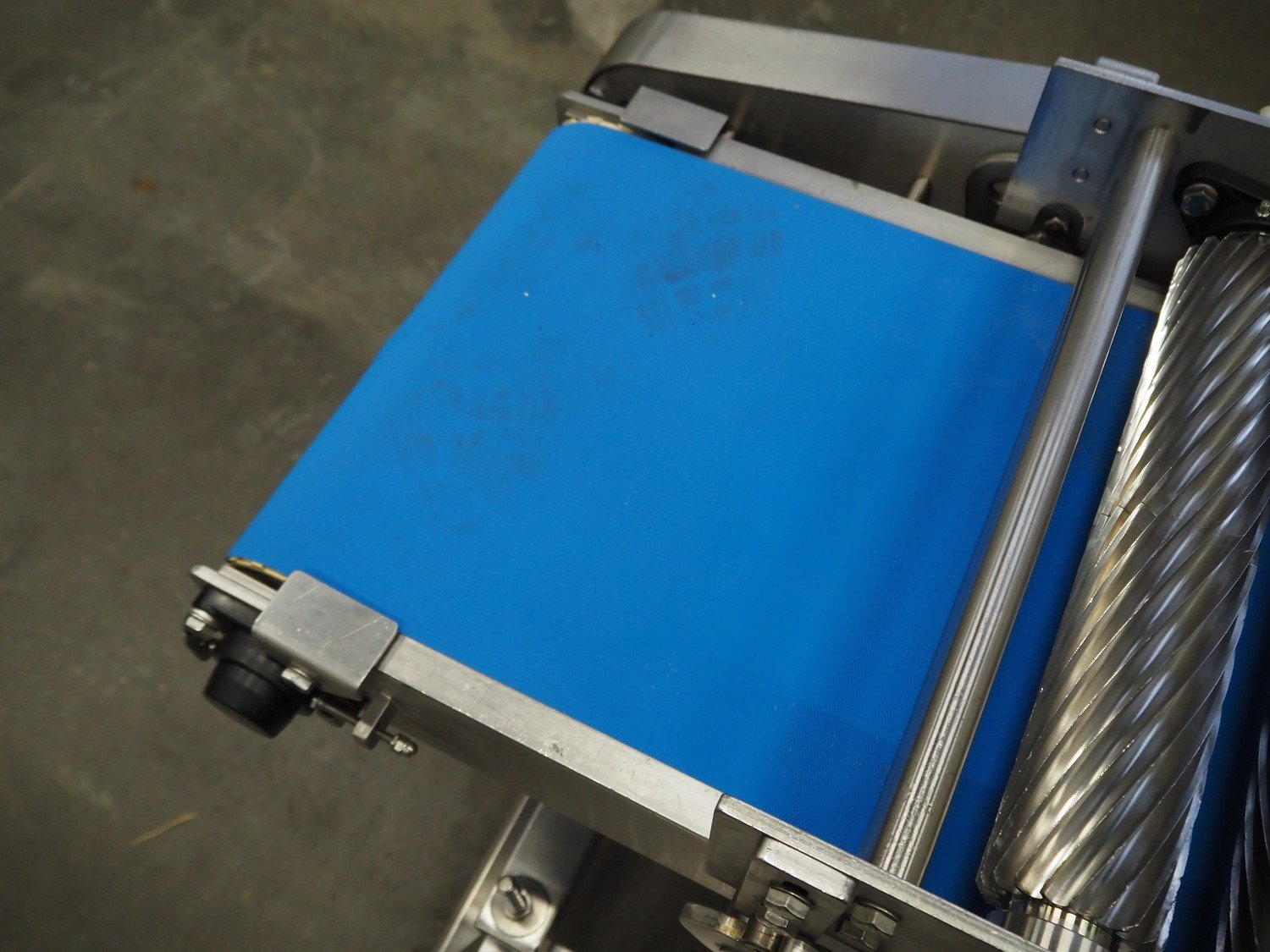Mobile skinning machine, plastic belt, belt width: 400 mm, working width: 380 mm, total dimensions: 1000 mm x 700 mm x 1050 mm.