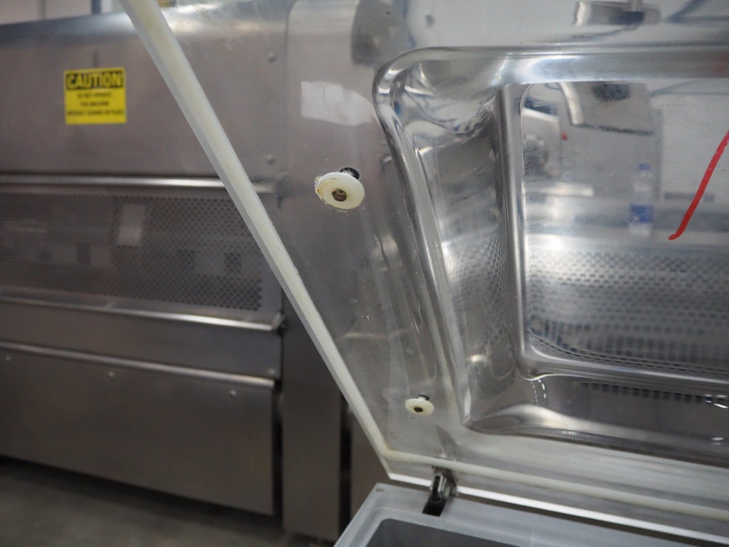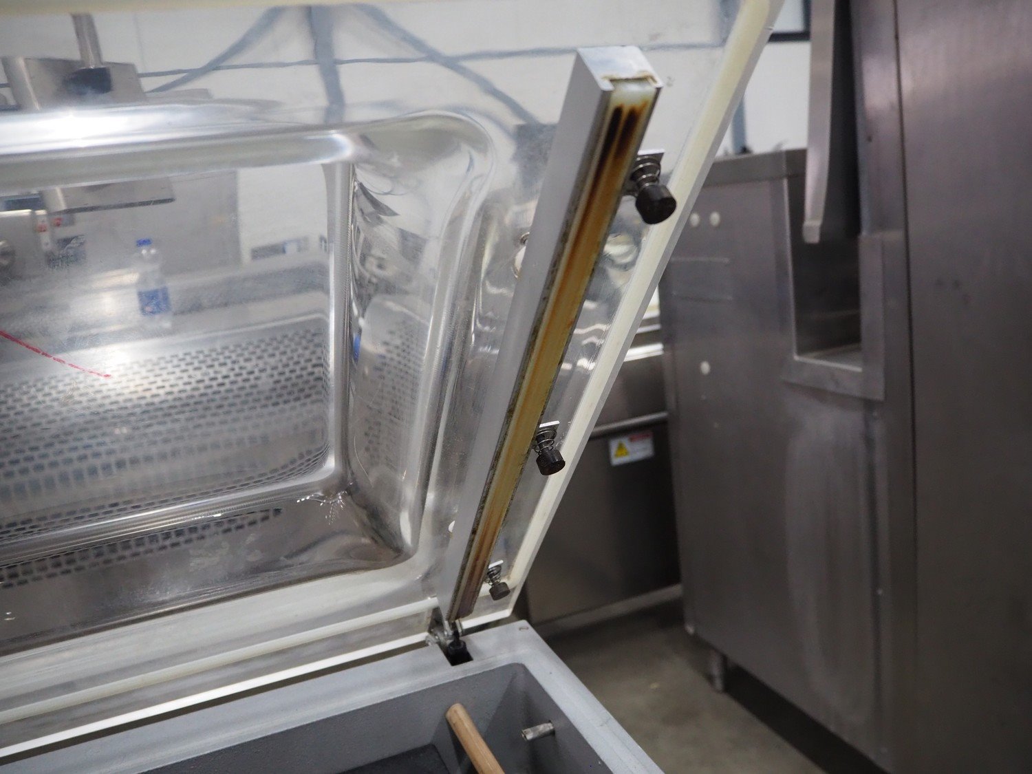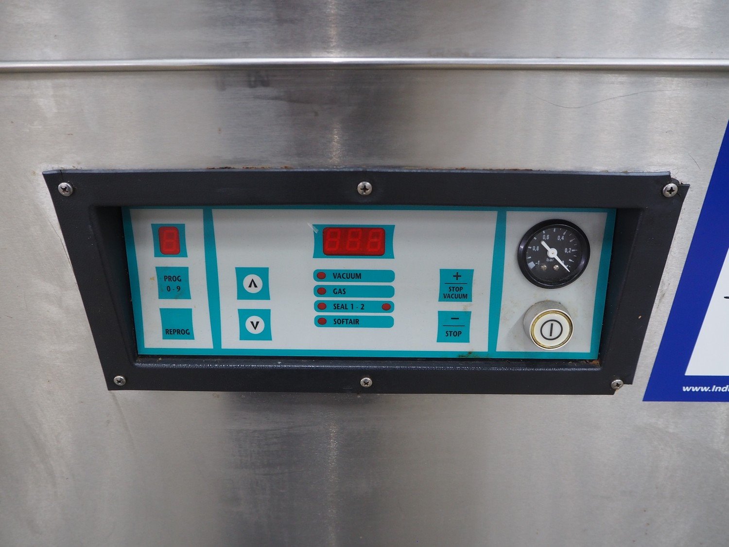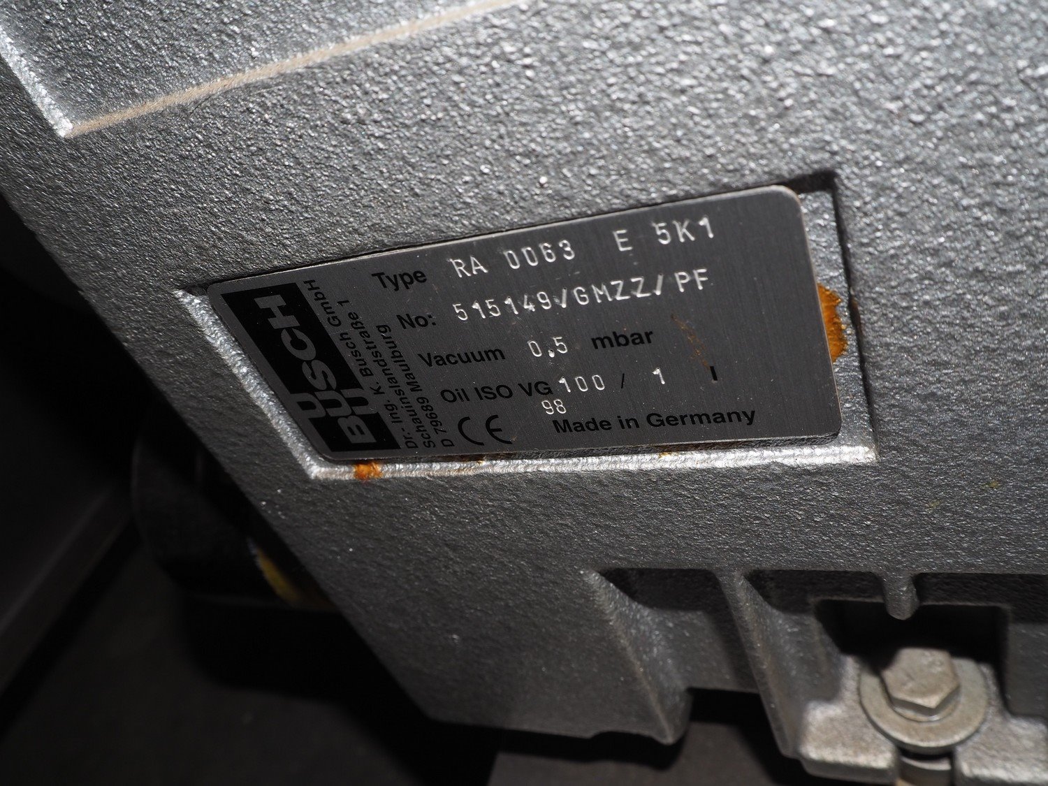 Henkelman mobile vacuum machine, type: 300 II A, number: 30809682, year of construction: 1998, 400 V, 3 Ph, 50 Hz, 6 A, 2 kW, seal length: (2x) 500 mm, dimensions chamber: 520 mm x 500 mm x 700 mm, Busch vacuum pump, type: RA 0063 E 5K1, capacity: 63 m³ per hour, total dimensions: 700 mm x 680 mm x 1070 mm.