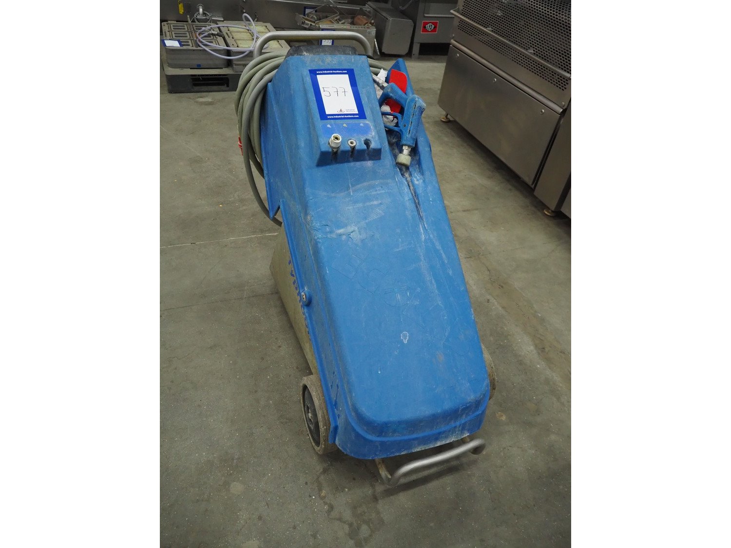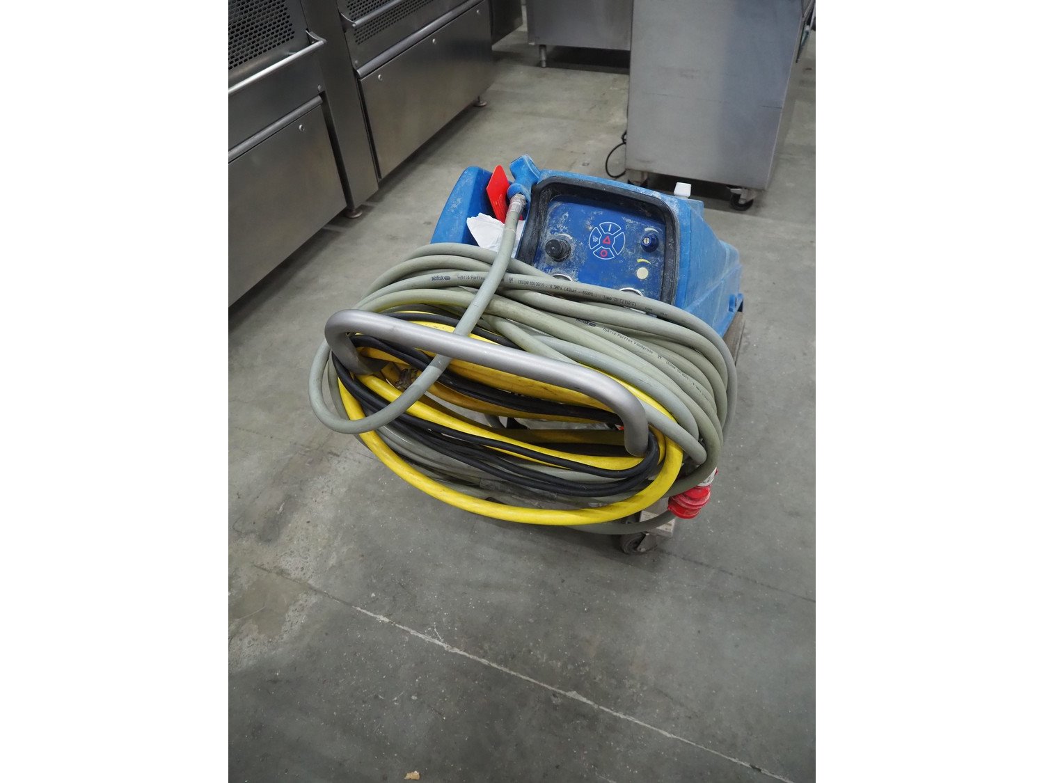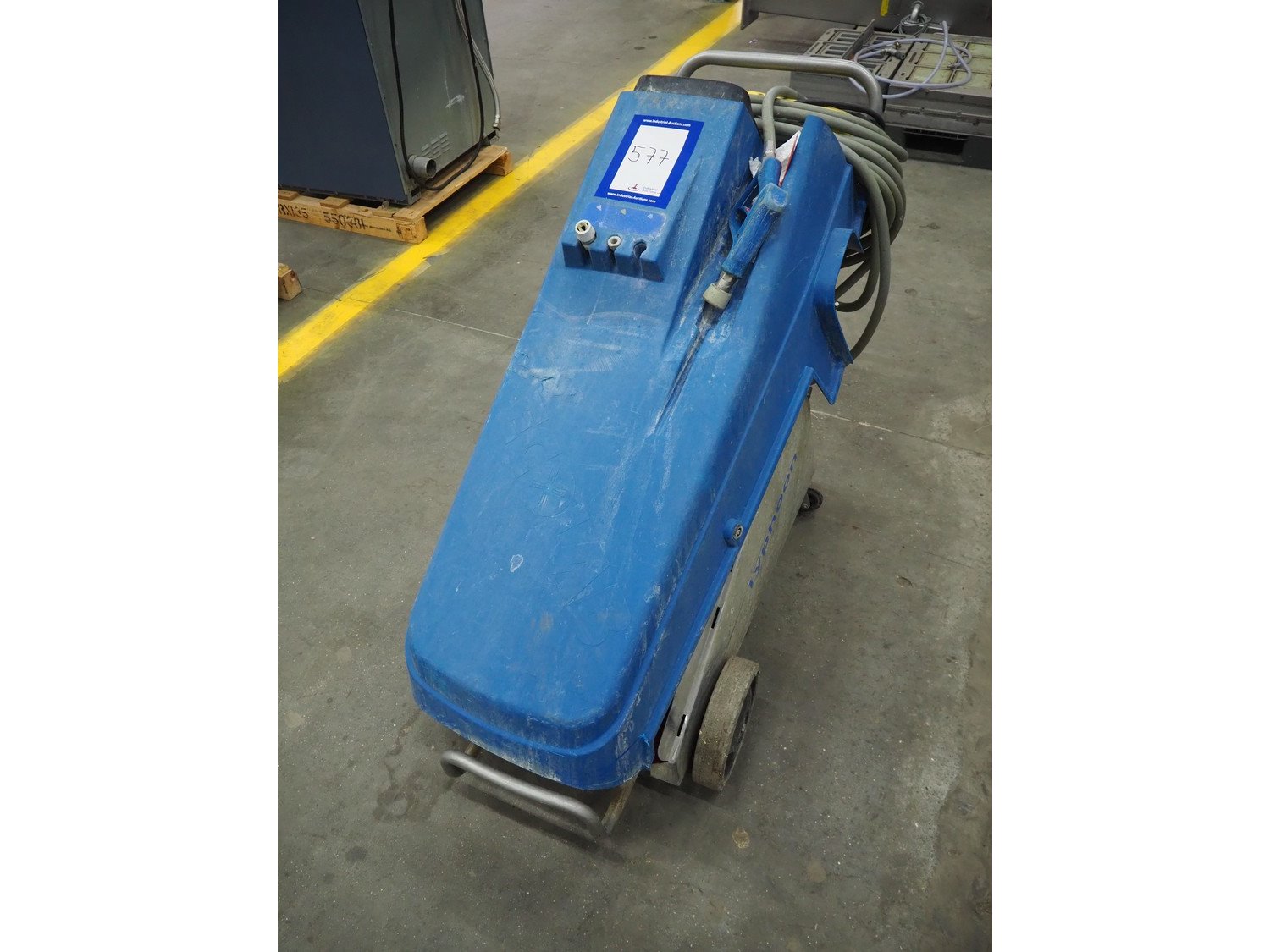 Nilfisk mobile high pressure cleaner, model: Typhoon 50HZ, serial number: 94665, year of construction: 20.09.2013, 380 V, 50 Hz, 4.75 A, weight: 126 kg, max temperature: 70 ⁰C, maximum water supply: 50 litres per minute, dimensions: 1450 mm x 600 mm x 1020 mm.