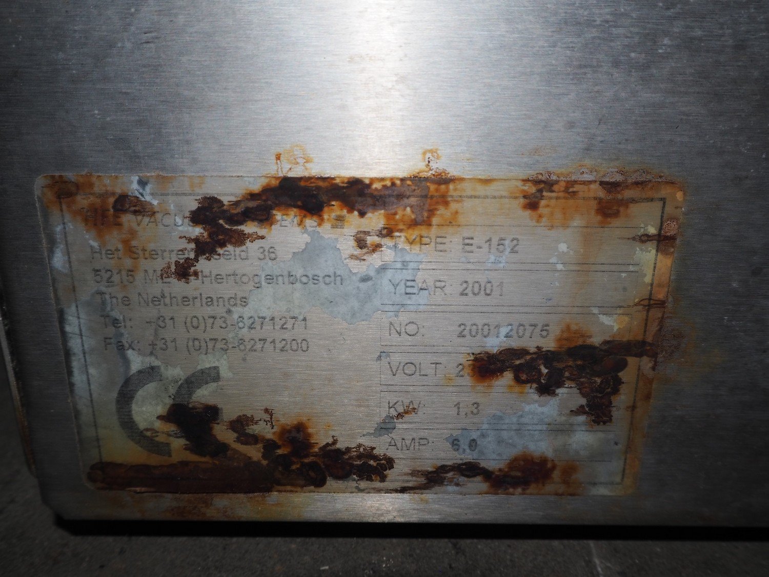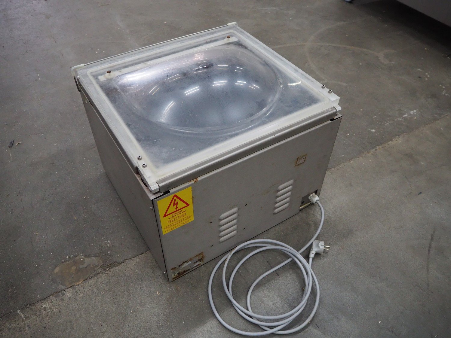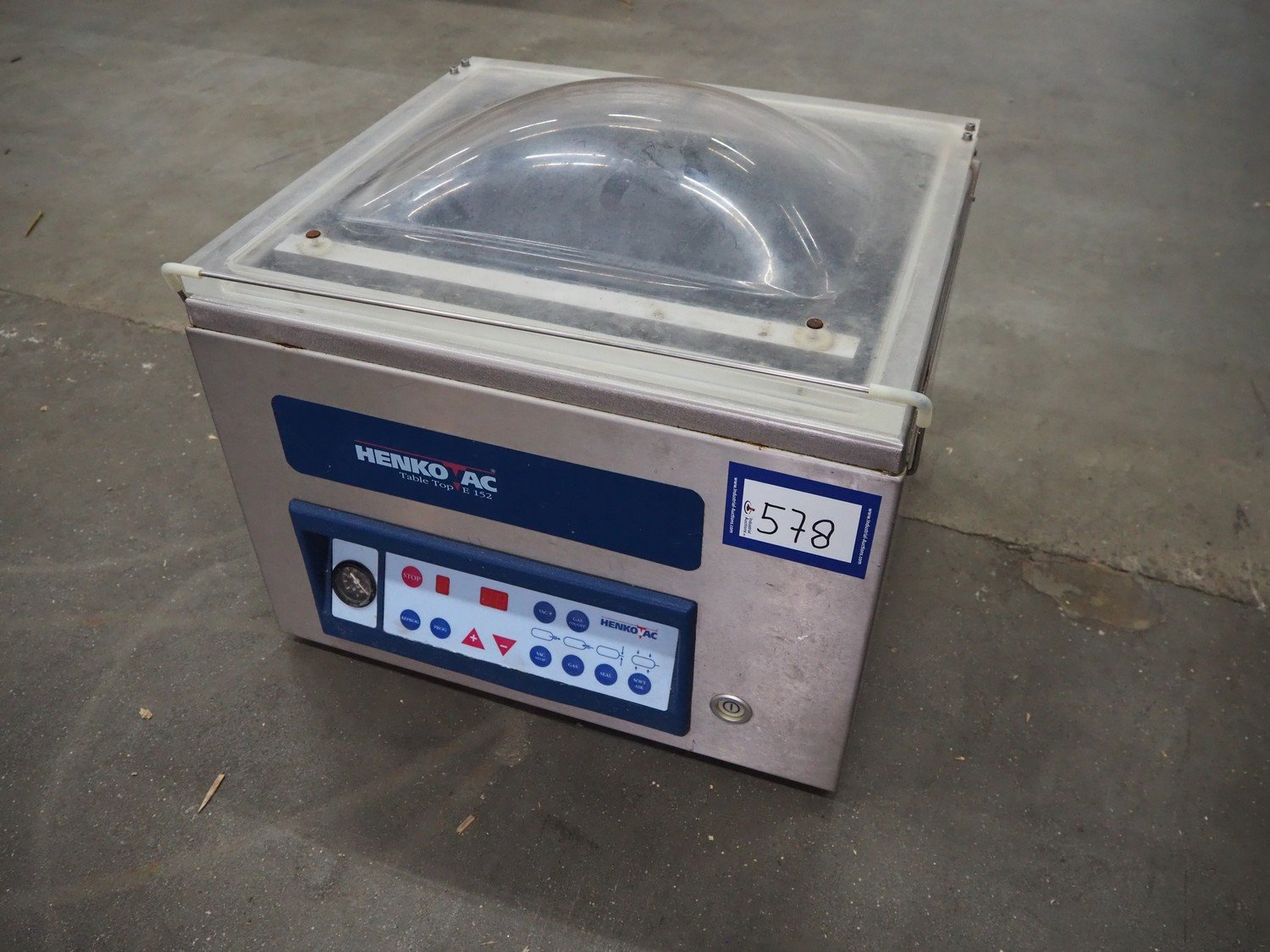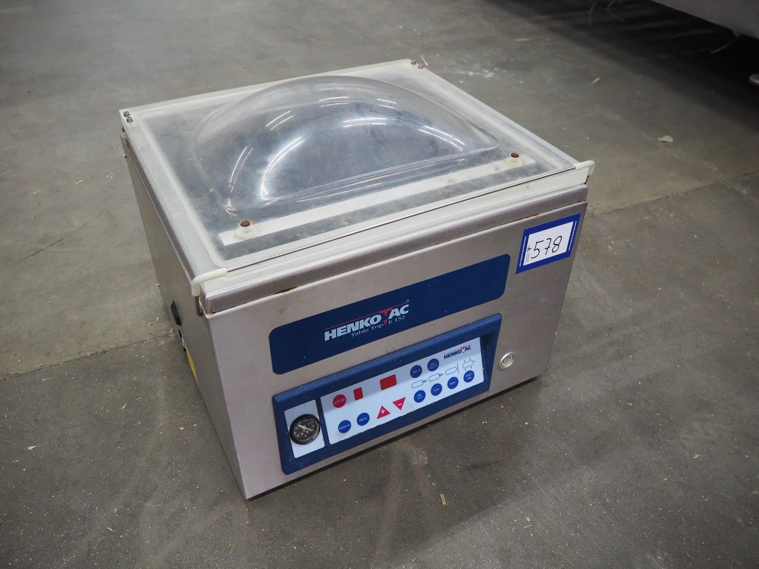 Henkovac vacuum machine, type: E-152, number: 20012075, year of construction: 2001, 230 V, 6 A, 1.3 kW, seal length: 440 mm, dimensions chamber: 450 mm x 370 mm x 70 mm, total dimensions: 450 mm x 500 mm x 550 mm.
