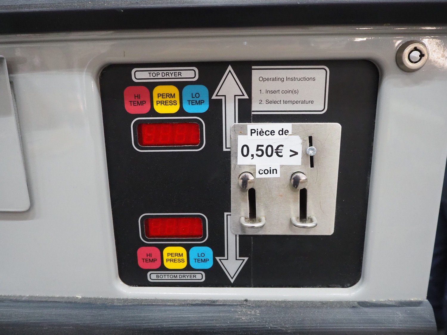 Double stacked dryer, inside dimensions: (2x) Ø 690 mm x 760 mm, total dimensions: 1200 mm x 760 mm x 2200 mm.