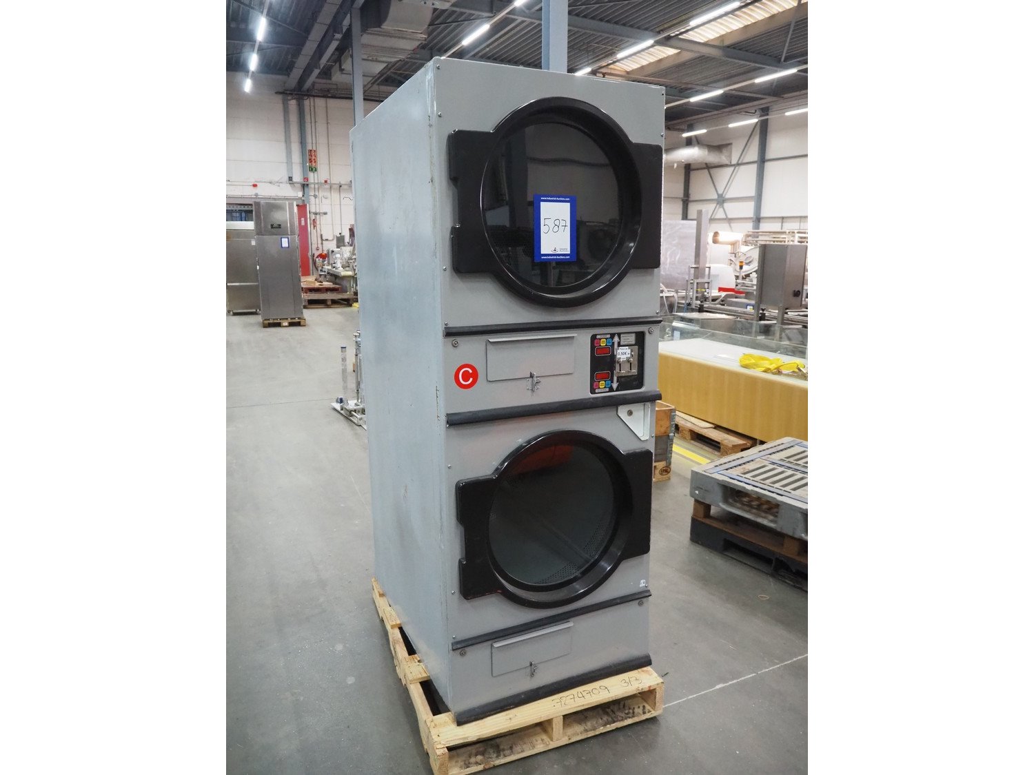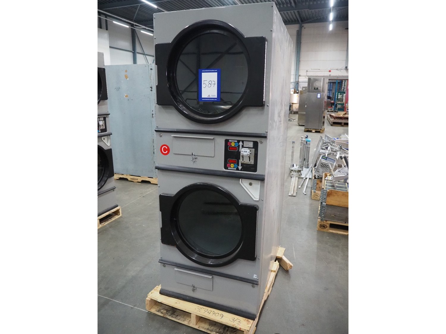 Double stacked dryer, inside dimensions: (2x) Ø 690 mm x 760 mm, total dimensions: 1200 mm x 760 mm x 2200 mm.