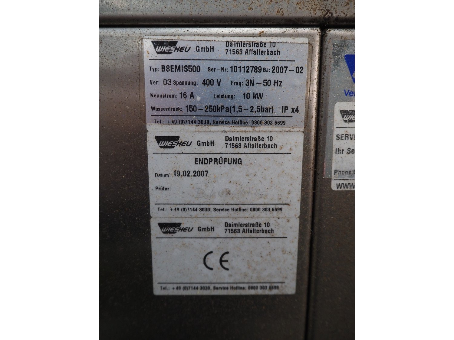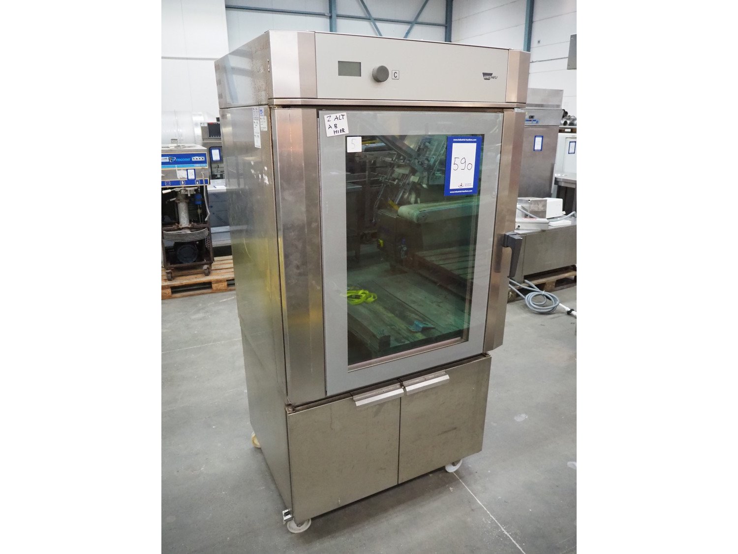 Wiesheu GmbH oven on s/s trolley, type: B8EMIS500, serial number: 10112789, year of construction: 02/2007, 400 V, 3 Ph, 50 Hz, 16 A, 10 kW, 10 floors oven, dimensions each floor: 610 mm x 370 mm, 6 floors trolley, dimensions each floor: 690 mm x 400 mm, total dimensions: 940 mm x 880 mm x 1860 mm.