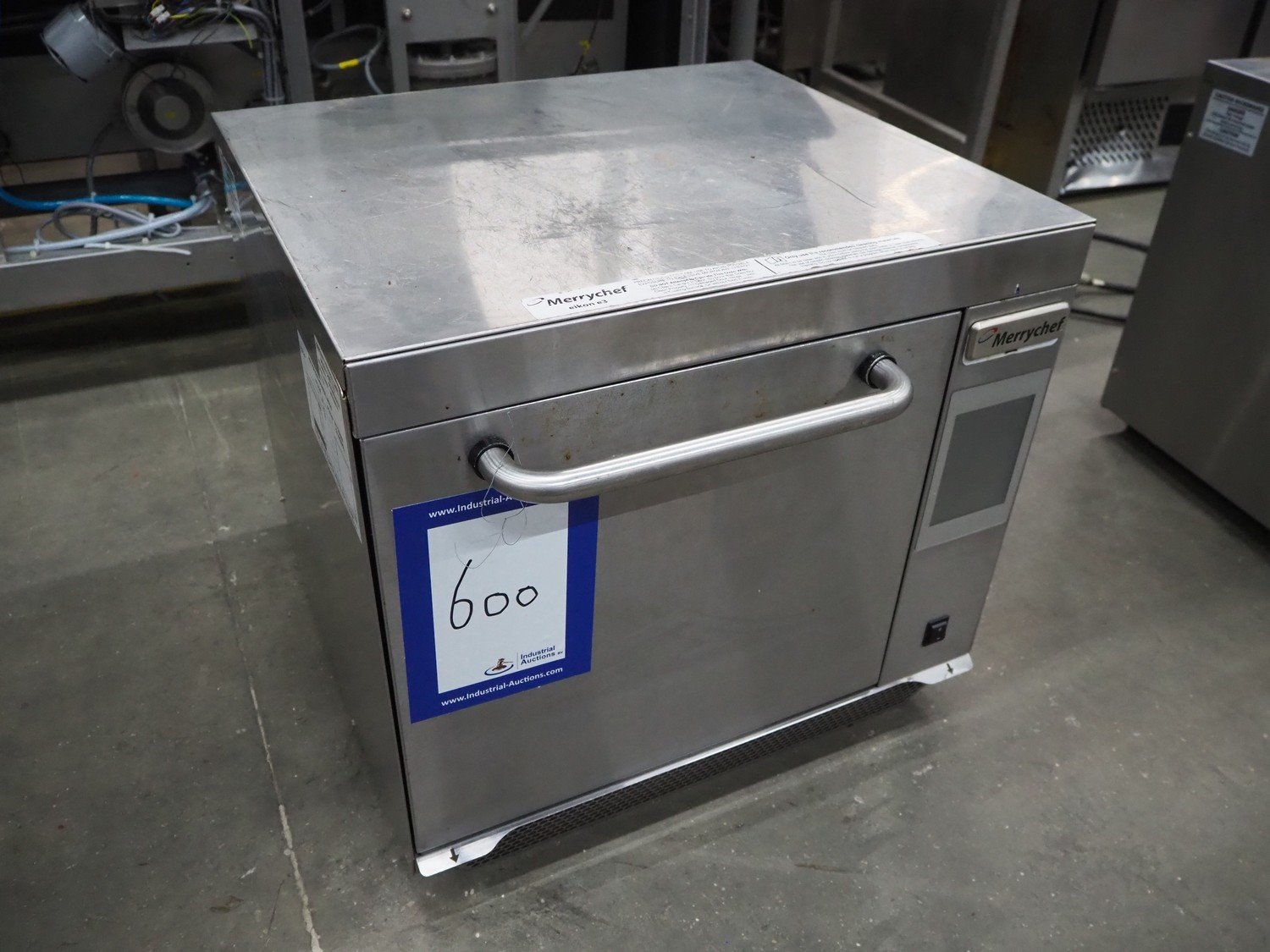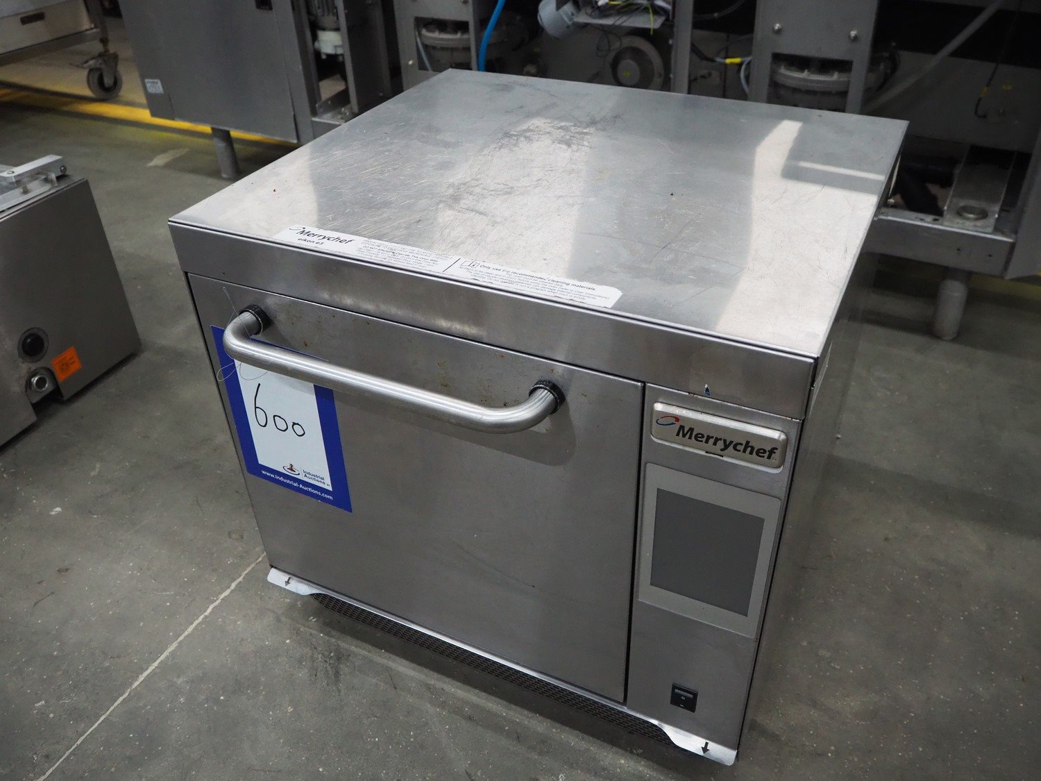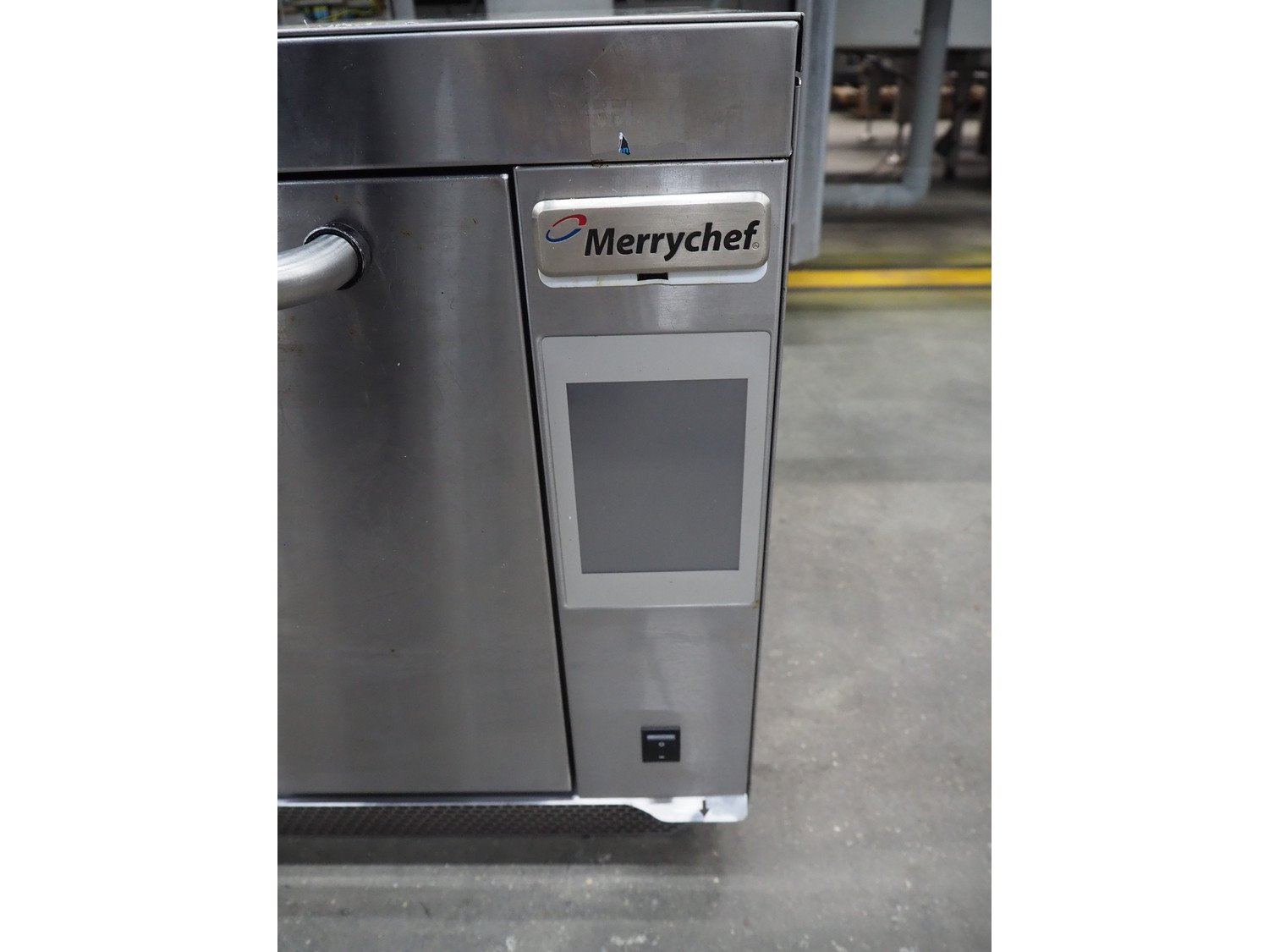 Merrychef turbo oven, model: eikon e3, serial number: 1806213090740, 400 V, 2 Ph, 50 Hz, 2 floors, dimensions each floor: 330 mm x 300 mm, total dimensions: 630 mm x 590 mm x 550 mm.