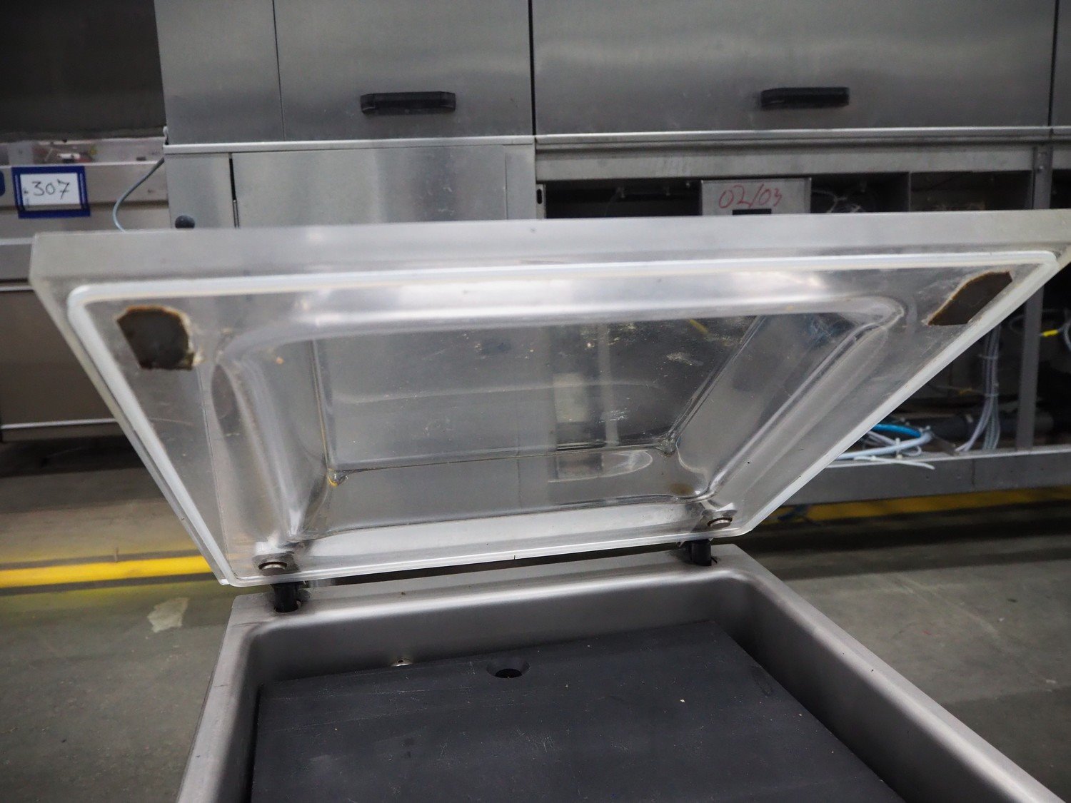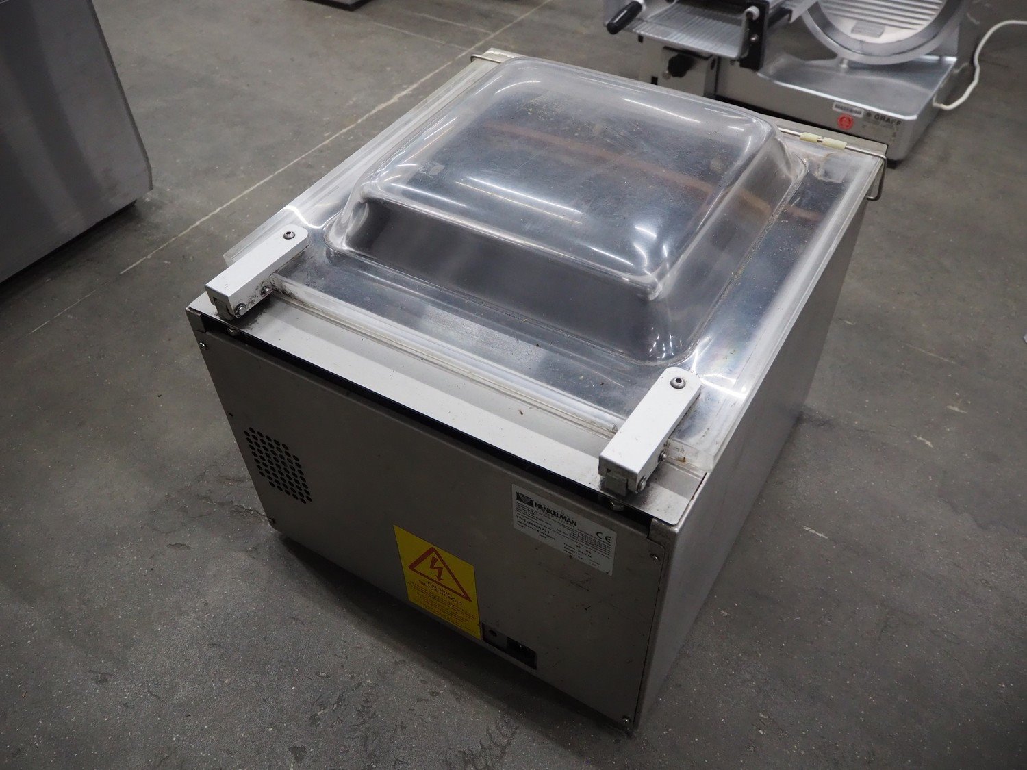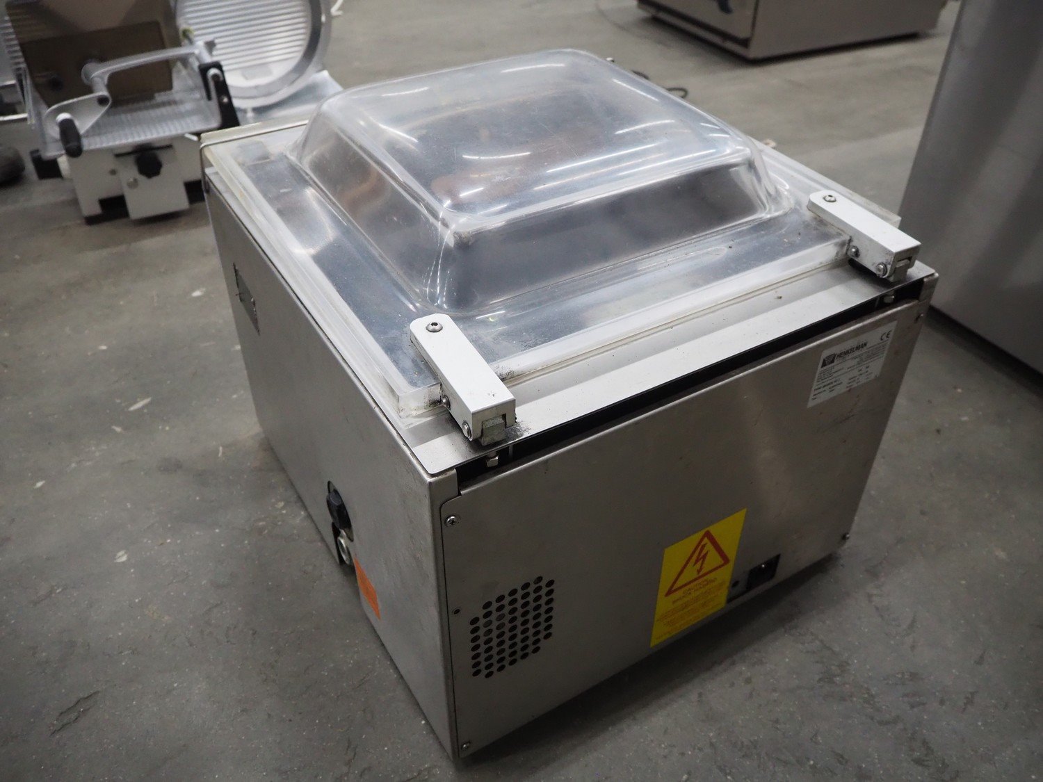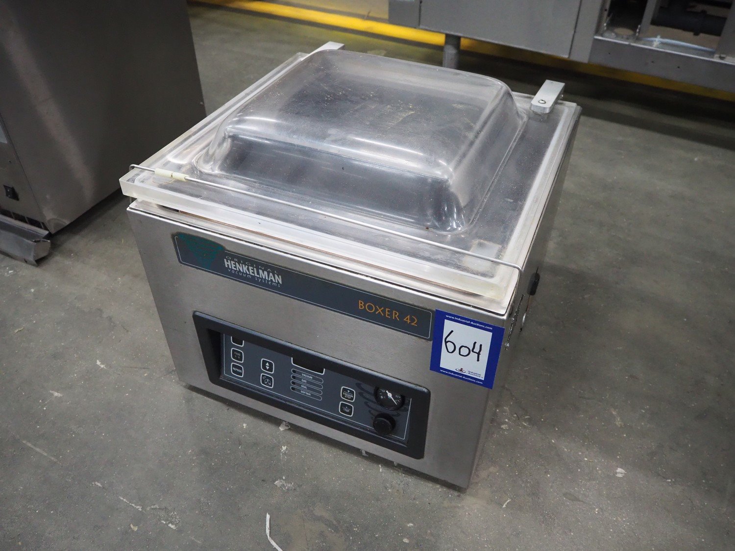 Henkelman vacuum machine, type: BOXER 42 I, machine number: B100910424, year of construction: 2009, 230 V, 1 Ph, 50 Hz, 5 A, 0.8 kW, seal length: 420 mm, dimensions chamber: 420 mm x 370 mm x 70 mm, total dimensions: 520 mm x 480 mm x 450 mm.