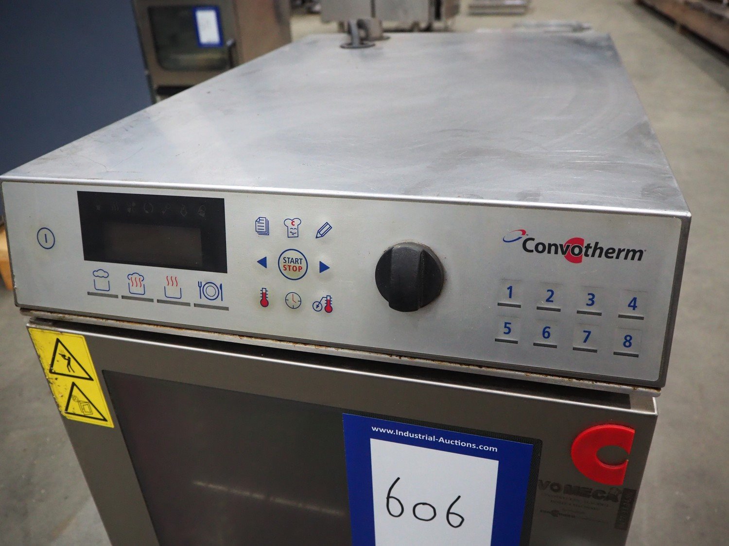 Convotherm combi steamer, model: OES 6.10 mini, number: XSMKJ2227, 400 V, 3 Ph, 50/60 Hz, 14.3 A, 7.1 kW, water pressure: 200-600 kP, 12 floors, dimensions each floor: 530 mm x 325 mm, total dimensions: 850 mm x 515 mm x 670 mm.