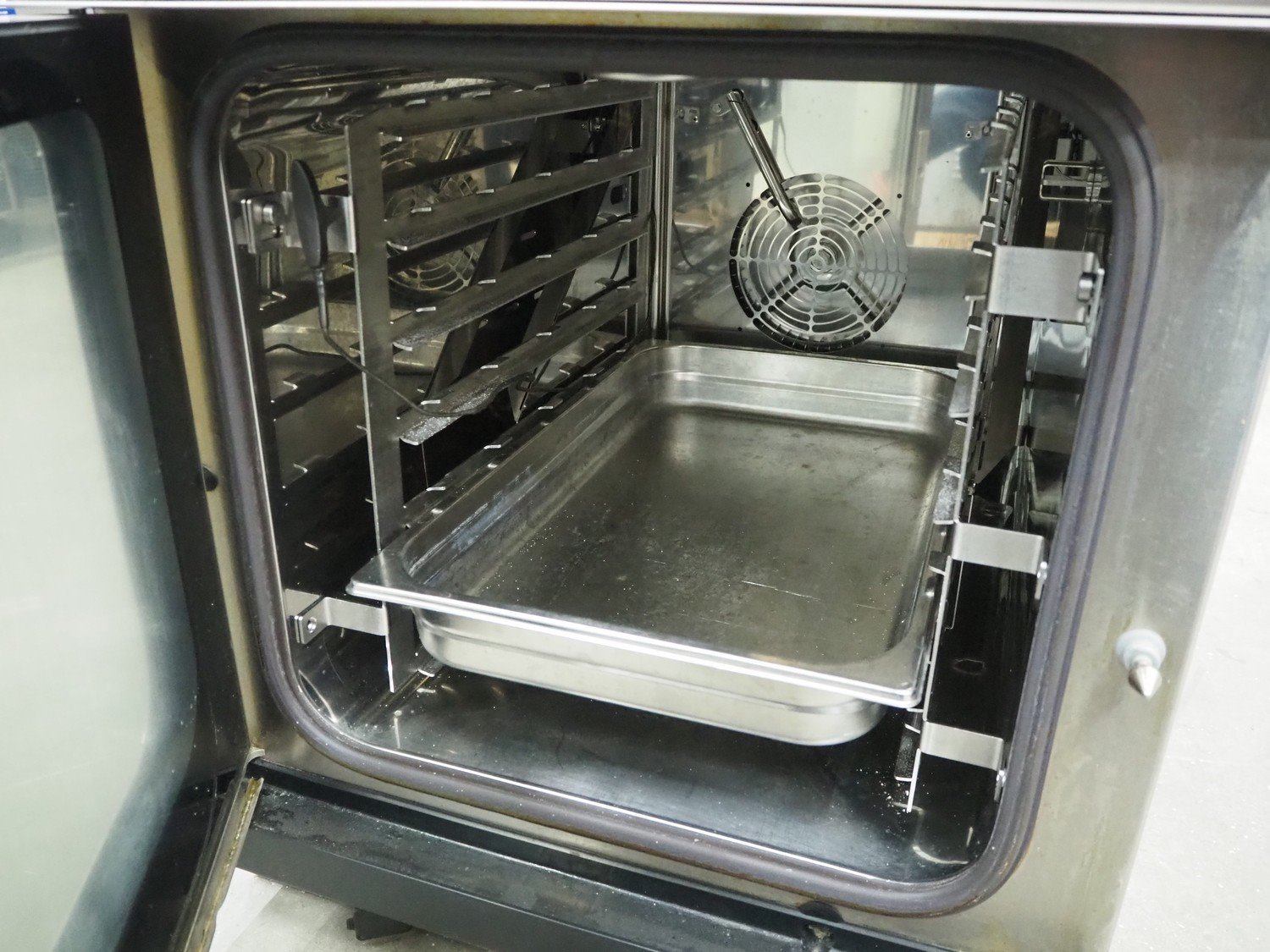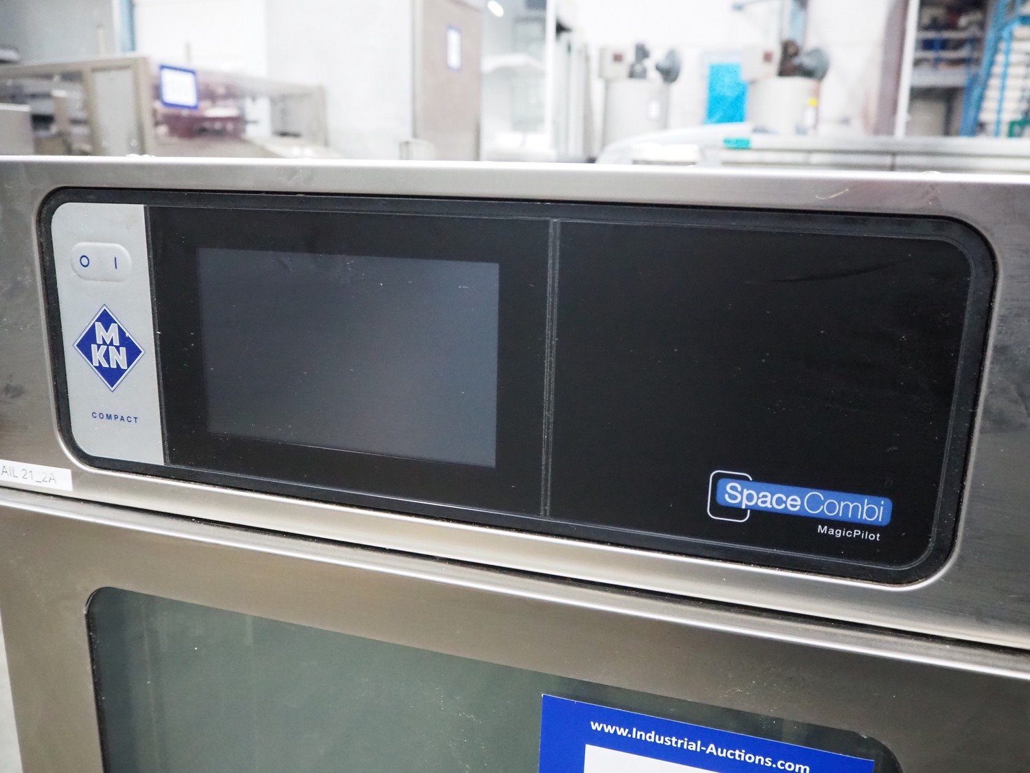 MKN combi steamer, type: SKECOD610T0018, serial number: 16213601, year of construction: 2016, 380-415 V, 3 Ph, 50 Hz, 7.8 kW, 5 floors, dimensions each floor: 525 mm x 325 mm, total dimensions: 850 mm x 550 mm x 800 mm.