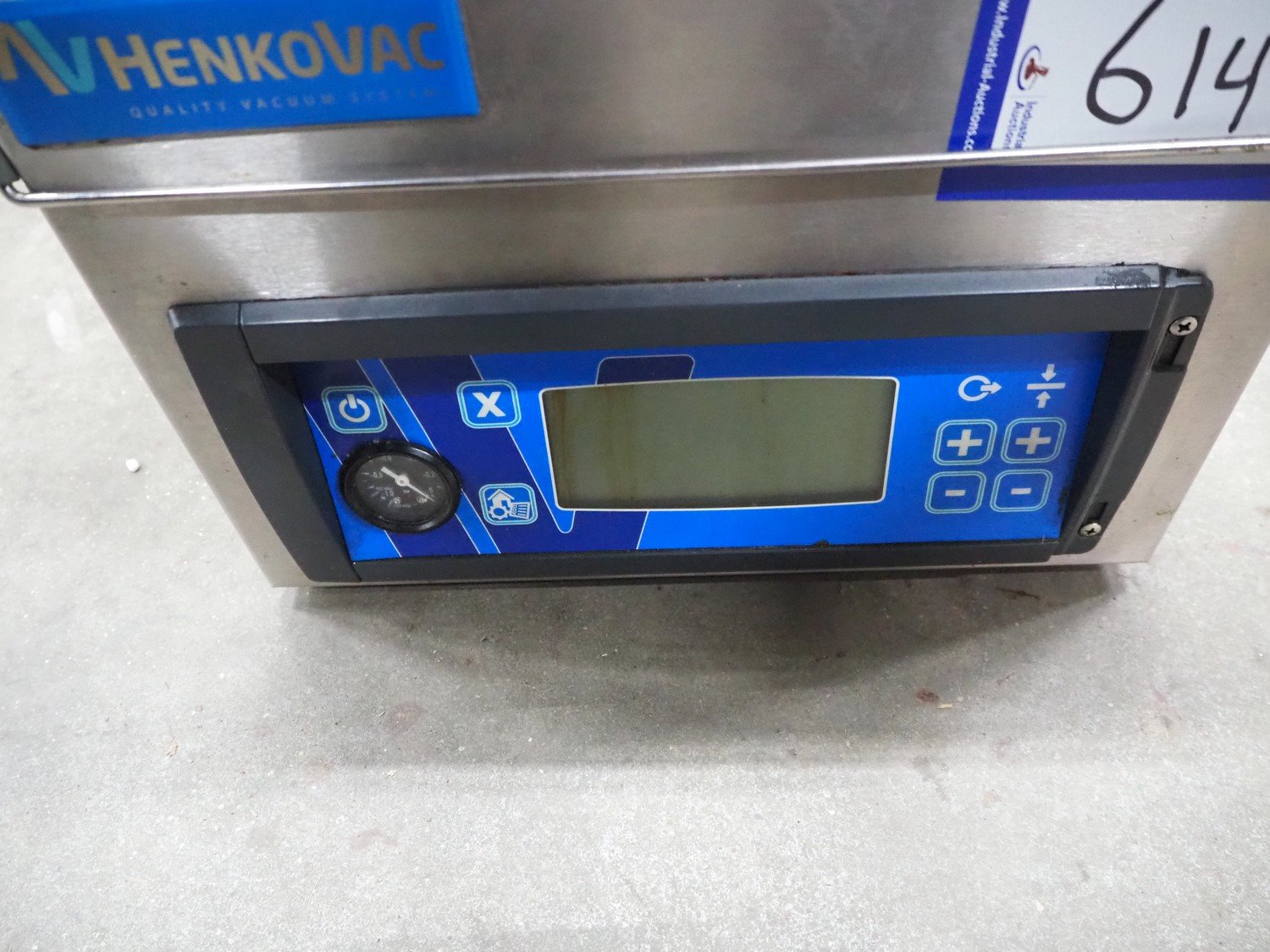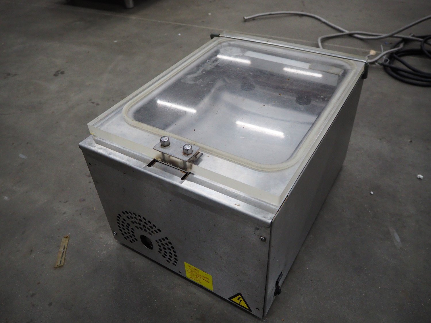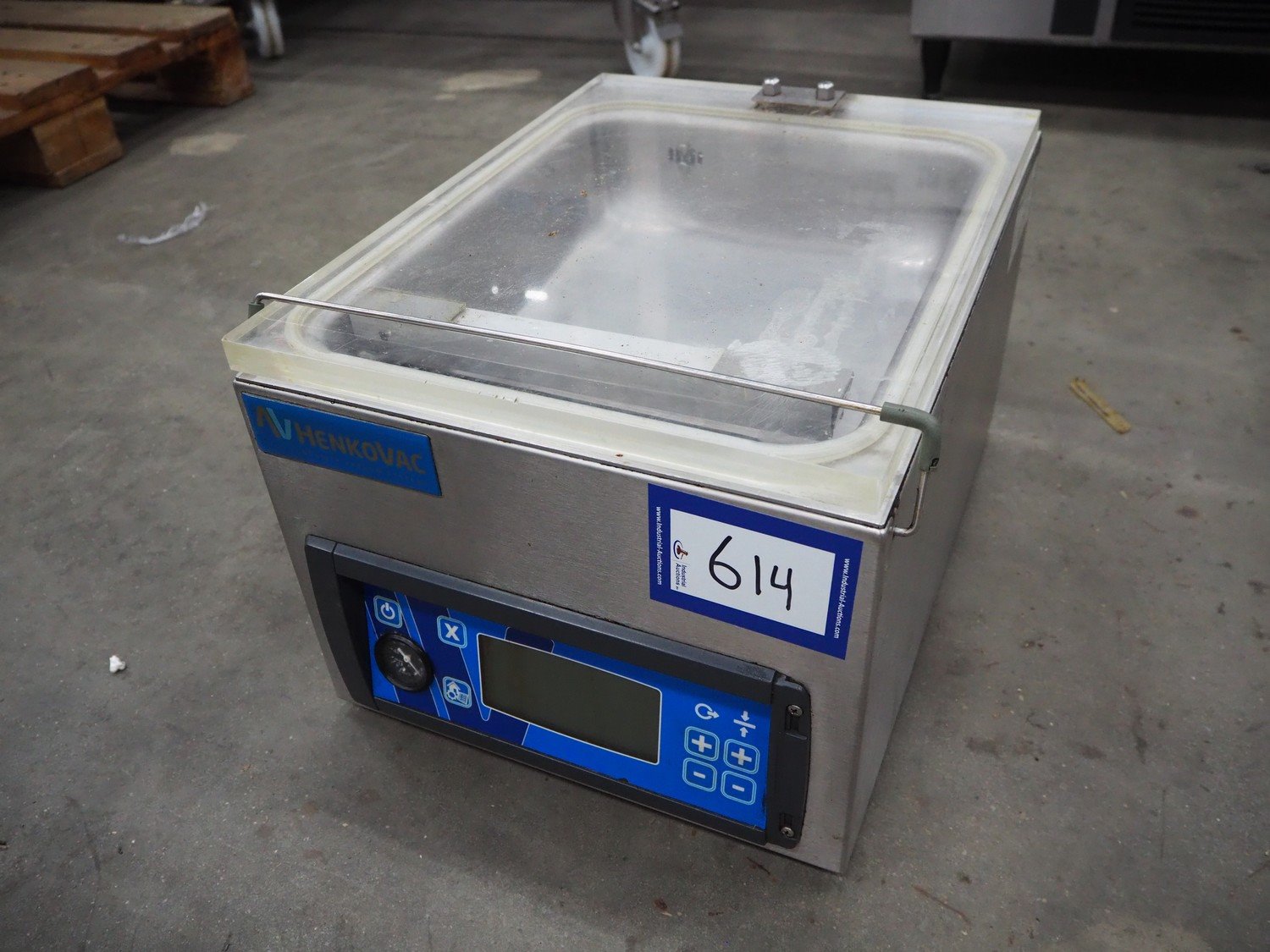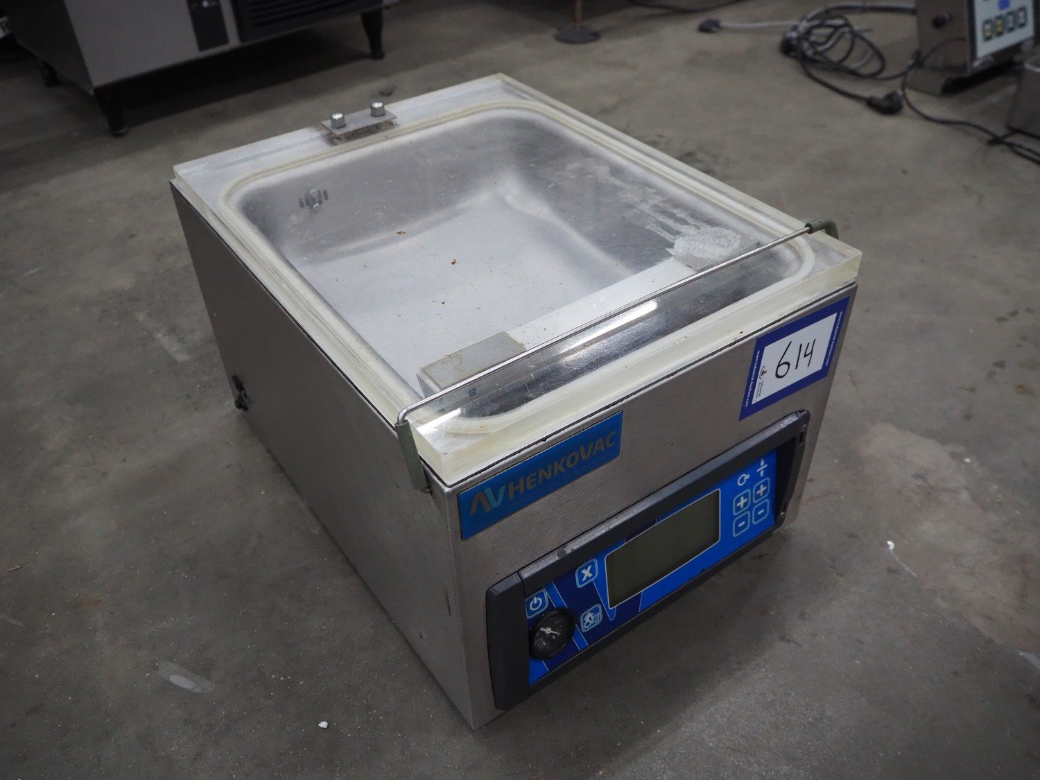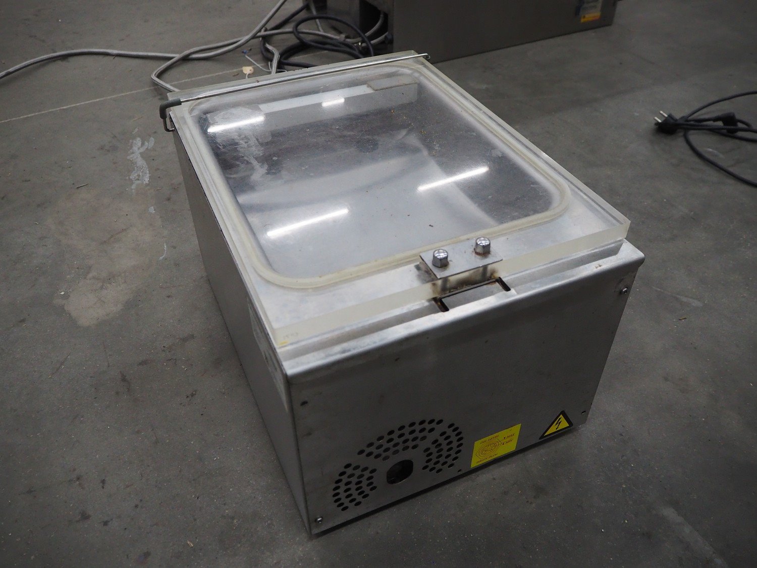 Henkovac vacuum machine, model: T2, serial number: 20160199, year of construction: 2016, 220-240 V, 1 Ph, 50/60 Hz, 2.5 A, seal length: 275 mm, dimensions chamber: 315 mm x 295 mm x 40 mm, total dimensions: 500 mm x 380 mm x 300 mm.