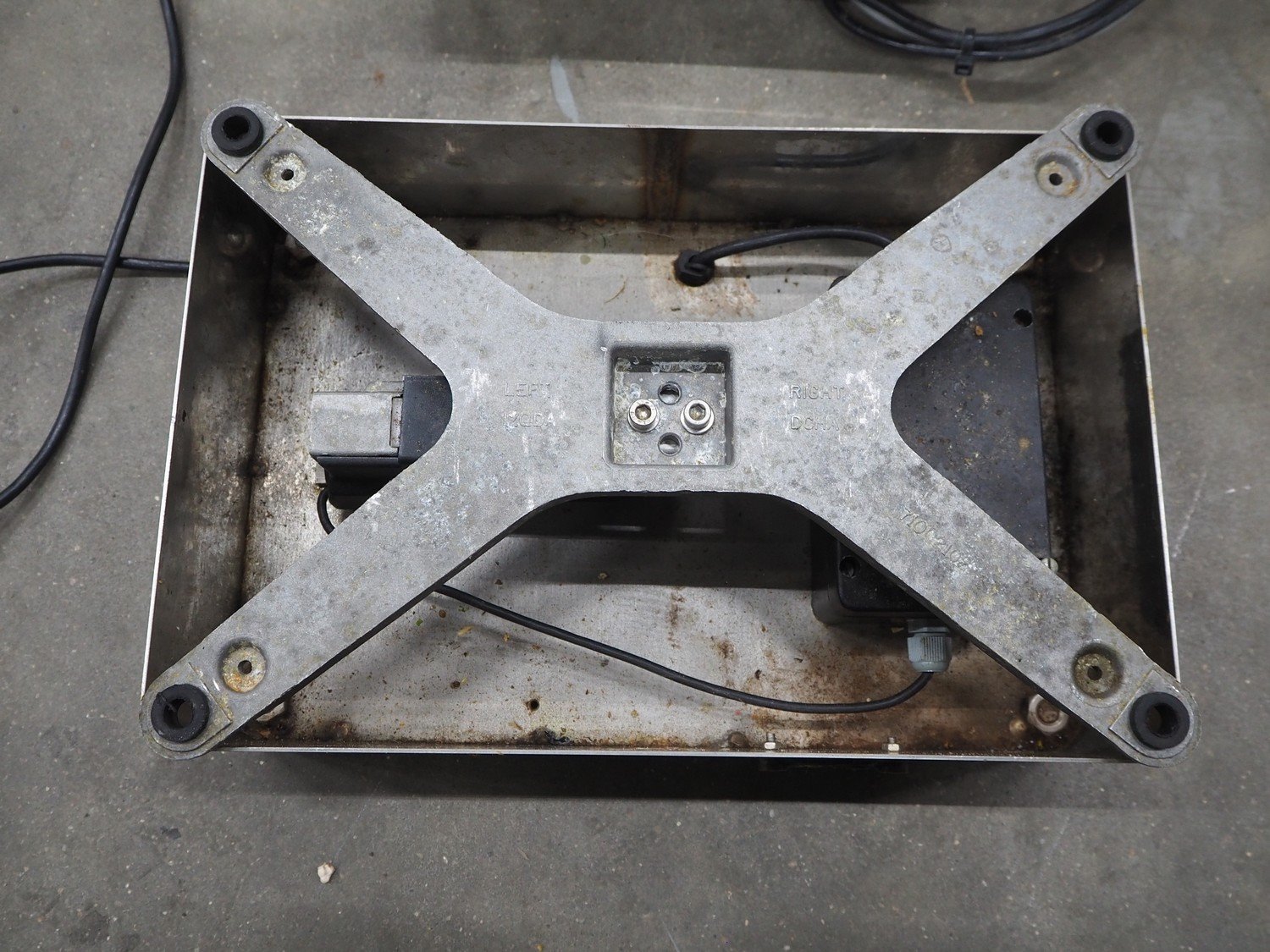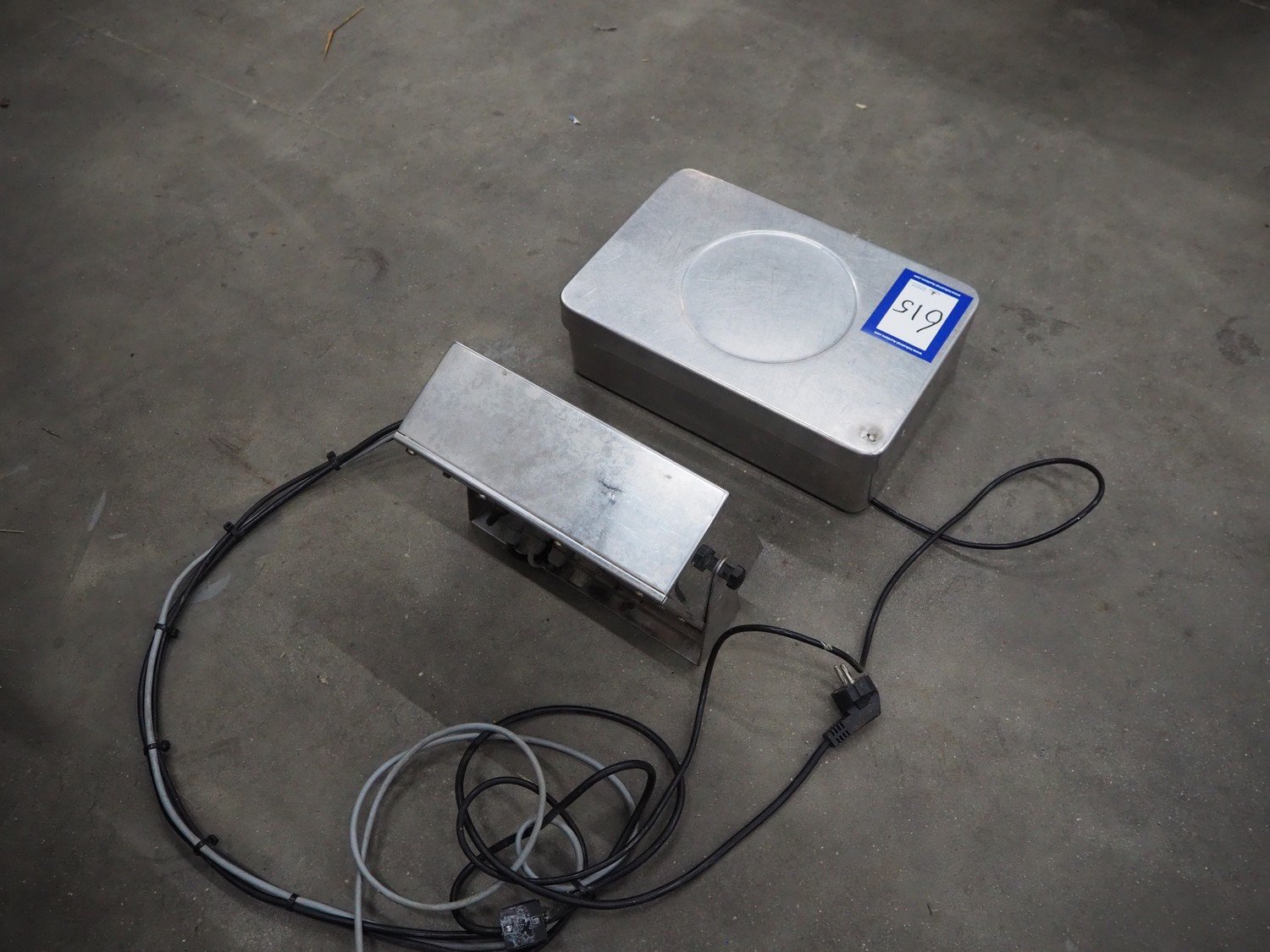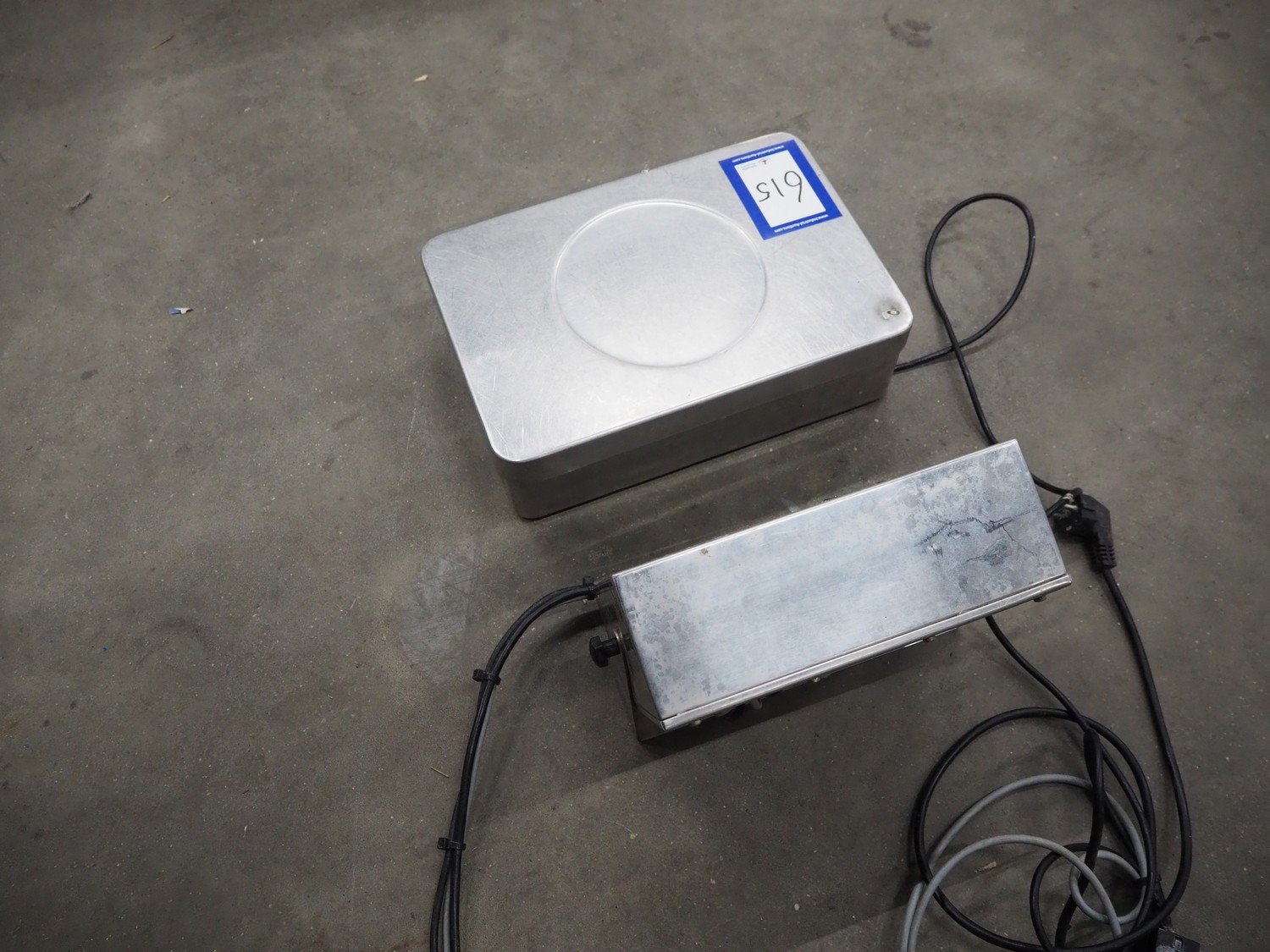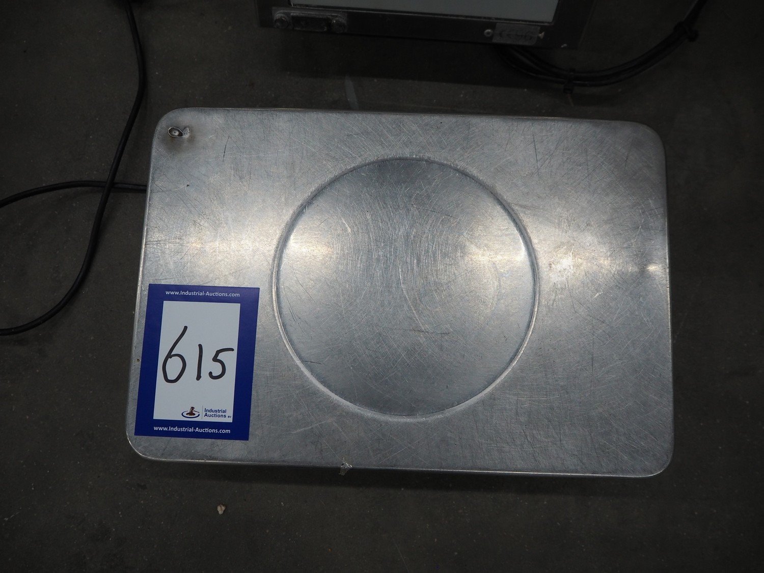 WEDA weighing scale with indicator, number: 6011048, maximum: 15 kg, minimum: 0.1 kg, e=d=5g, dimensions scale: 360 mm x 240 mm x 110 mm.