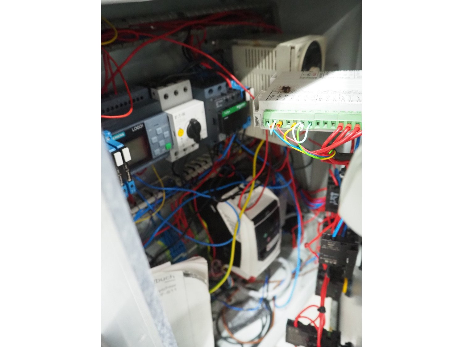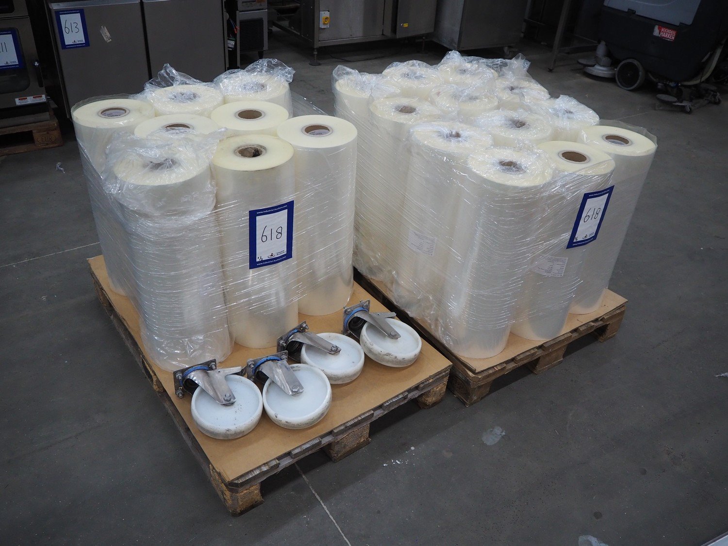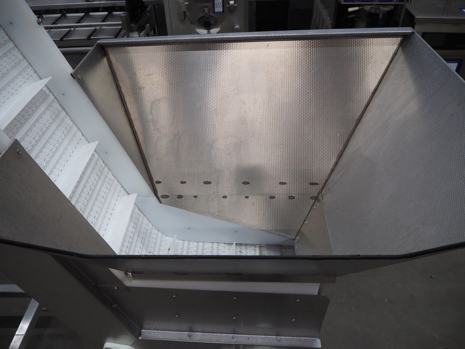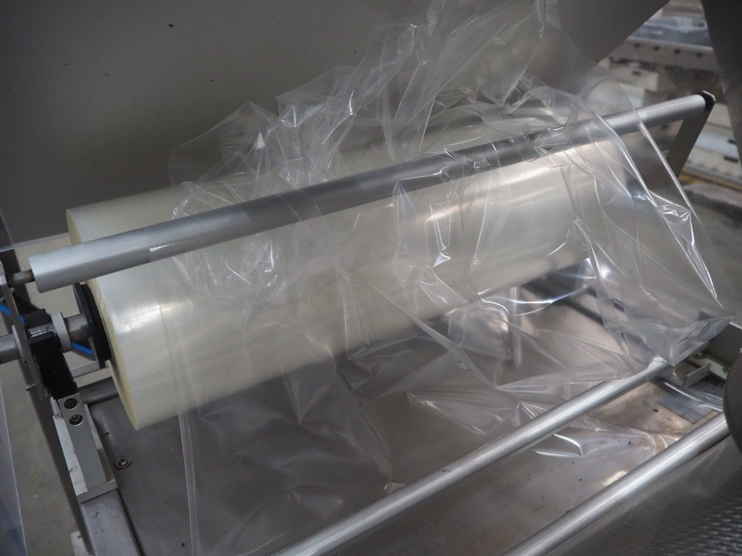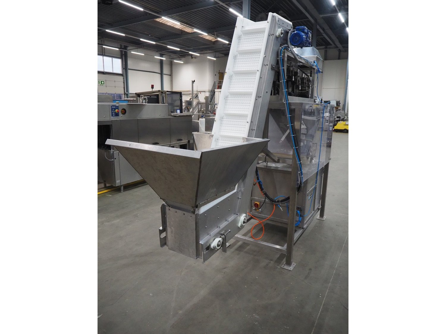 GKS Packaging vertical bag form, fill and seal machine with elevating belt, type: CP300HS-T, serial number: 04421, year of construction: 2012-01, plastic belt with dividers, belt width: 340 mm, distance between dividers: 195 mm, divider height: 50 mm, gutter width: 210 mm, film width: 640 mm, seal width: (2x) 350 mm, seal length: 240 mm, total dimensions: 3150 mm x 1000 mm x 2550 mm. Including 2 pallets with 20 film rolls .
