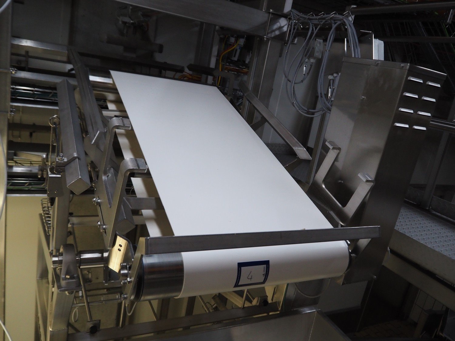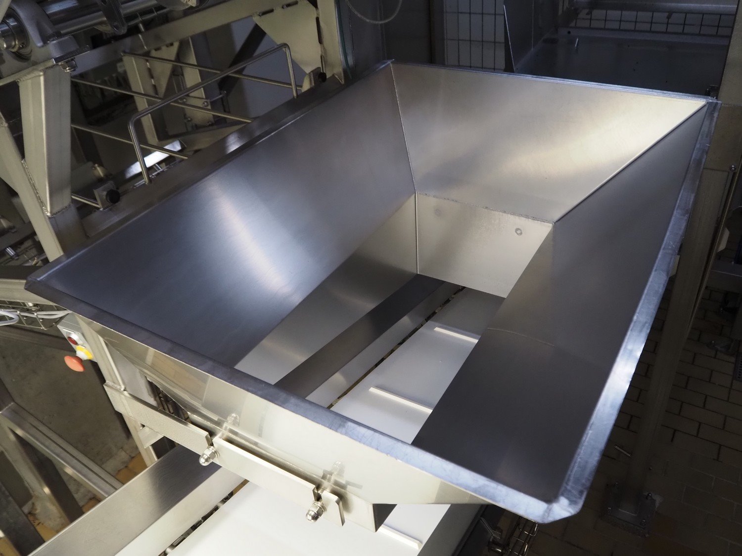 Frontmatec tilting belt, type: 1100225190, serial number: 16986-02-05-0035, year of construction: 05-05-2021, s/s frame, plastic belt, belt width: 550 mm, total dimensions: 1600 mm x 1000 mm x 2200 mm.