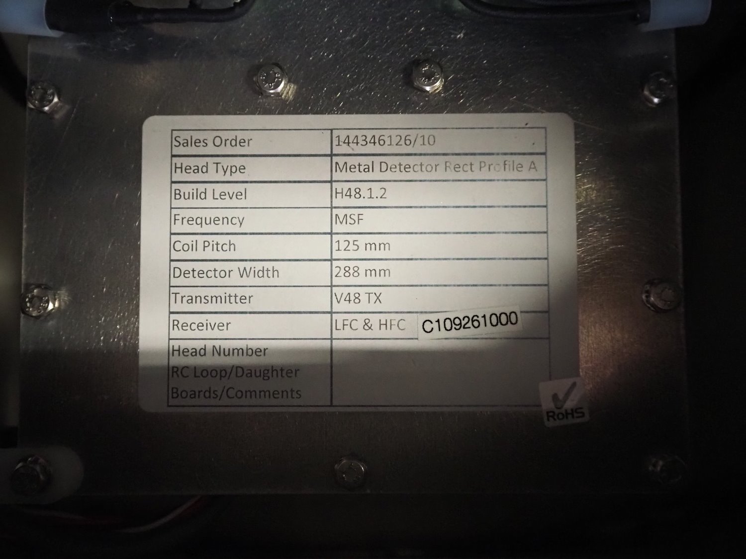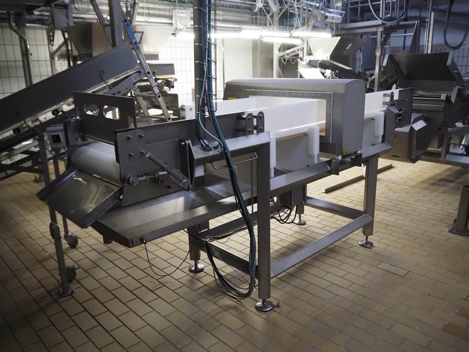 Mettler-Toledo Safeline Ltd metal detector, model: V48-RAD, serial number: C102261000, last service: 07-11-2023, 100-240 V, 50/60 Hz, 340 W, plastic belt, belt width: 560 mm, clearance: 580 mm x 170 mm, total dimensions: 3000 mm x 1300 mm x 1500 mm.