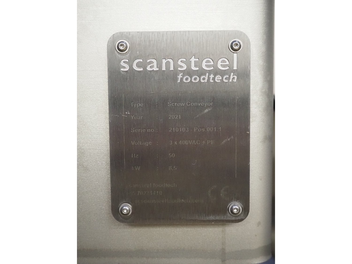 Scansteel Foodtech mobile in height adjustable transport screw, type: Screw Conveyor, serial number: 210103, year of construction: 2021, 400 V, 3 Ph, 50 Hz, 8.5 kW, diameter screw: 400 mm, tier: 340 mm, total dimensions: 6000 mm x 1500 mm x 1800 mm.