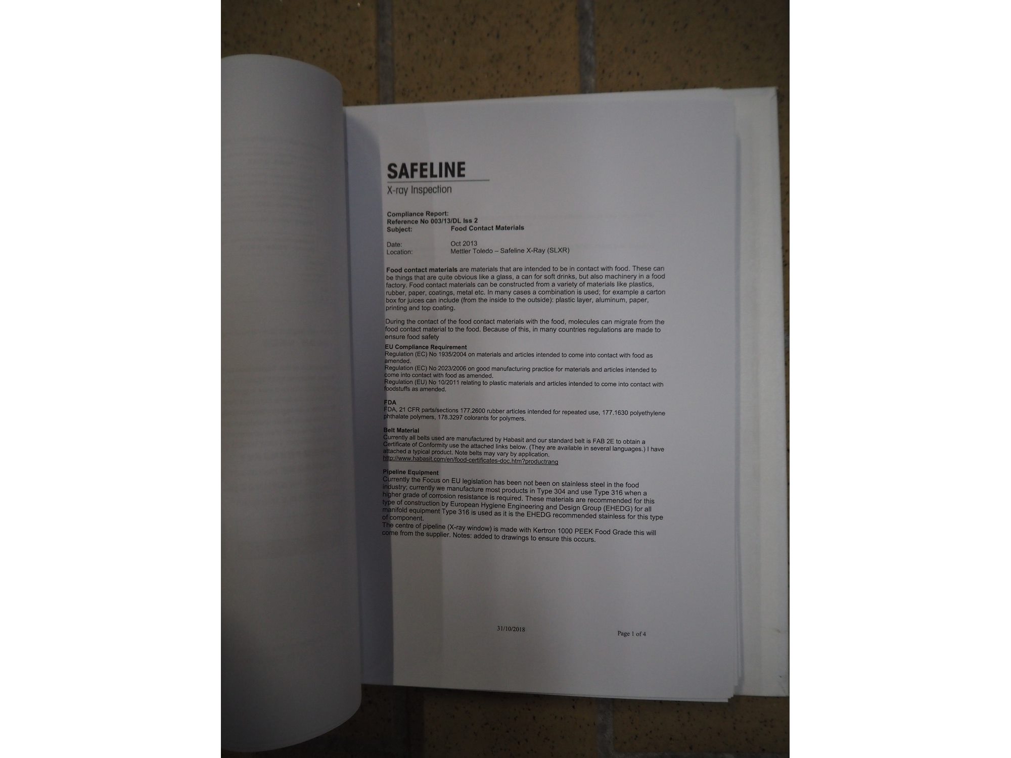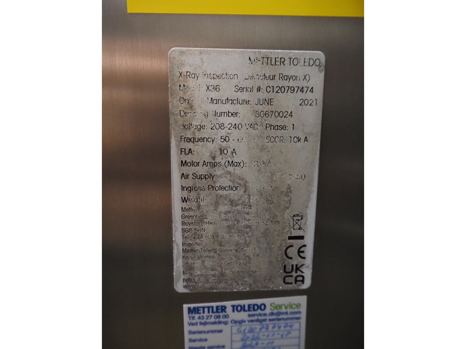Mettler-Toledo Safeline Ltd x-ray scanner, model: X36, serial number: C120797474, year of construction: 2021, 208-240 V, 1 Ph, 50-60 Hz, 10 A, clearance: 480 mm x 210 mm, total dimensions: 2050 mm x 1100 mm x 2300 mm, Hillerslev outfeed belt, number: 3791-2021, dimensions: 1500 mm x 800 mm x 1600 mm.