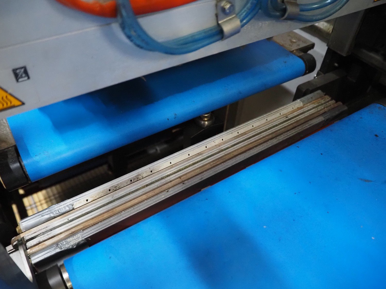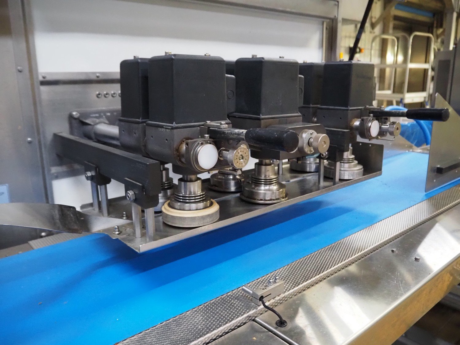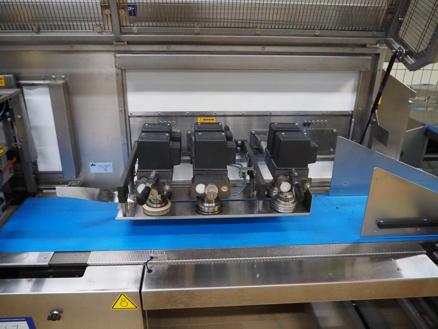 PFM flowpacker, model: GHIBLY BB INOX, serial number: D5805, year of construction: 2021, 380 V, 50 Hz, 22 A, 12.3 kW, dimensions: 1500 mm x 1400 mm x 900 mm, plastic belt, belt width: 380 mm, seal length: 450 mm, total dimensions: 3200 mm x 1600 mm x 1900 mm, two film unwinding devices, dimensions: 1500 mm x 1400 mm x 900 mm and 2100 mm x 1450 mm x 1000 mm.