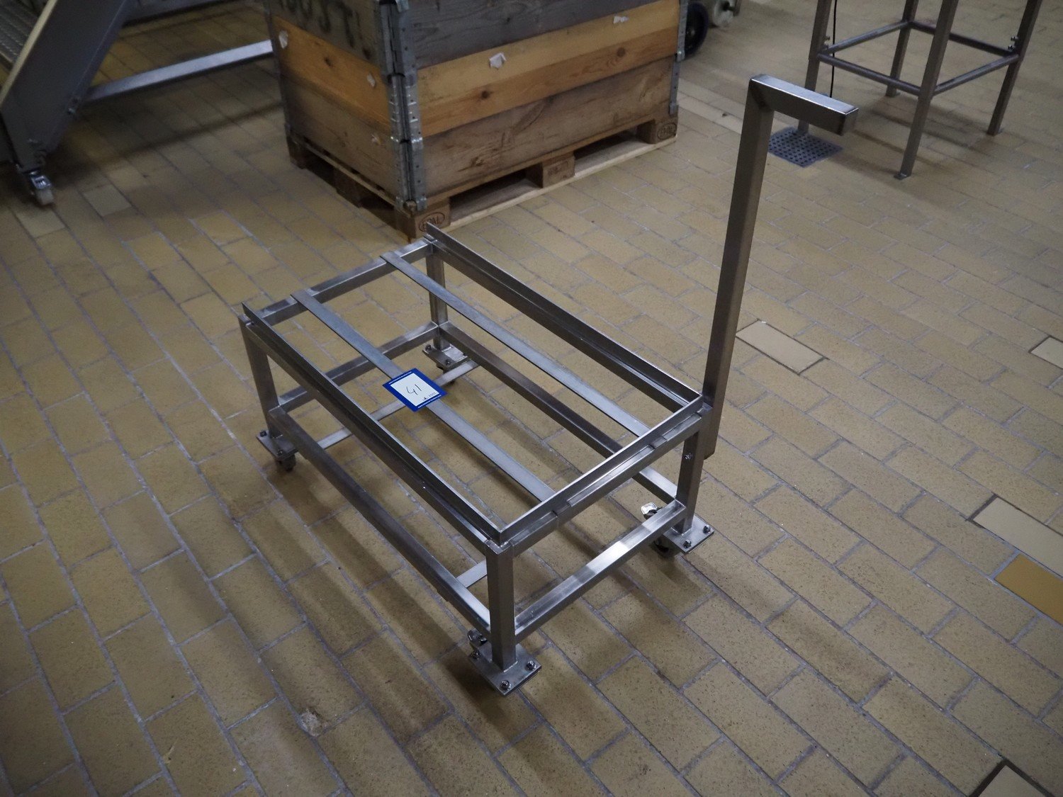 S/s trolley, dimensions: 900 mm x 500 mm x 1000 mm.